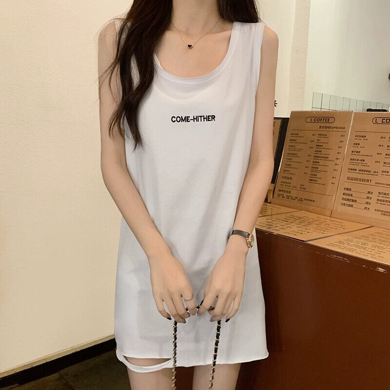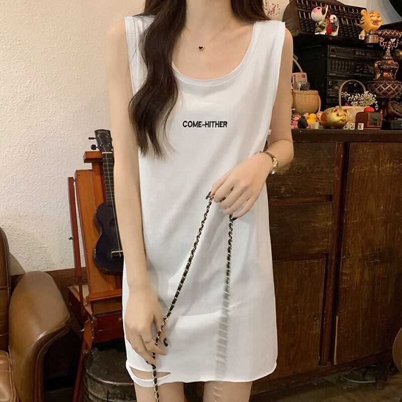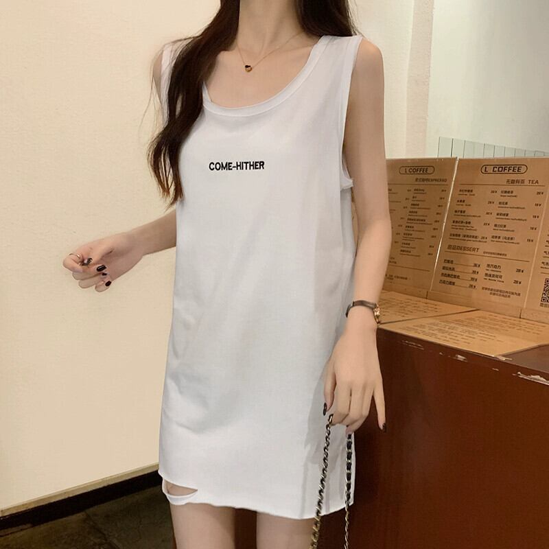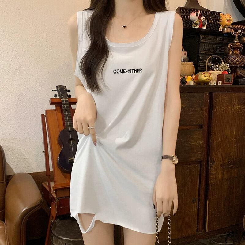破れたおっさんシャツ 綿ベスト レディース 夏 デザイン感 ゆったり アウター インナー ミドル丈 ノースリーブ サスペンダー トップス コットン サマー 夏物 7460054598508829 | framboise21