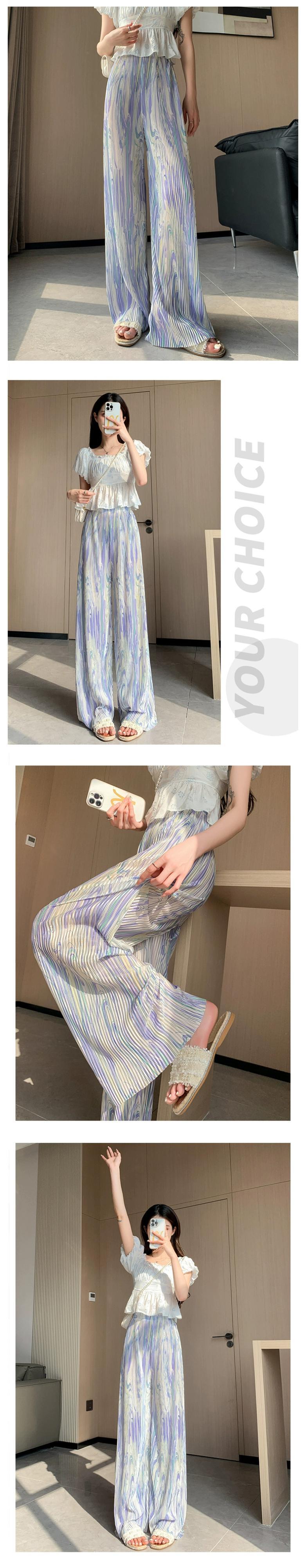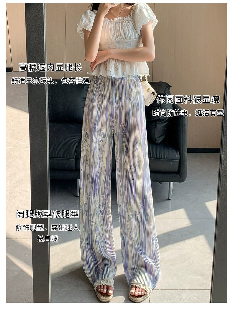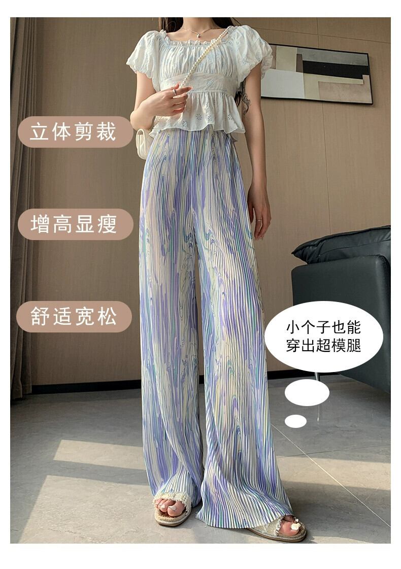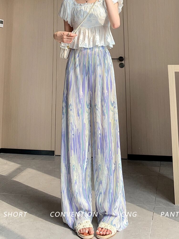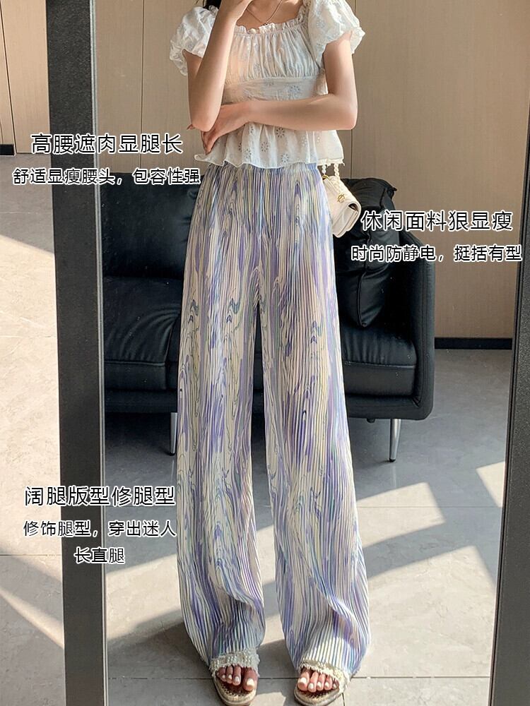 プリーツ絞り染めアイスシルクワイドレッグパンツレディース夏薄セクションストレートチューブスリムハイウエストドレープフロアモップカジュアルシフォンパンツ ハイウェスト サマー 夏物 7460072401750476 | framboise21