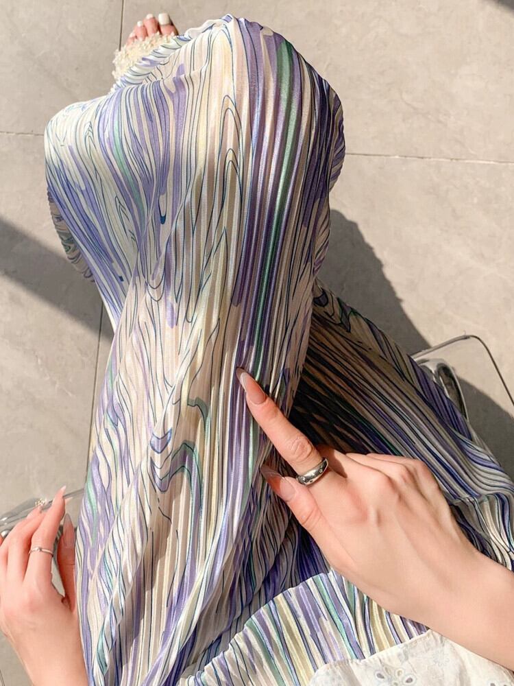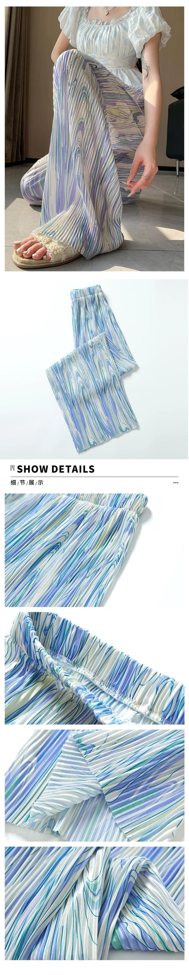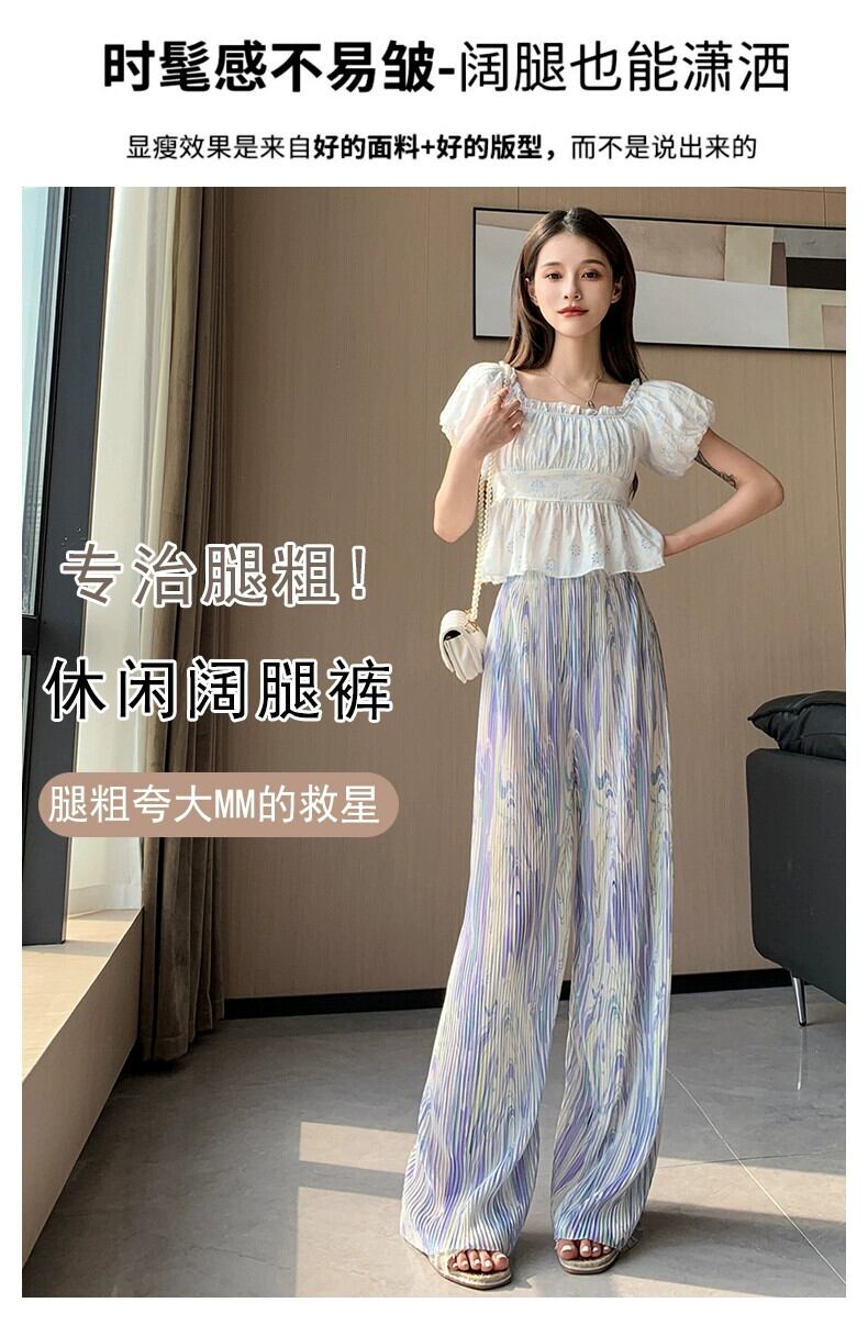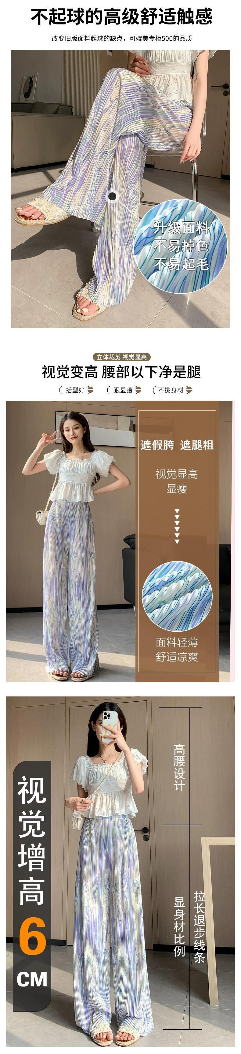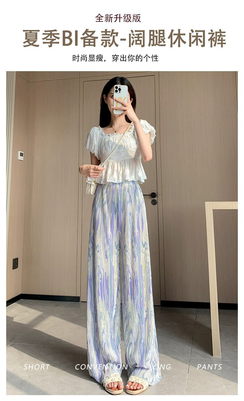 プリーツ絞り染めアイスシルクワイドレッグパンツレディース夏薄セクションストレートチューブスリムハイウエストドレープフロアモップカジュアルシフォンパンツ ハイウェスト サマー 夏物 7460072401750476 | framboise21