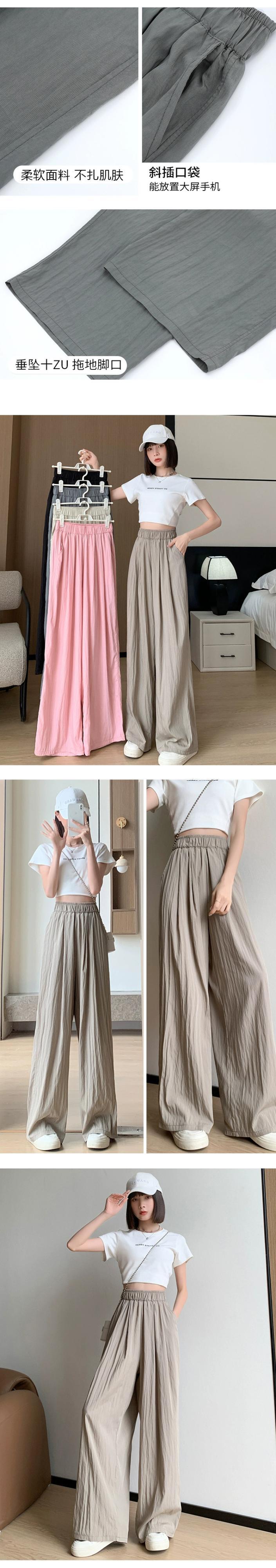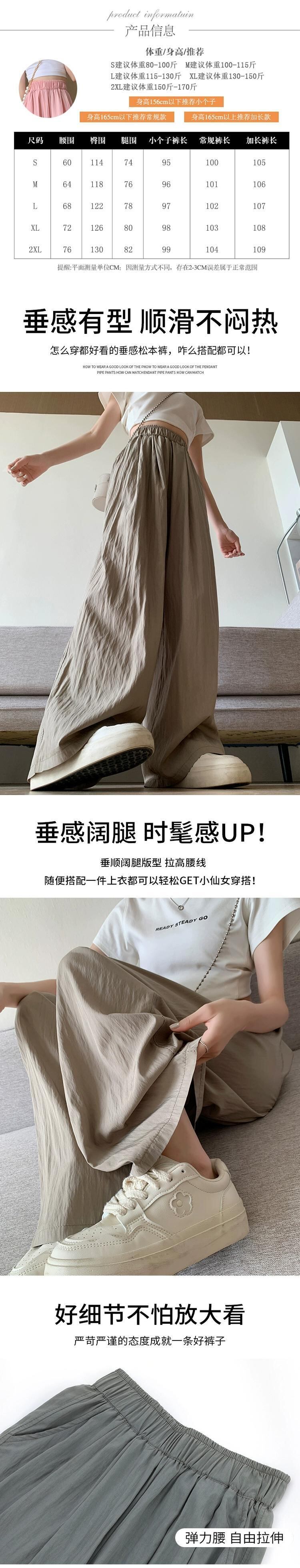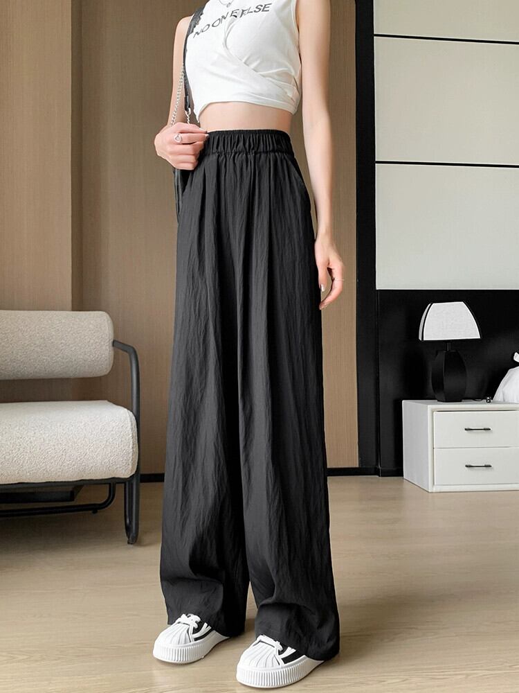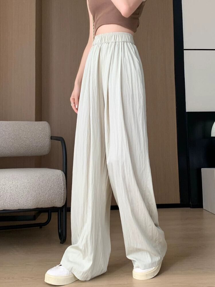 プリーツアイスシルクワイドレッグパンツ女性の夏薄い日焼け止めコットンとリネンパンツハイウエストドレープフロアモップストレートカジュアルパンツ ハイウェスト サマー 夏物 7460050938906112 | framboise21