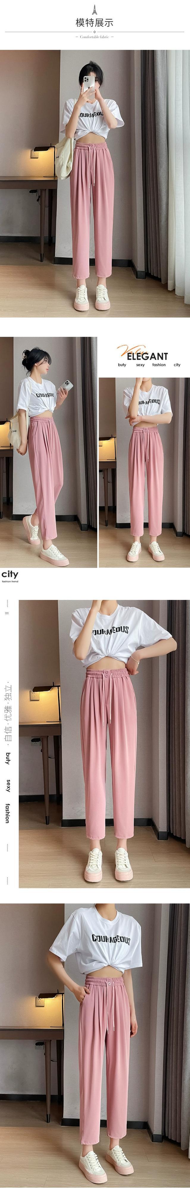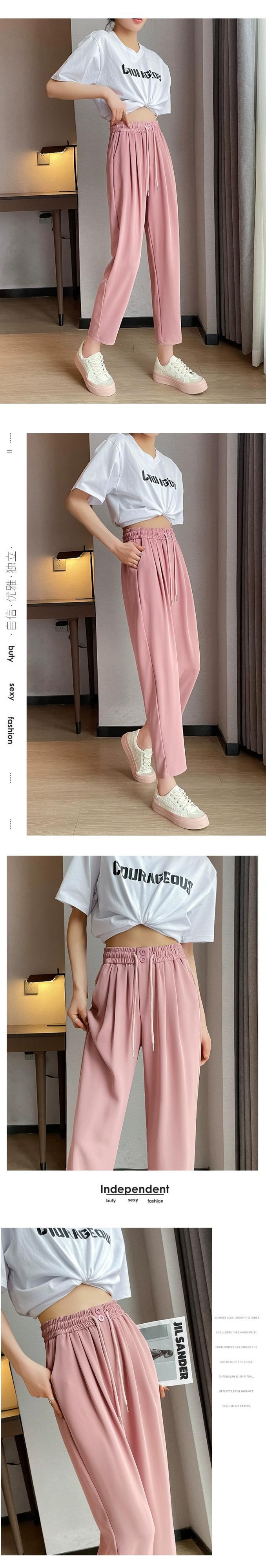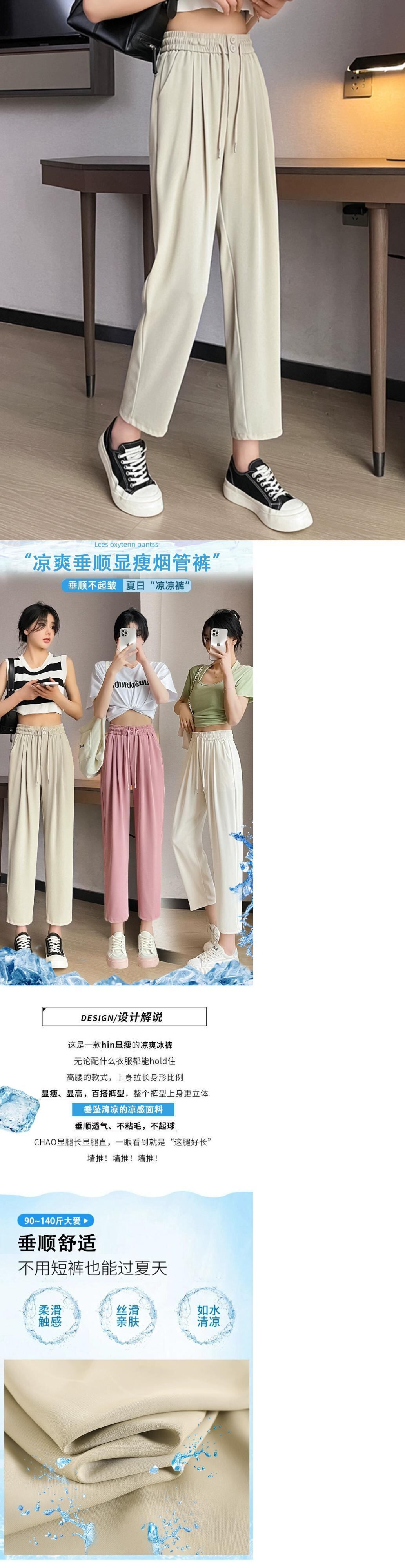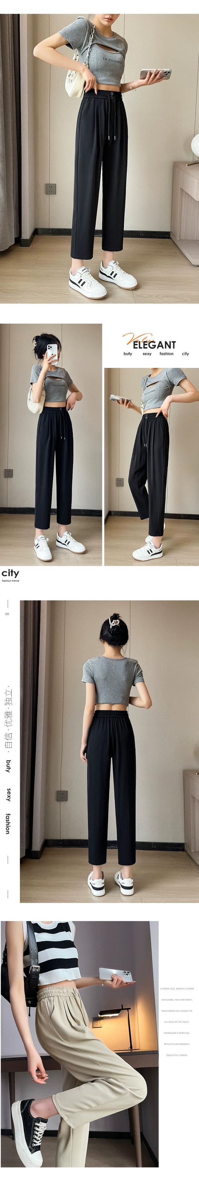 弾性ウエストアイスシルクパンツ女性の夏薄いセクション巾着ハイウエスト垂直カジュアルパンツルーズ 9 点クールパンツ ハイウェスト エラスティック 伸縮 サマー 夏物 7460051676219140 | framboise21