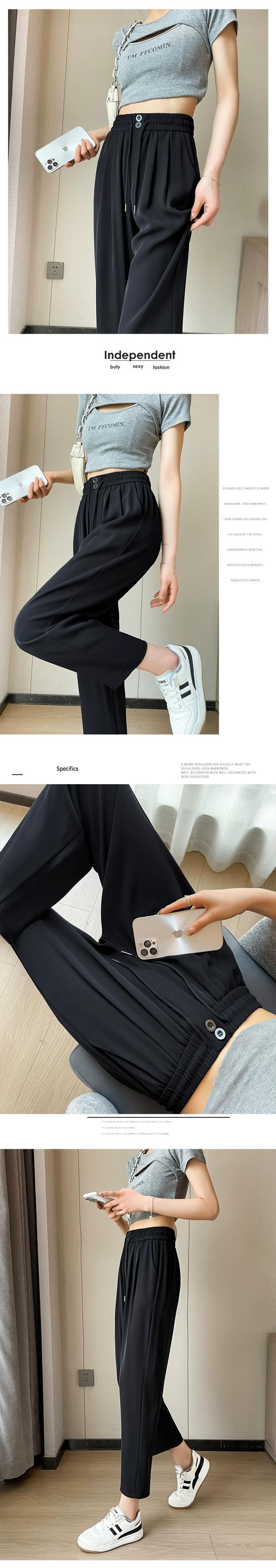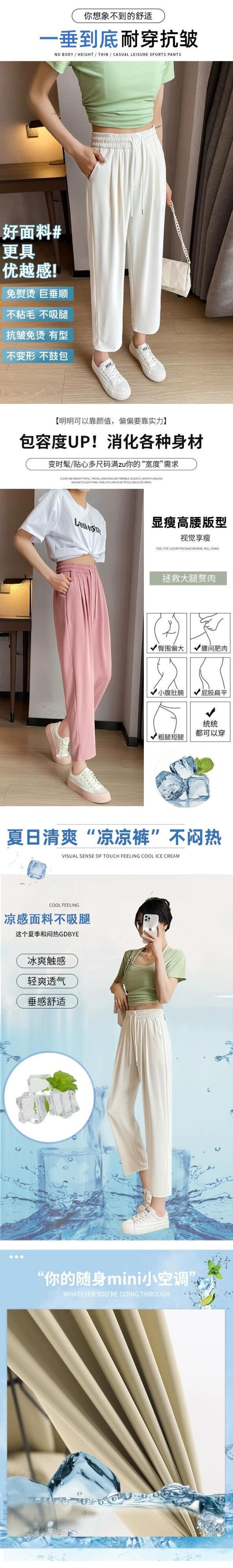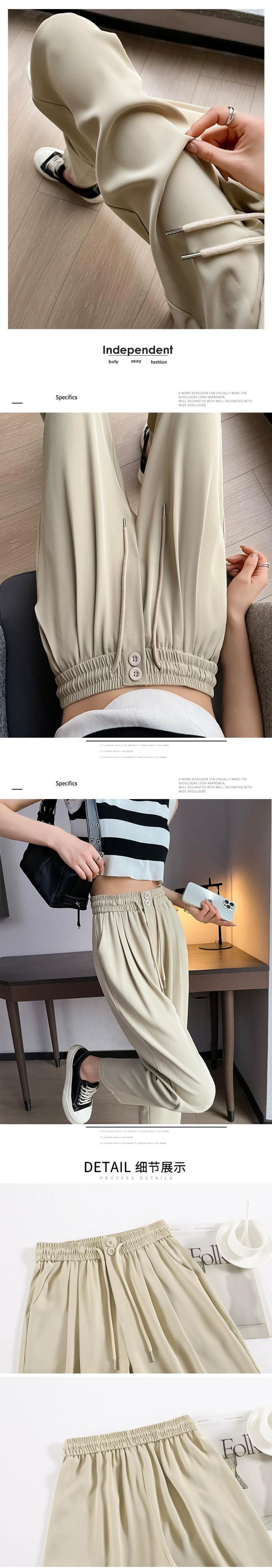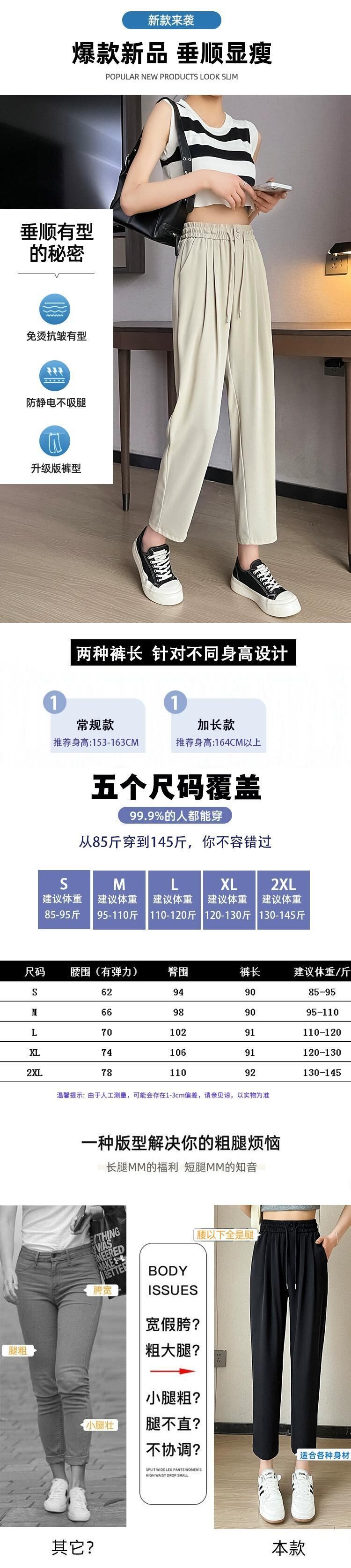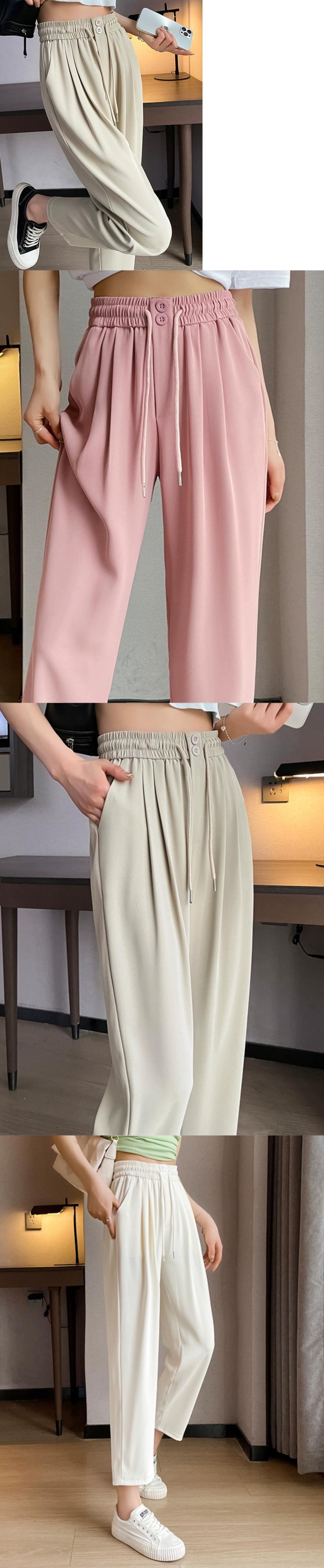 弾性ウエストアイスシルクパンツ女性の夏薄いセクション巾着ハイウエスト垂直カジュアルパンツルーズ 9 点クールパンツ ハイウェスト エラスティック 伸縮 サマー 夏物 7460051676219140 | framboise21