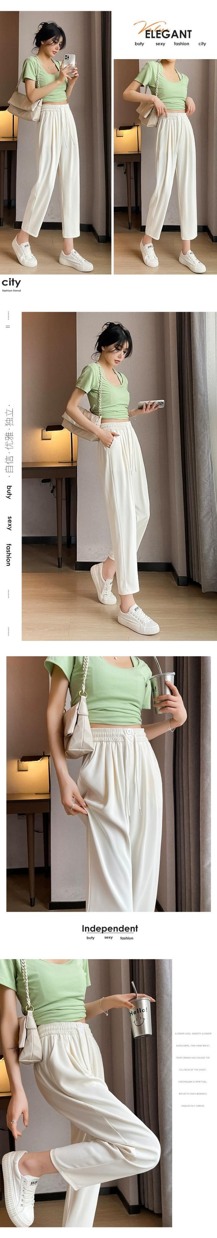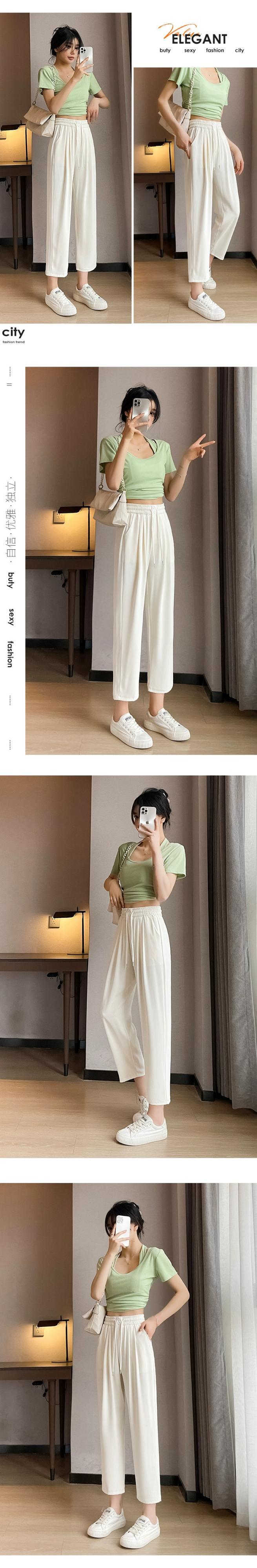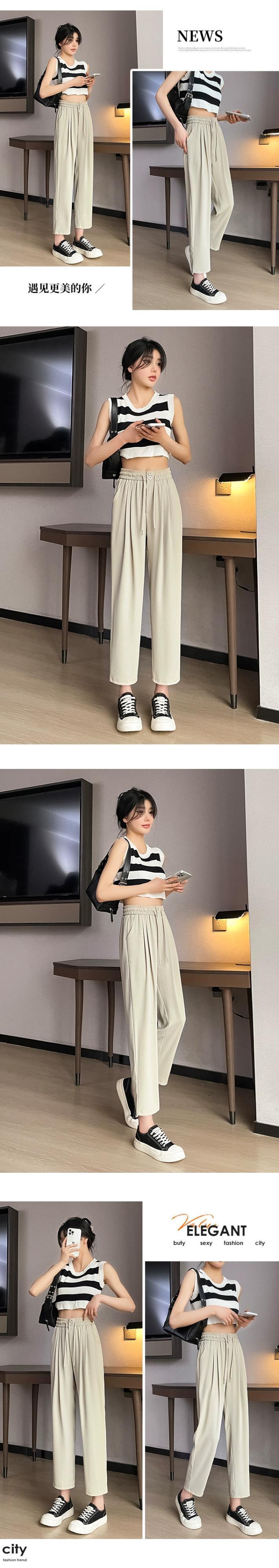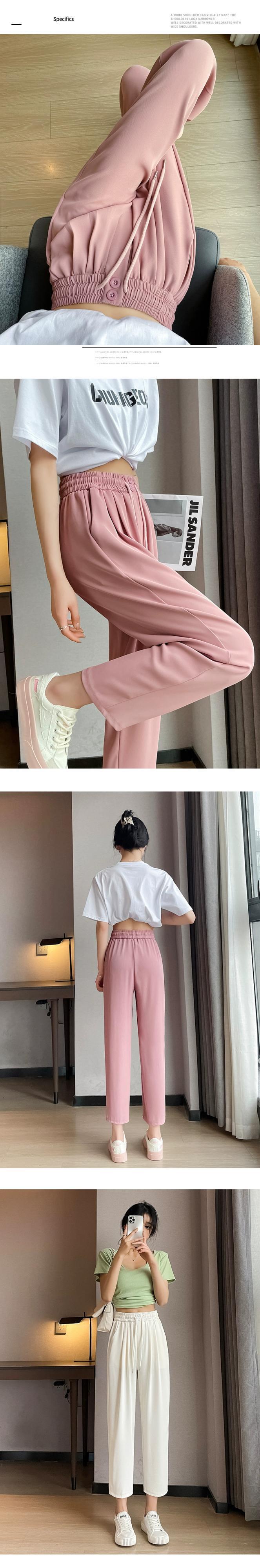 弾性ウエストアイスシルクパンツ女性の夏薄いセクション巾着ハイウエスト垂直カジュアルパンツルーズ 9 点クールパンツ ハイウェスト エラスティック 伸縮 サマー 夏物 7460051676219140 | framboise21
