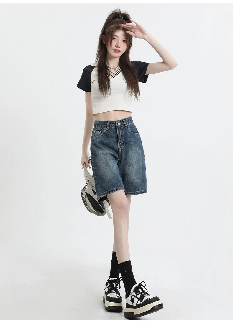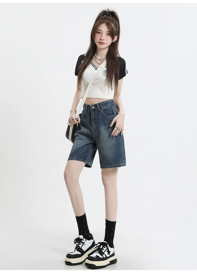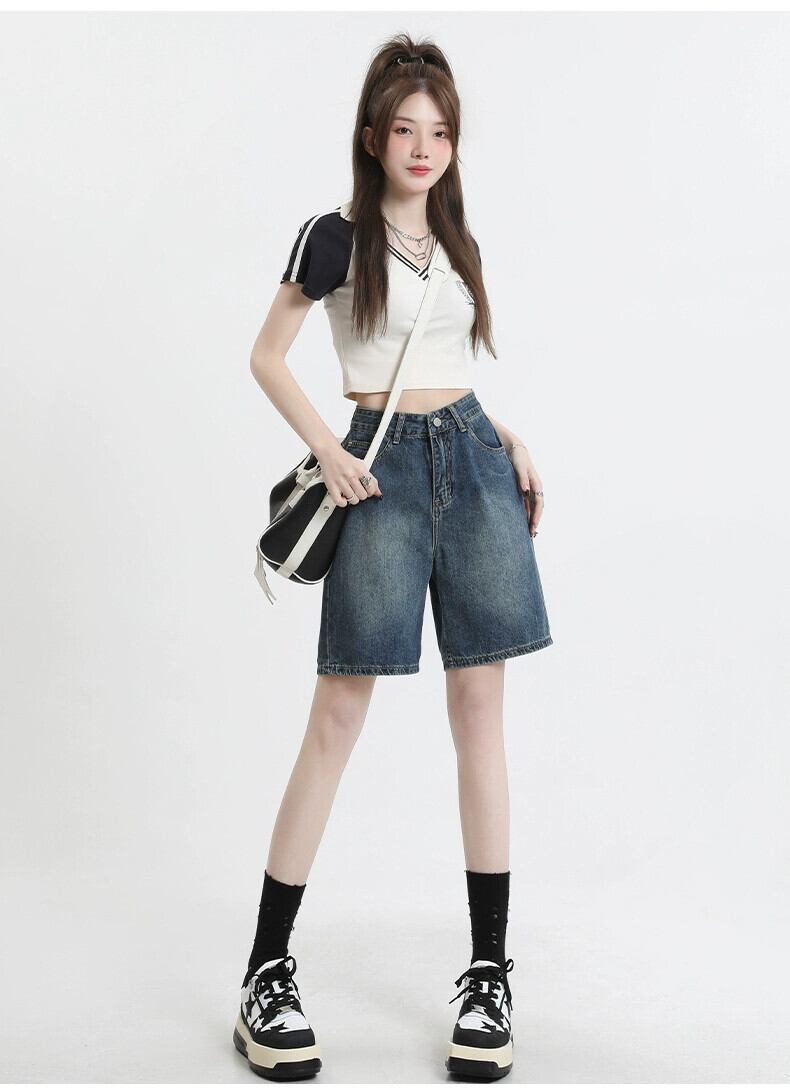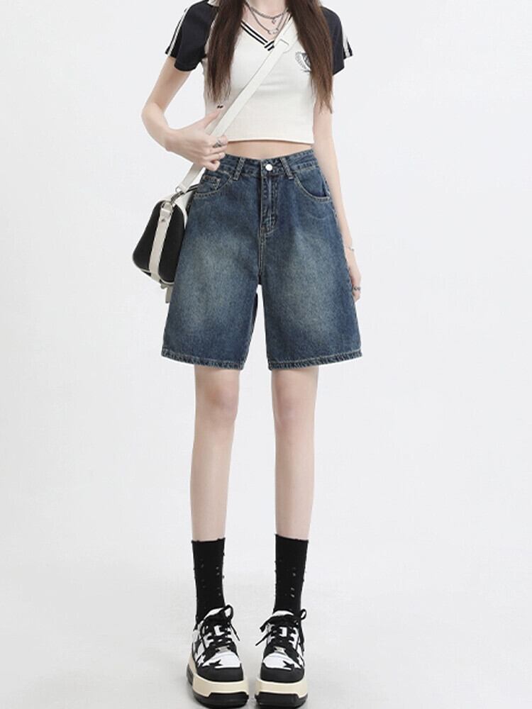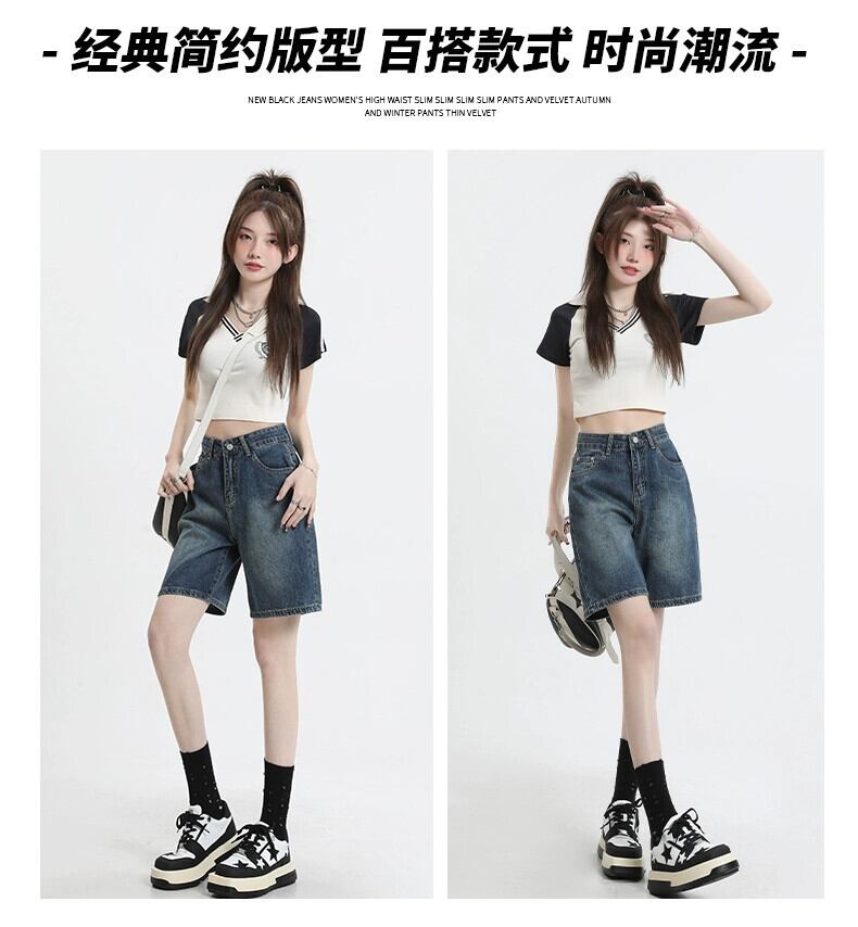 ウエスト 5 点デニムショーツ女性の 2023 夏の新しいネットレッドスタイルアウターウェアスリムストレート小さなパンツ サマー 夏物 ブルマー 7460083163990908 | framboise21