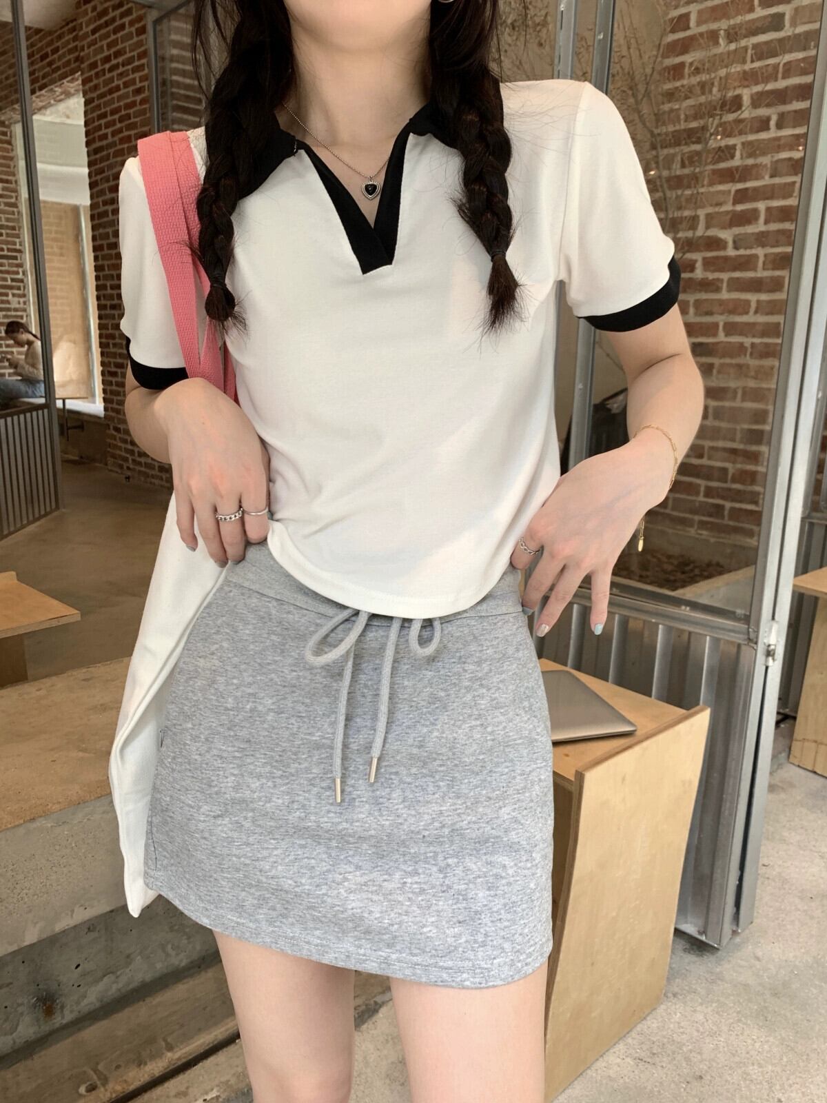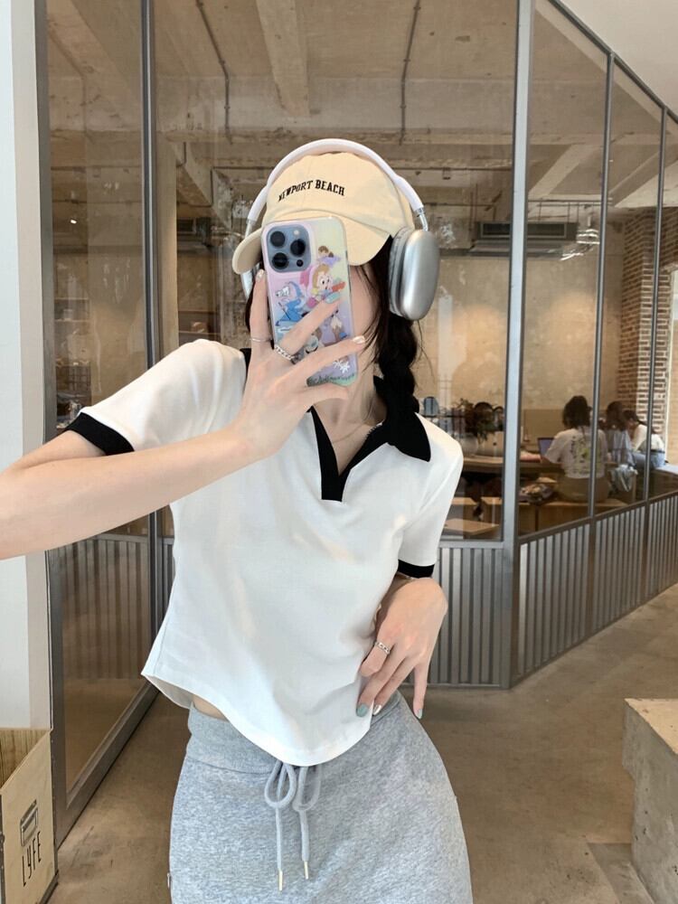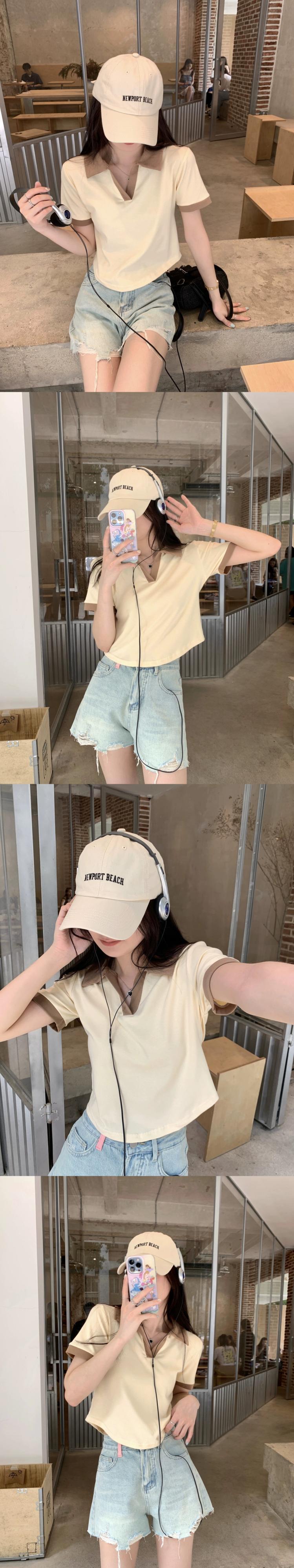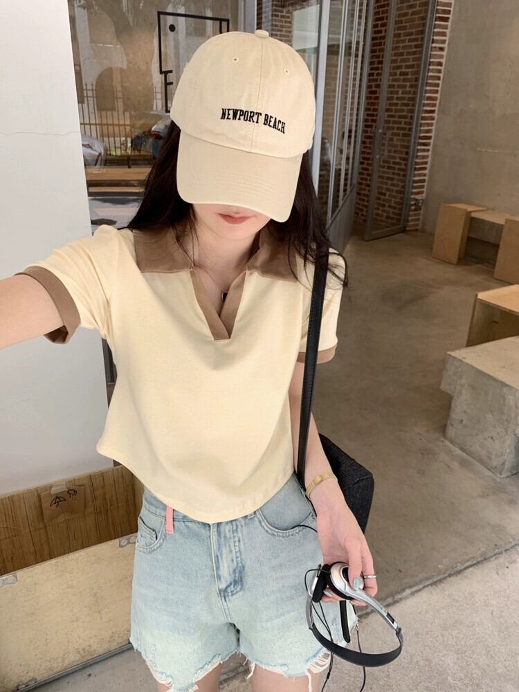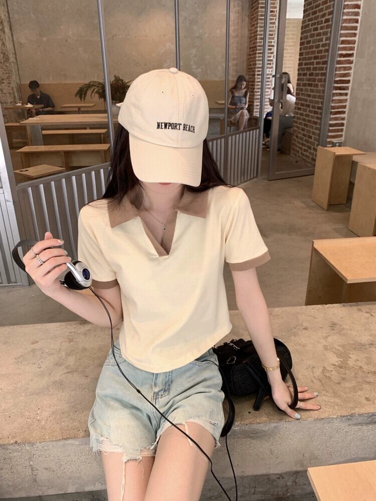 不規則な半袖 T シャツの女性の夏バージョン緩い小さいファッション肩スリム アーク ショート V ネック トップ サマー 夏物 Vネック Tシャツ 7460068480724135 | framboise21