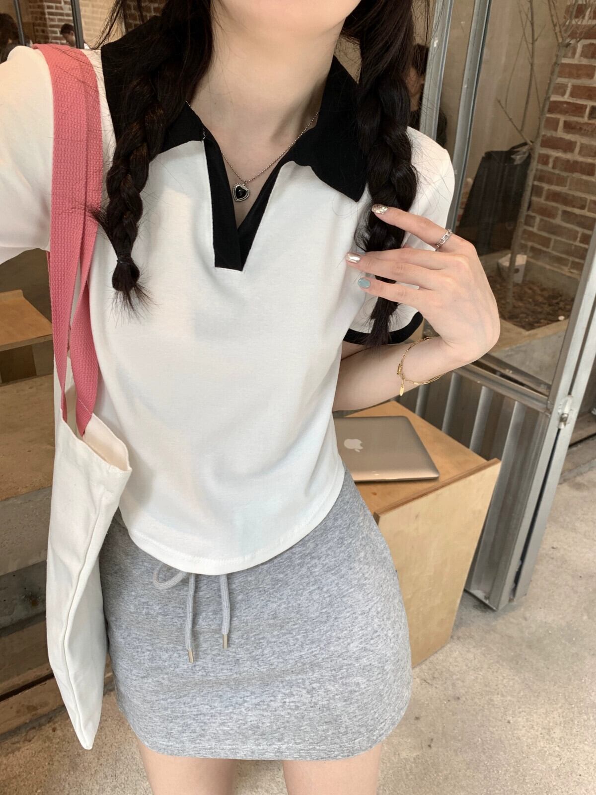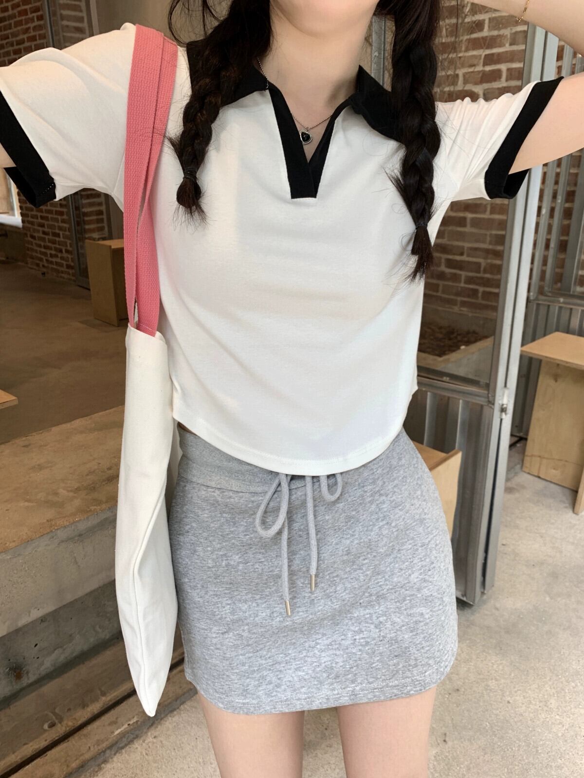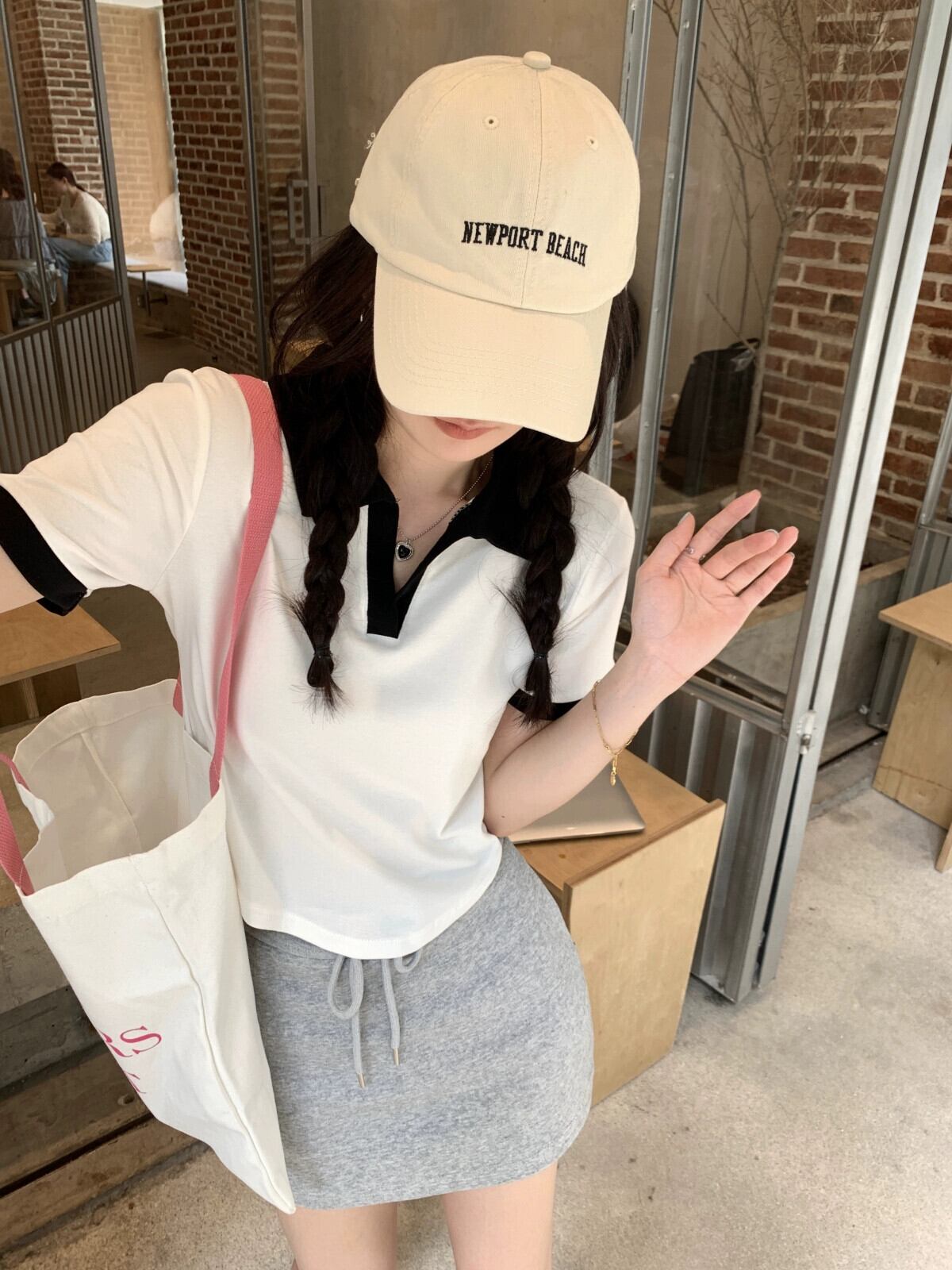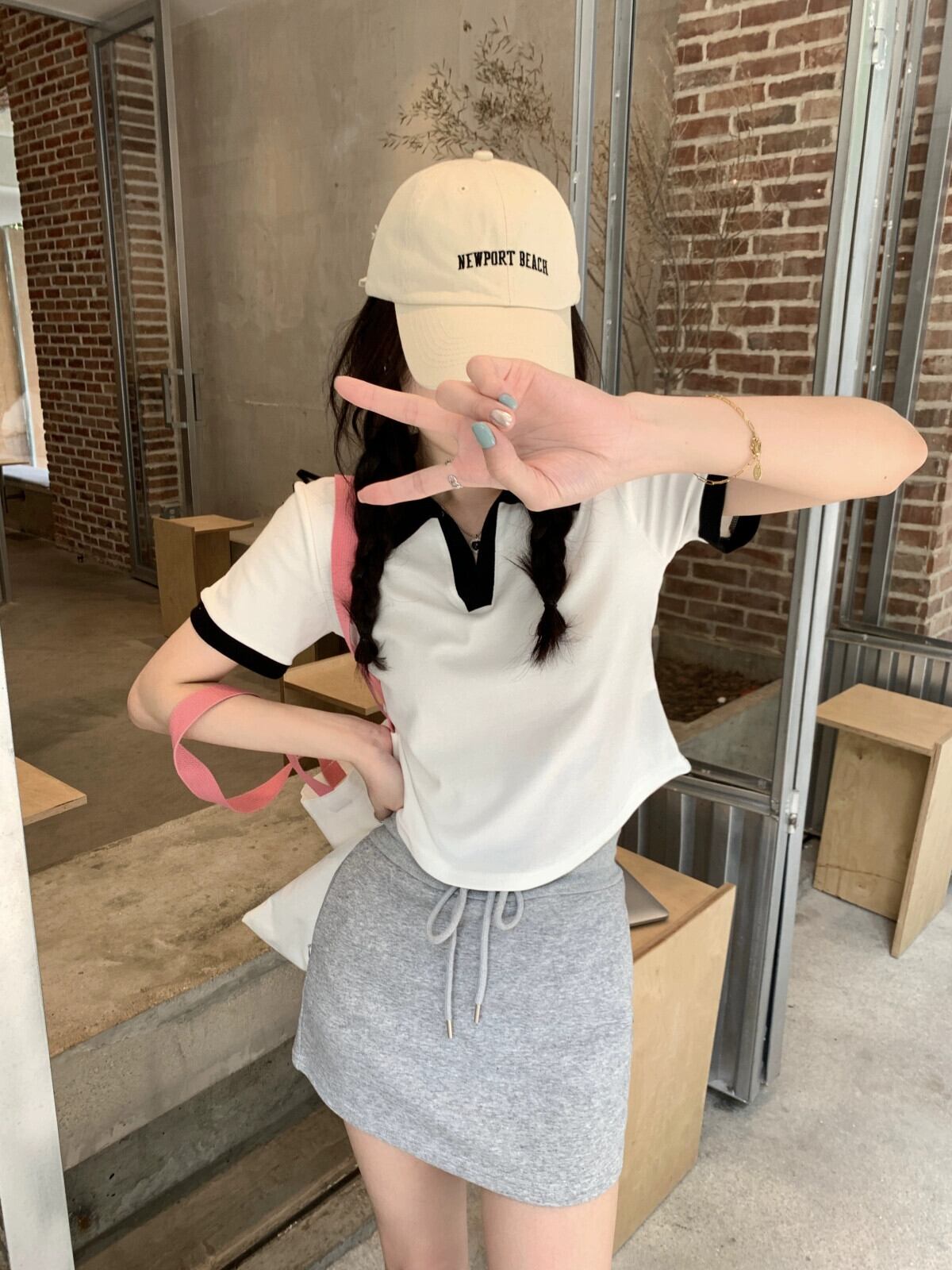 不規則な半袖 T シャツの女性の夏バージョン緩い小さいファッション肩スリム アーク ショート V ネック トップ サマー 夏物 Vネック Tシャツ 7460068480724135 | framboise21