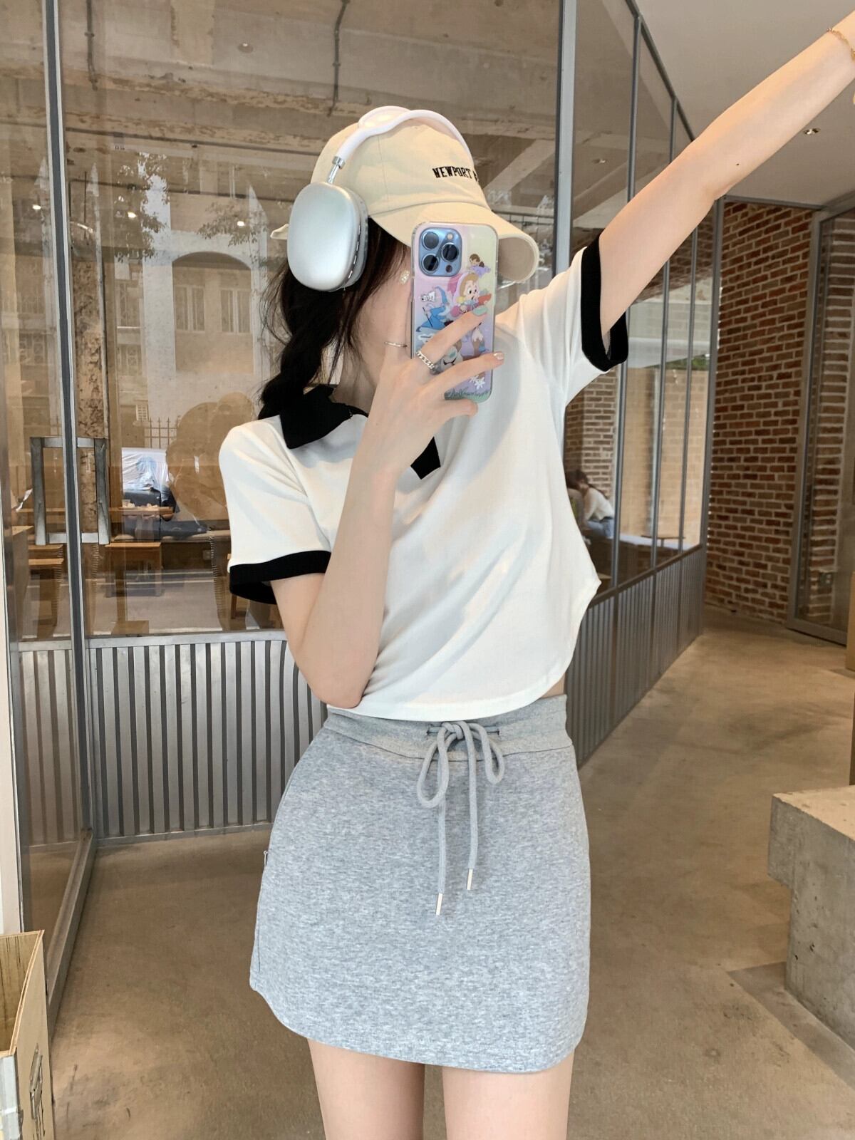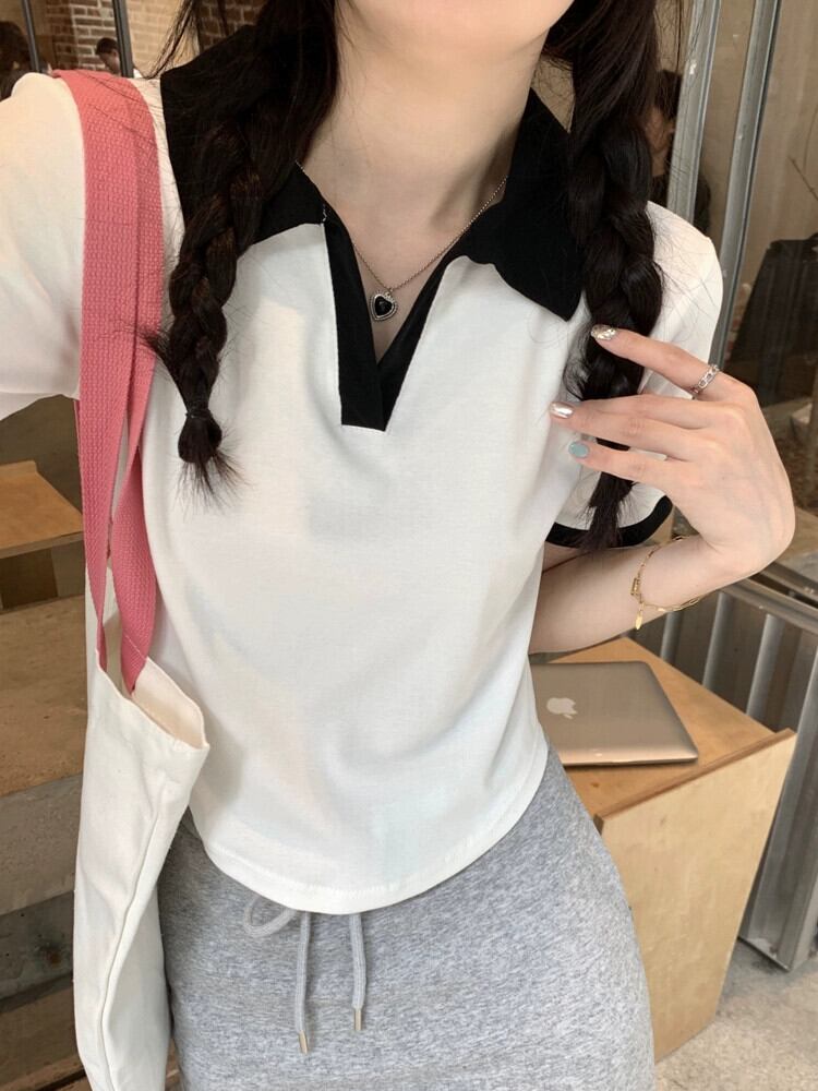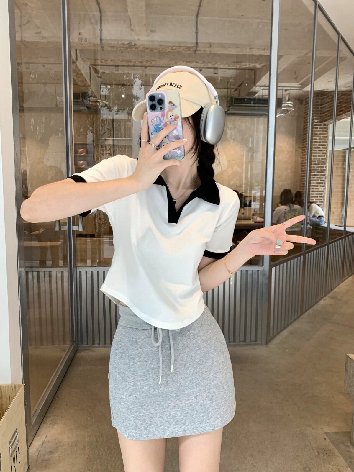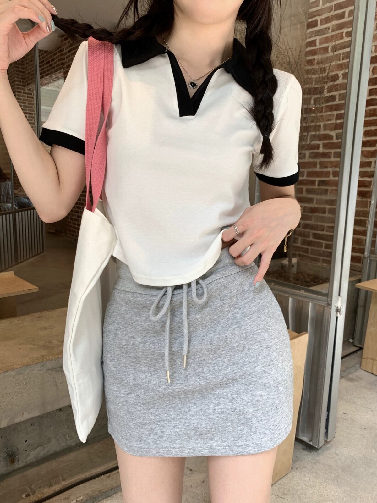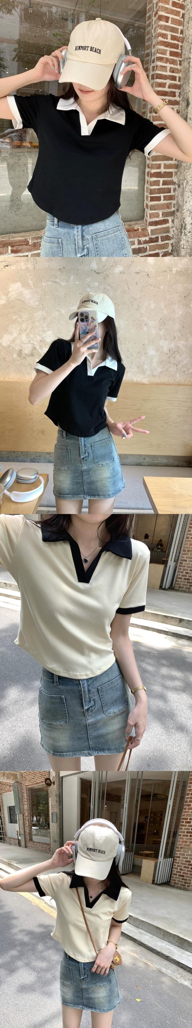 不規則な半袖 T シャツの女性の夏バージョン緩い小さいファッション肩スリム アーク ショート V ネック トップ サマー 夏物 Vネック Tシャツ 7460068480724135 | framboise21
