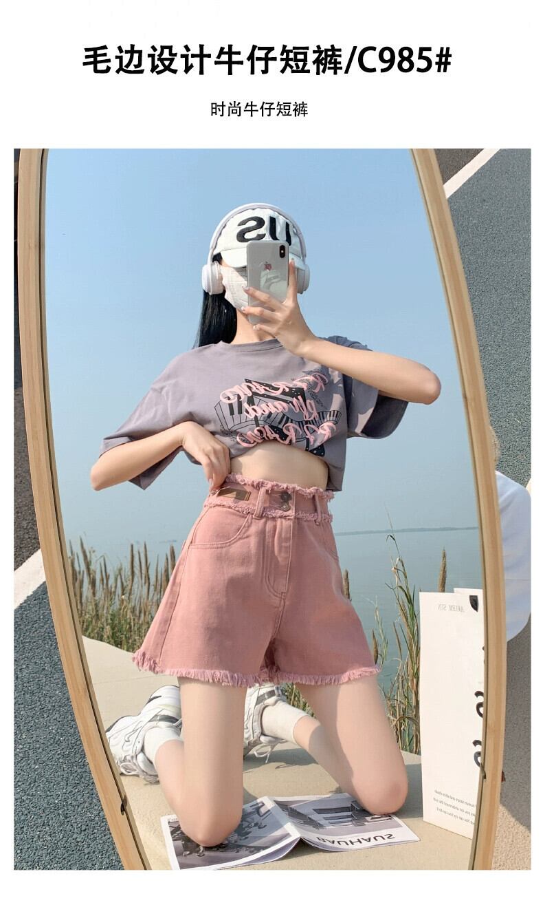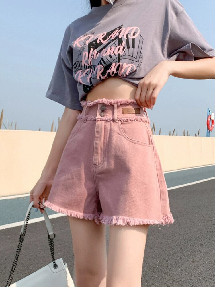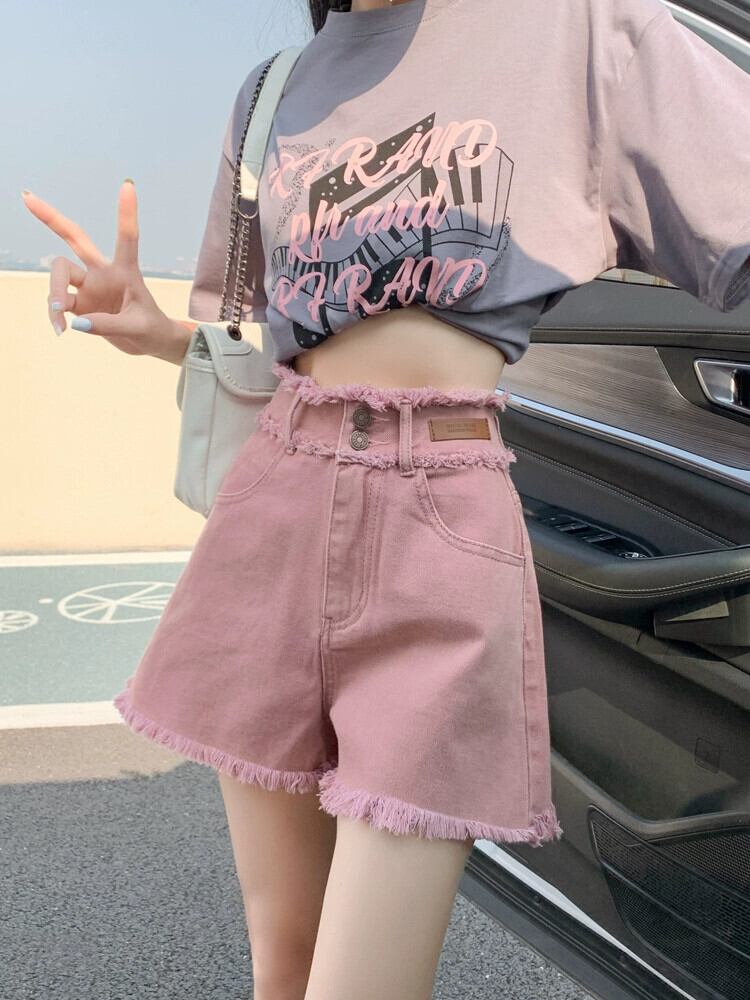 ローエッジ A ライン デニム ショート パンツ レディース 夏 アウター ハイウエスト パンツ デザイン感 薄汚れ ピンク ドーパミン パンツ ハイウェスト サマー 夏物 ショーツ ブルマー Aライン 7460050953195275 | framboise21