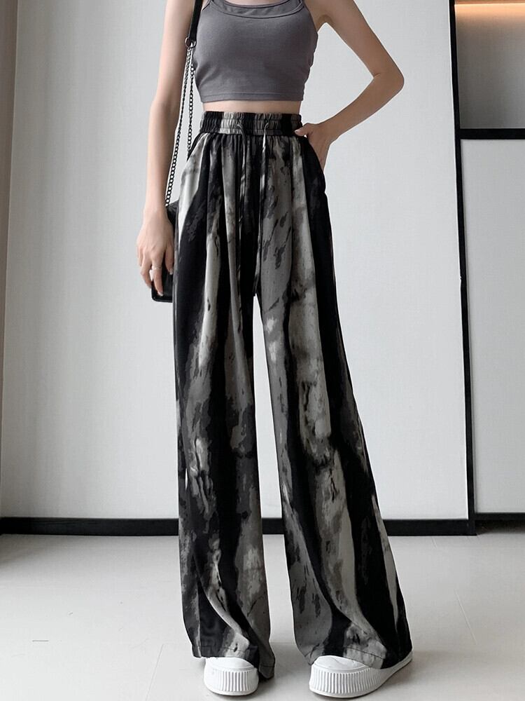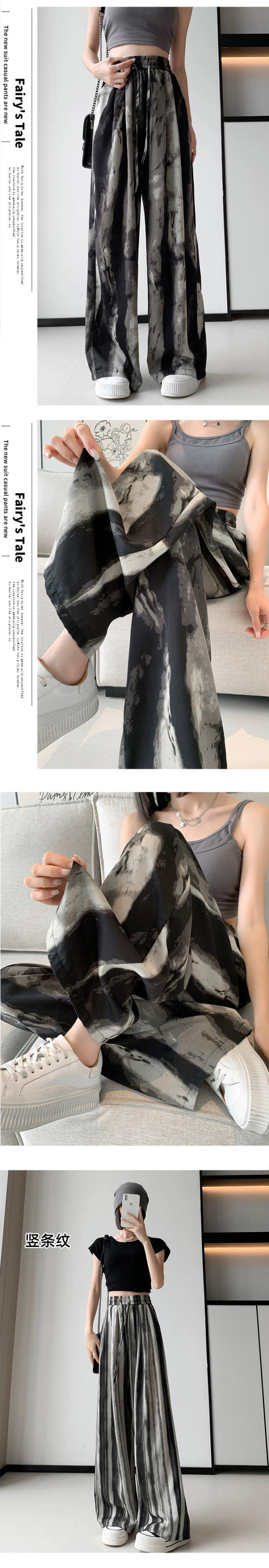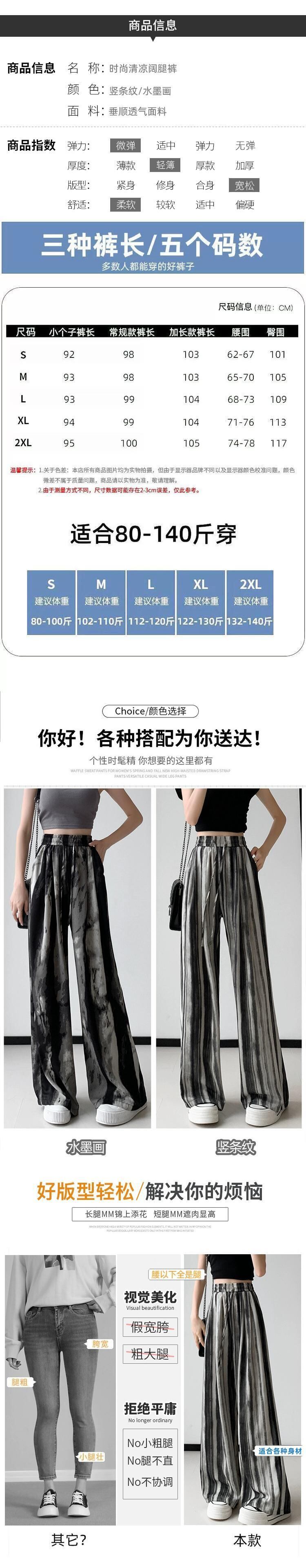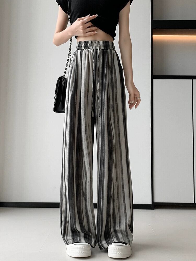 ストライプアイスシルクワイドレッグパンツレディース夏薄部ハイウエスト絞り染めパンツルーズスリムストレートカジュアルレディースパンツ サマー 夏物 7460092523154187 | framboise21