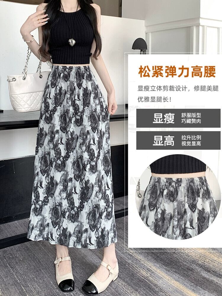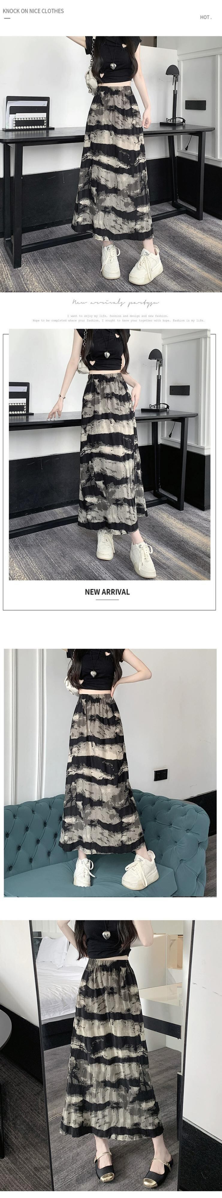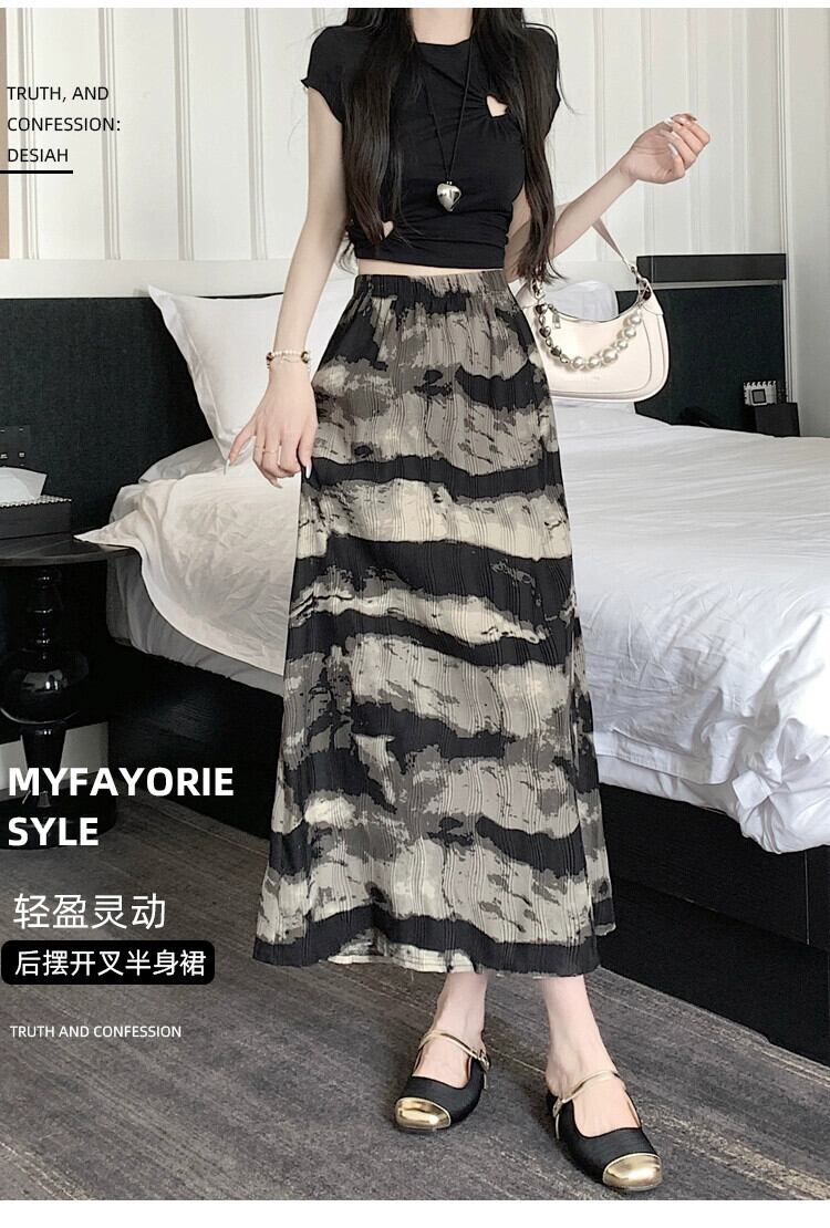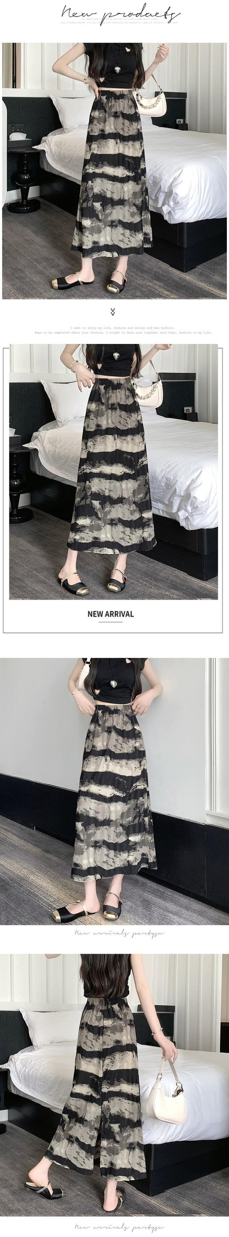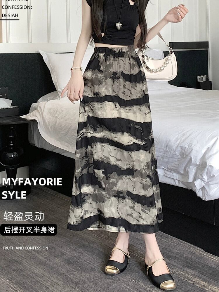 絞り染め水墨画スカート レディース 夏 レトロ 中国風 プリーツ ロングスカート ハイウエスト スリム スリット Aラインスカート ハイウェスト サマー 夏物 7460073212388465 | framboise21