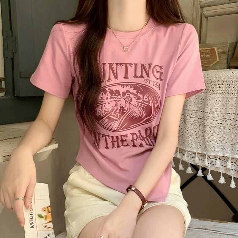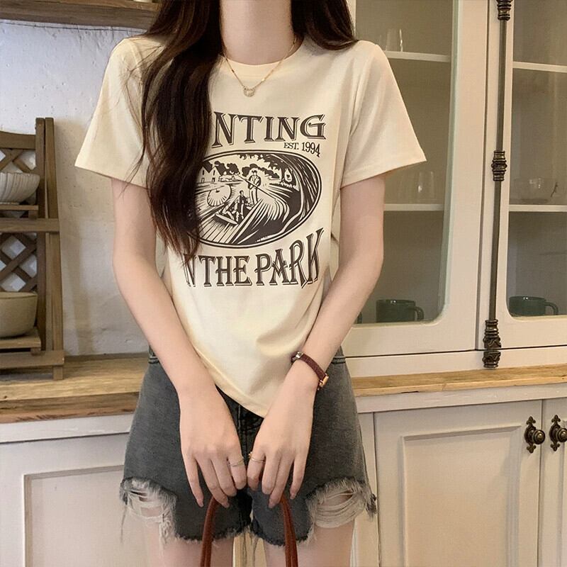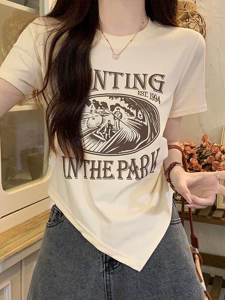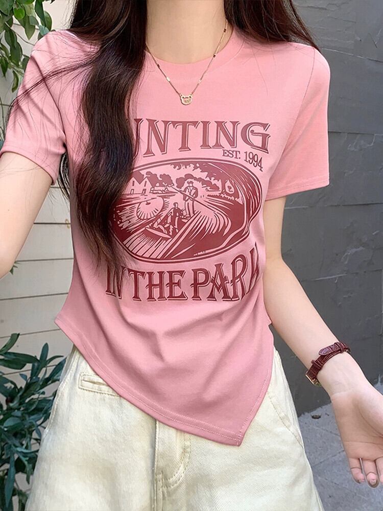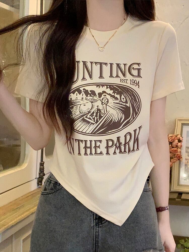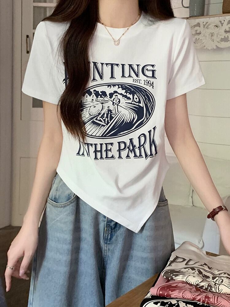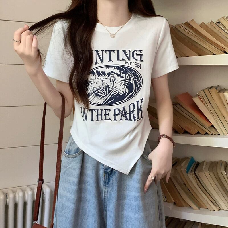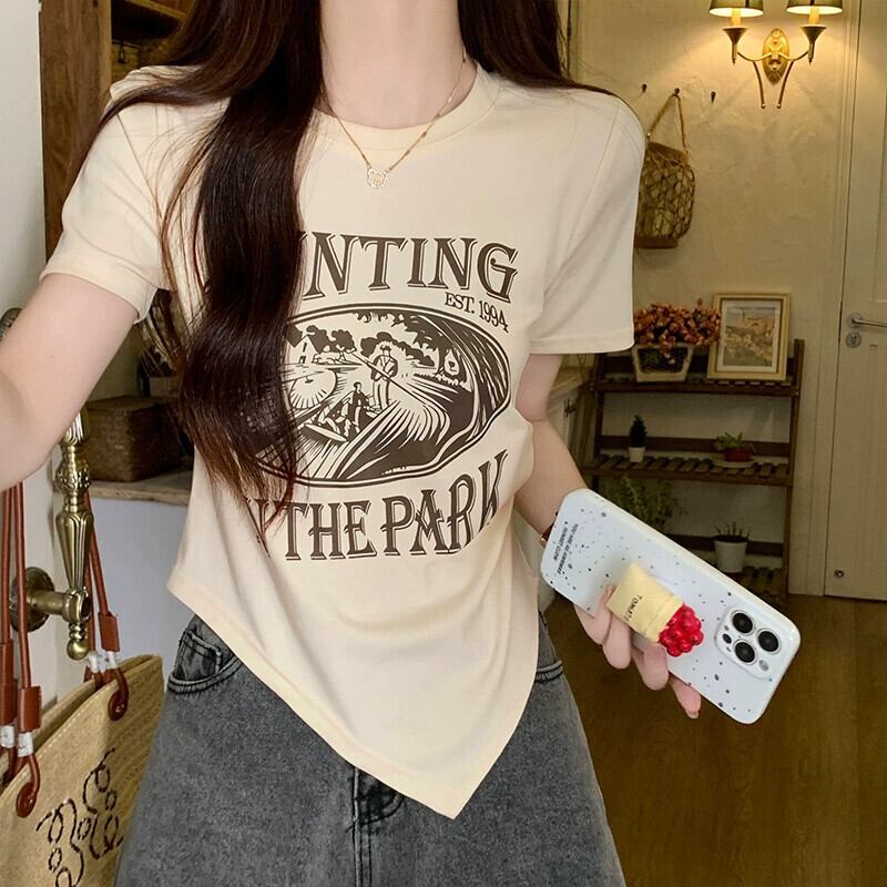 アメリカンスタイルフロントショルダー半袖Tシャツレディース2023年夏新作スリムフィットスリムスイートクールイレギュラーヘムショートトップ 大人ガーリー スウィート キュート カジュアル サマー 夏物 7460014620803895 | framboise21