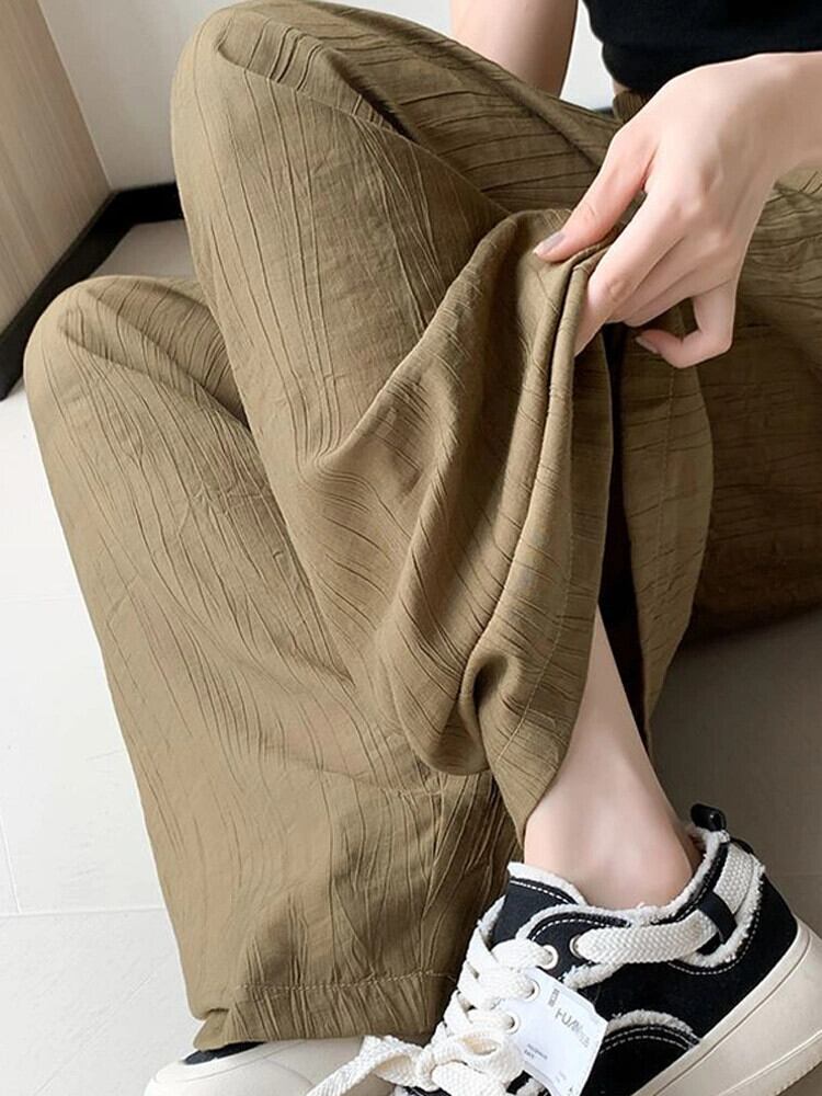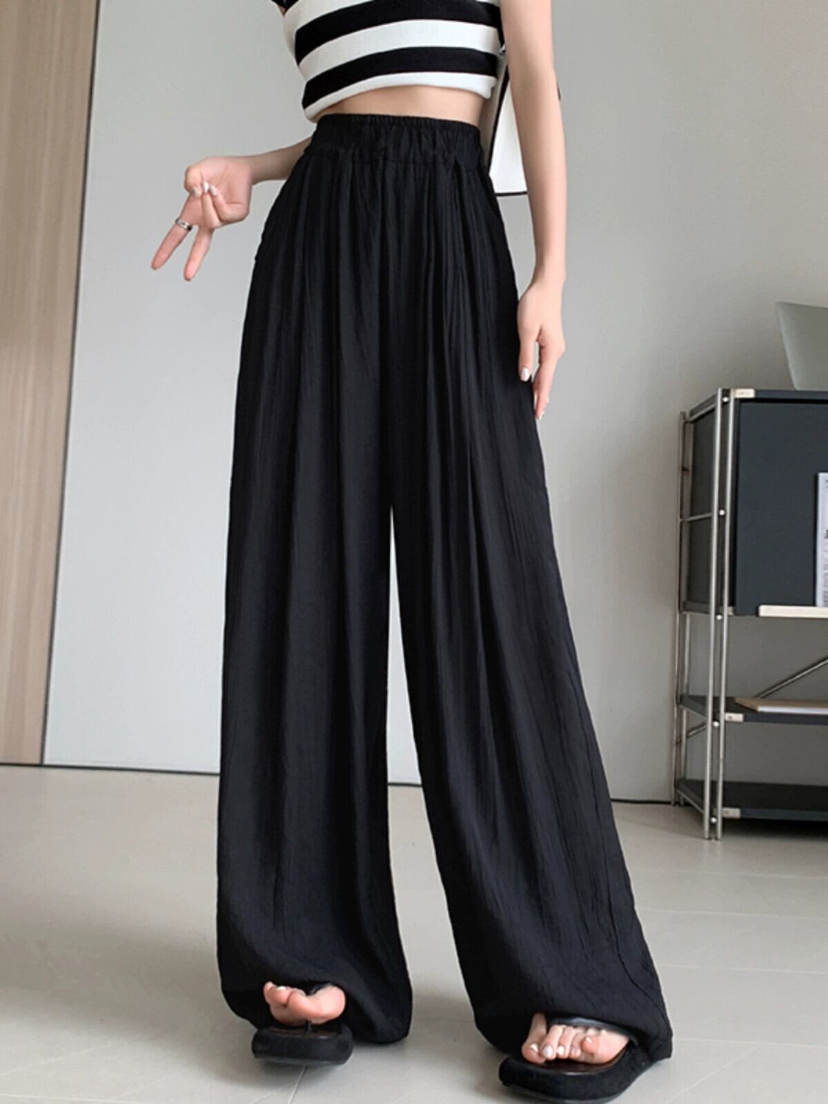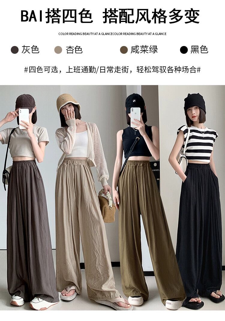 アイスシルク ワイドレッグ パンツ レディース 夏 薄手 ルーズ ハイウエスト コットンとリネン レディース パンツ カジュアル ドレープ フロア モップ フォールド リネン パンツ サマー 夏物 746003735855977 | framboise21