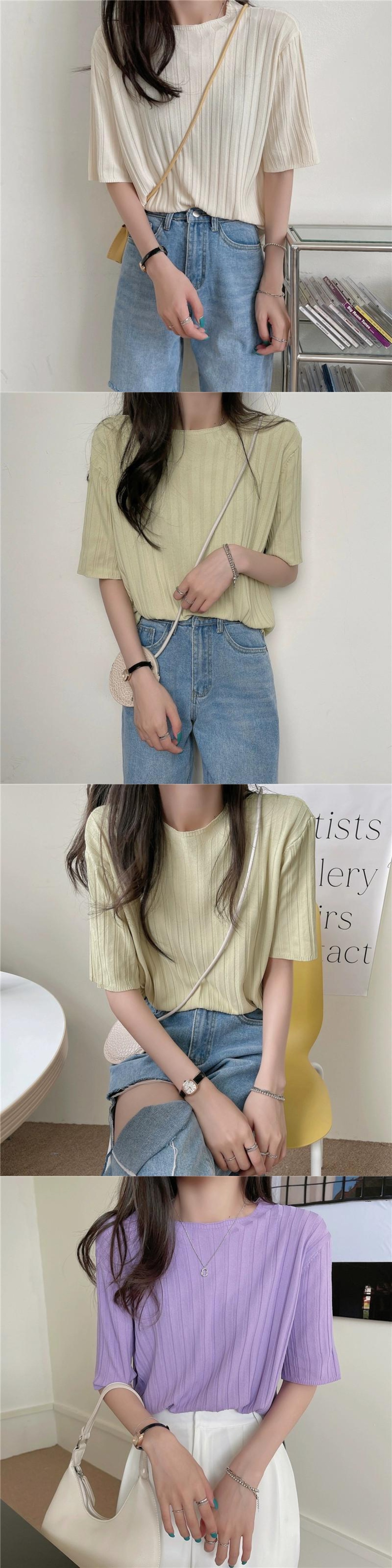 アイスシルク半袖ニットセーターレディース2023年夏新バージョンゆったり薄手Tシャツショートハーフスリーブトップ サマー 夏物 7460080540870830