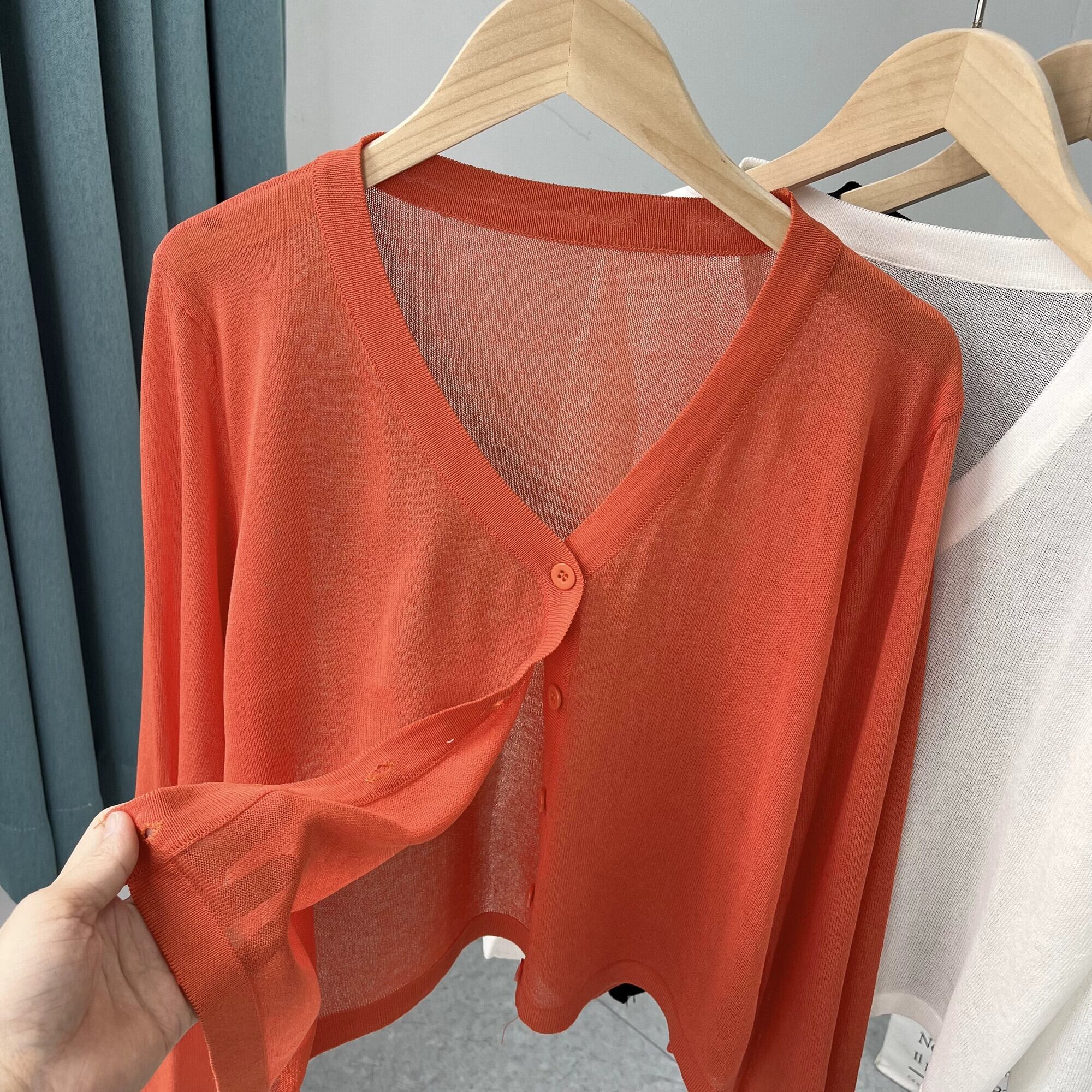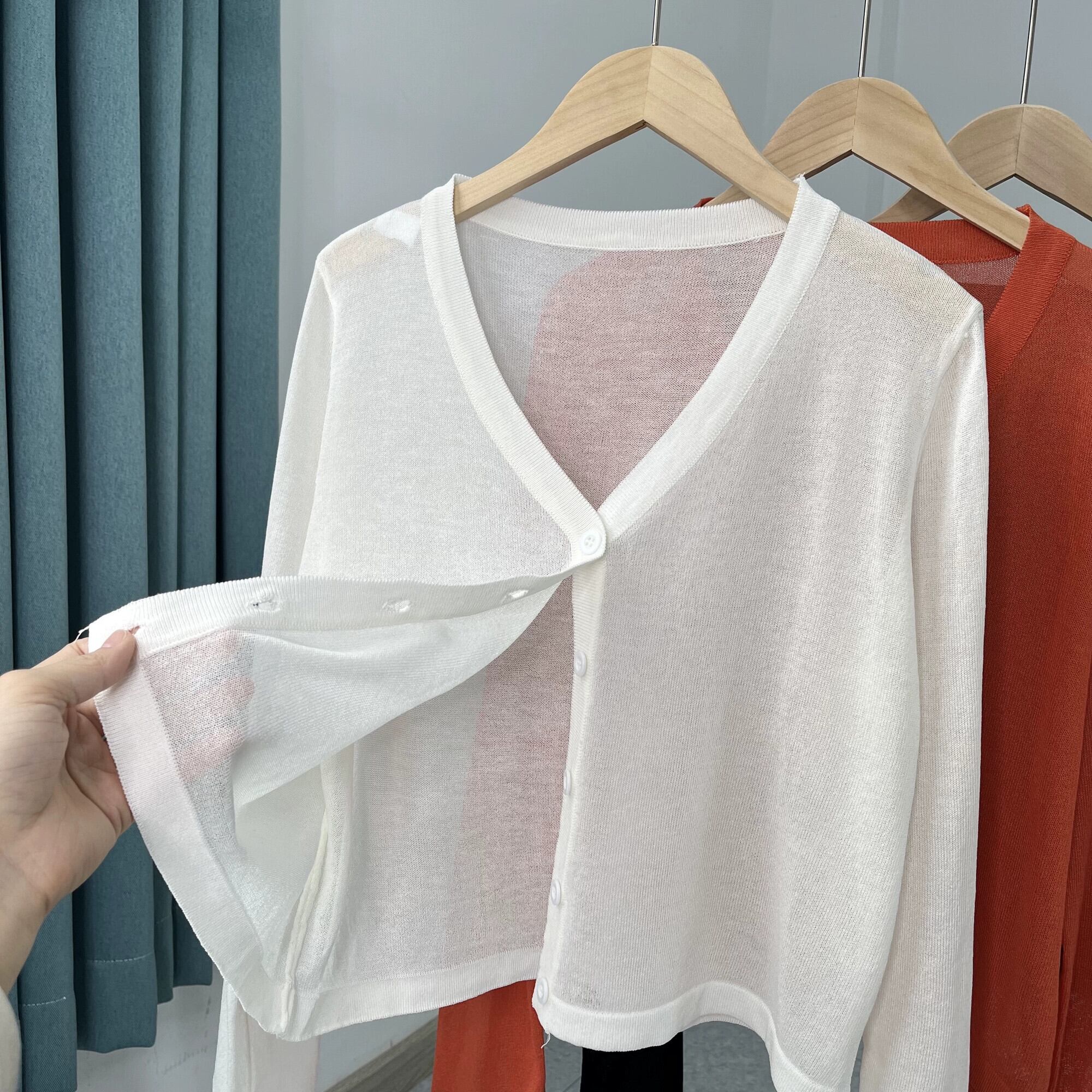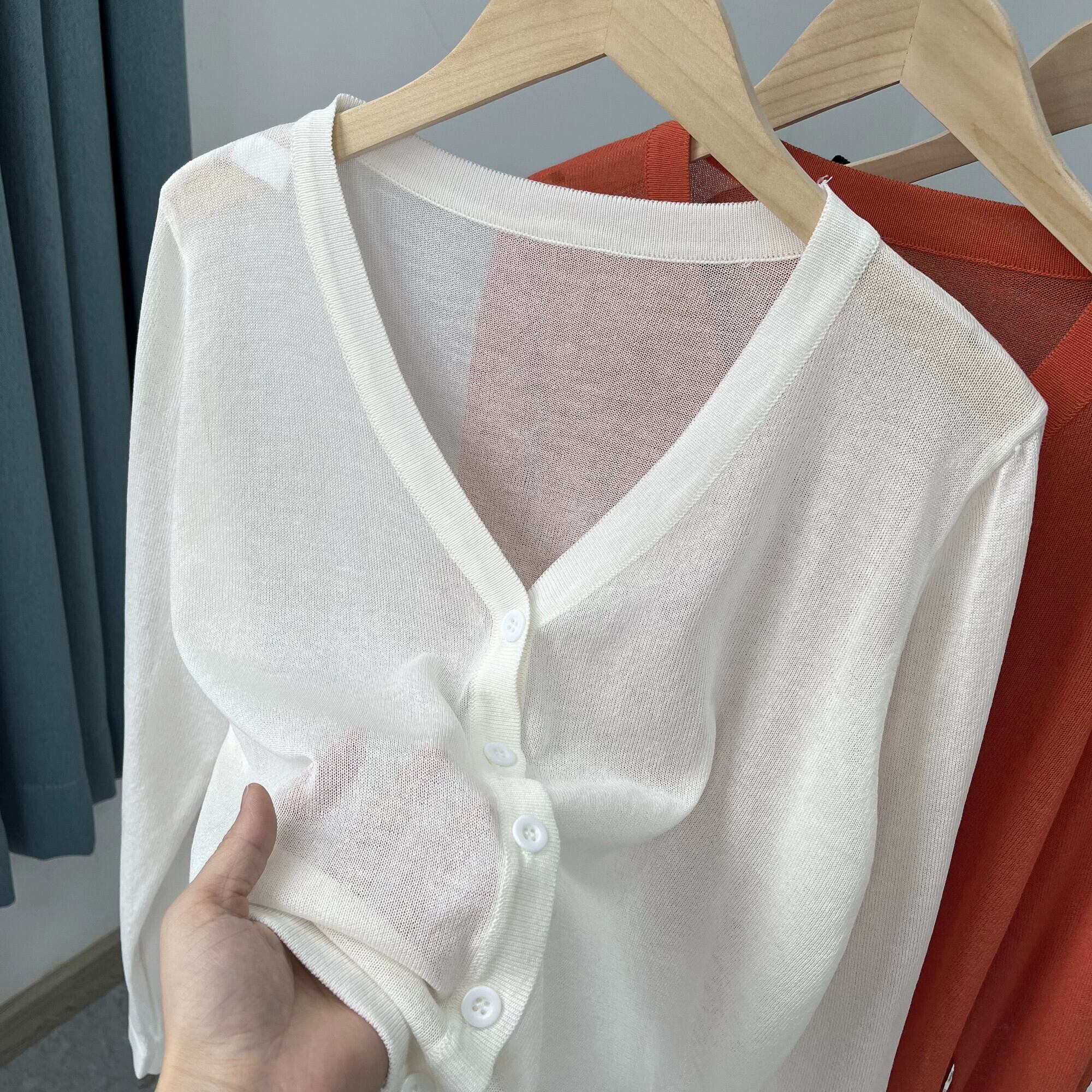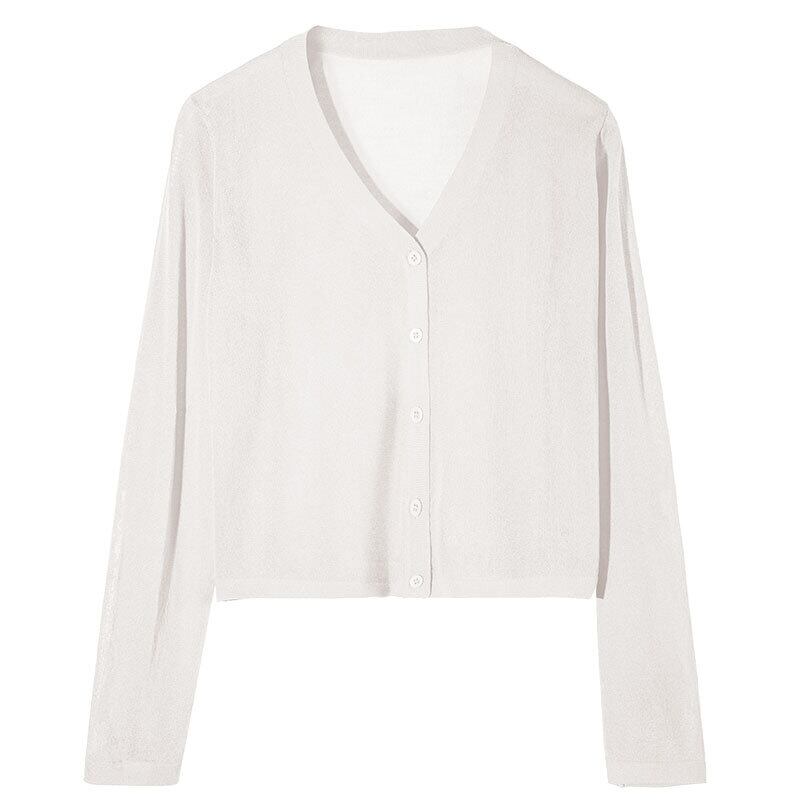 ホワイトアイスシルク日焼け止めカーディガン薄いセクション女性の夏サスペンダーとニットエアコンシャツショート V ネック小さなコート サマー 夏物 Vネック 7460056394305207 | framboise21