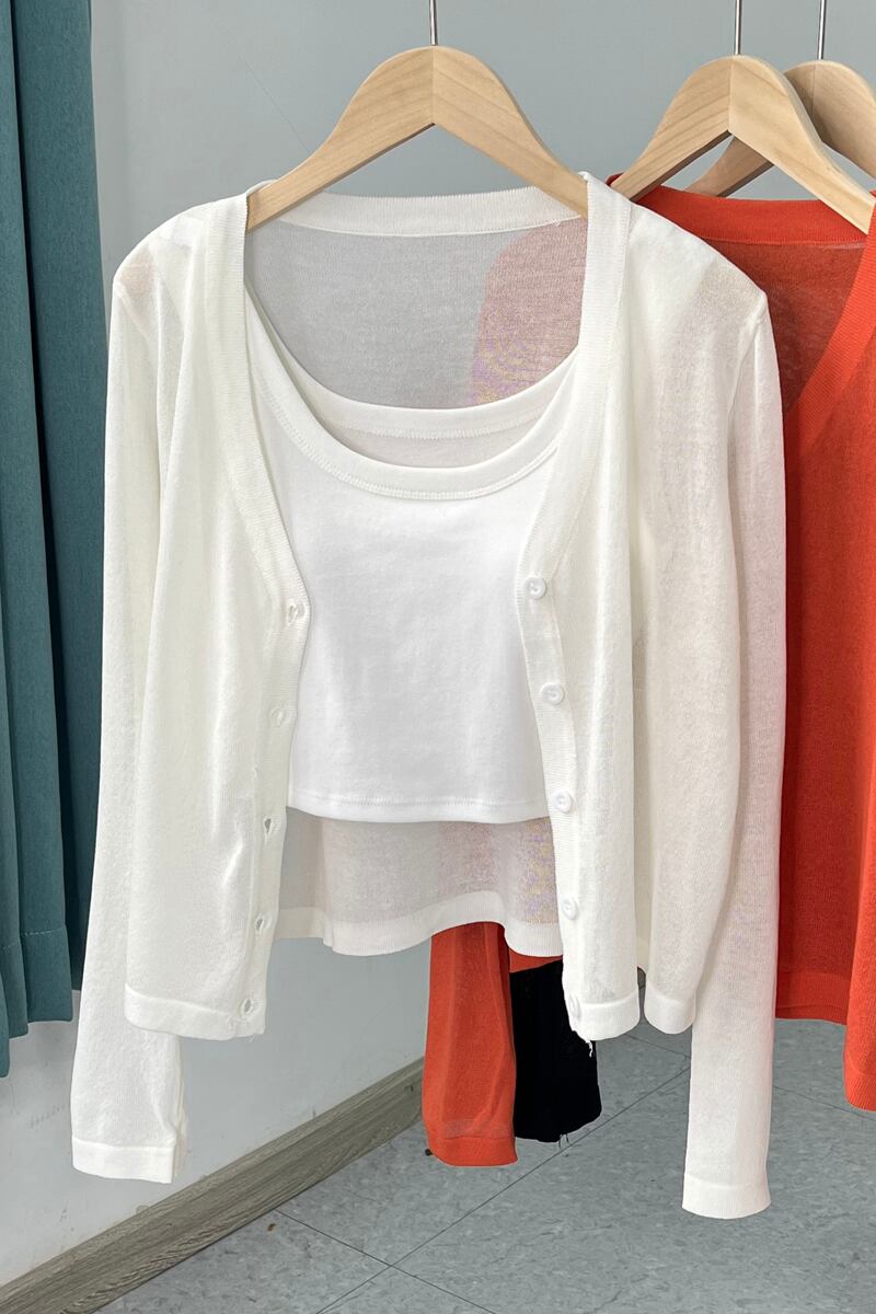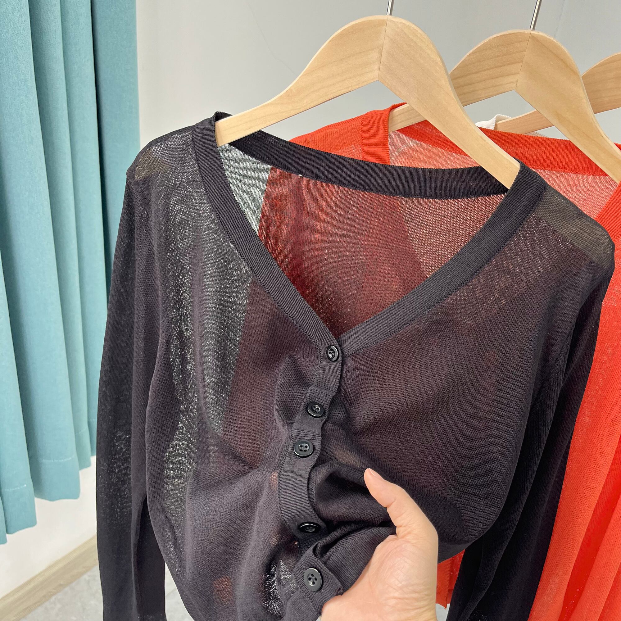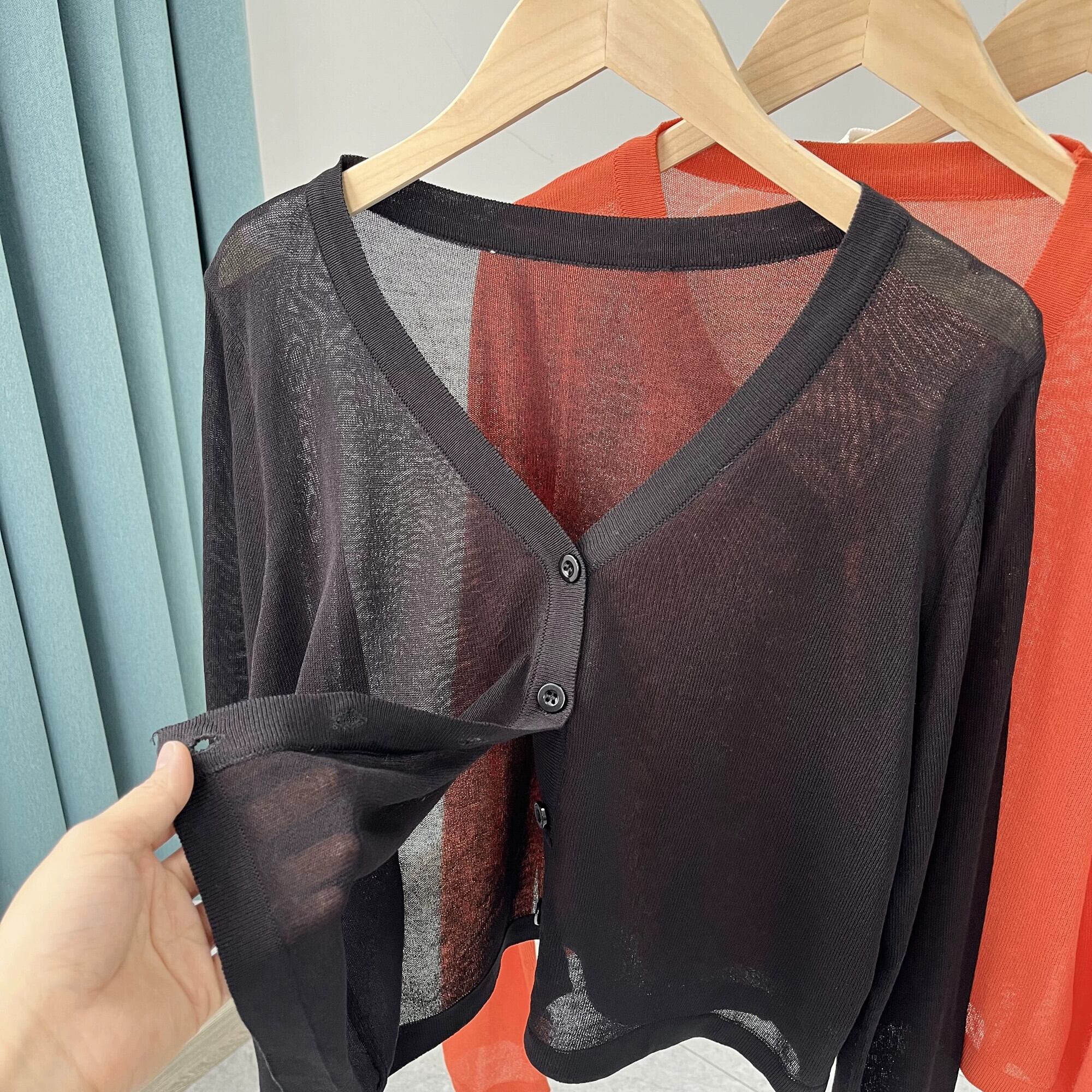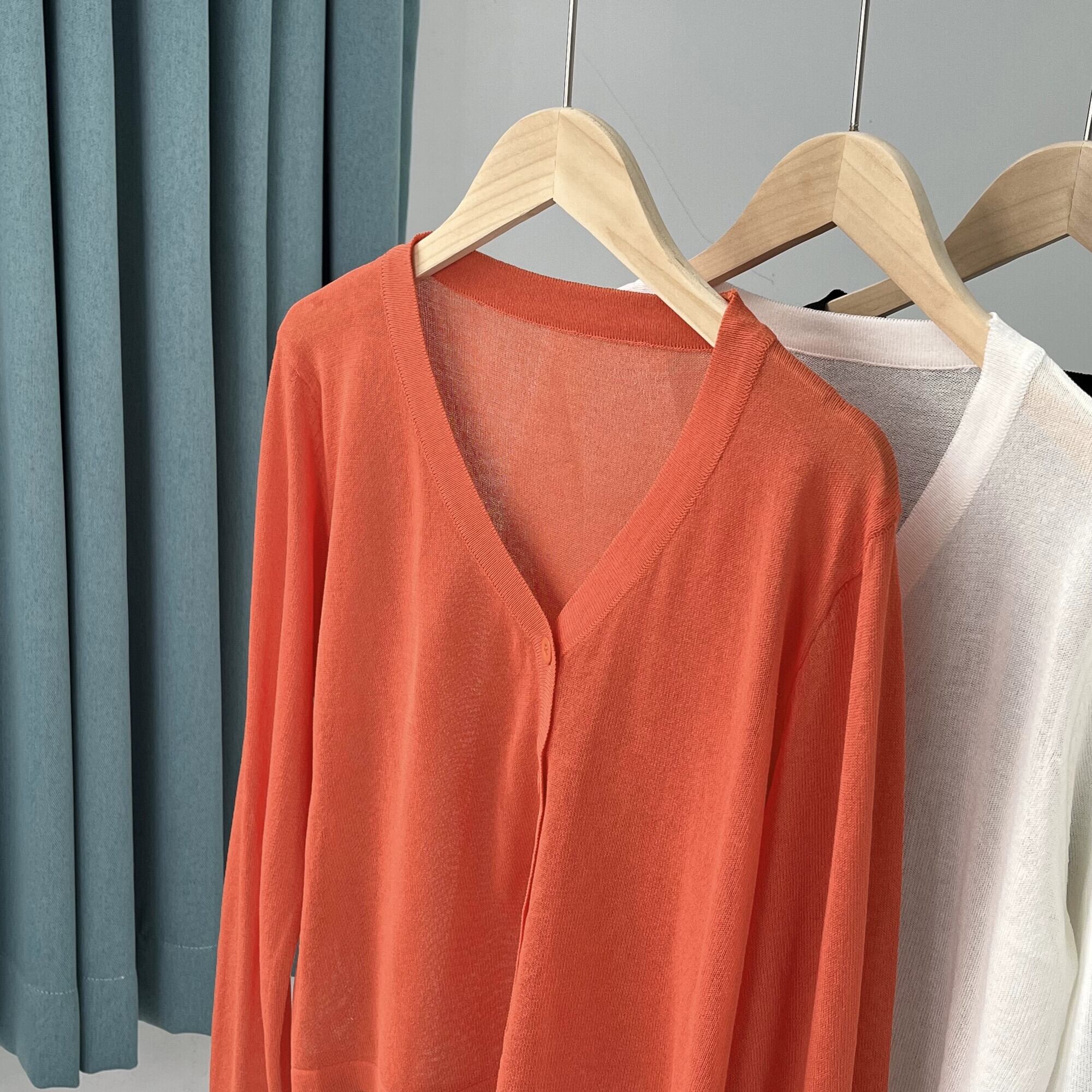 ホワイトアイスシルク日焼け止めカーディガン薄いセクション女性の夏サスペンダーとニットエアコンシャツショート V ネック小さなコート サマー 夏物 Vネック 7460056394305207 | framboise21