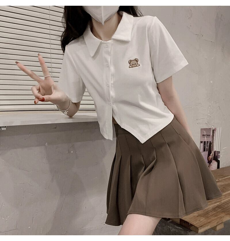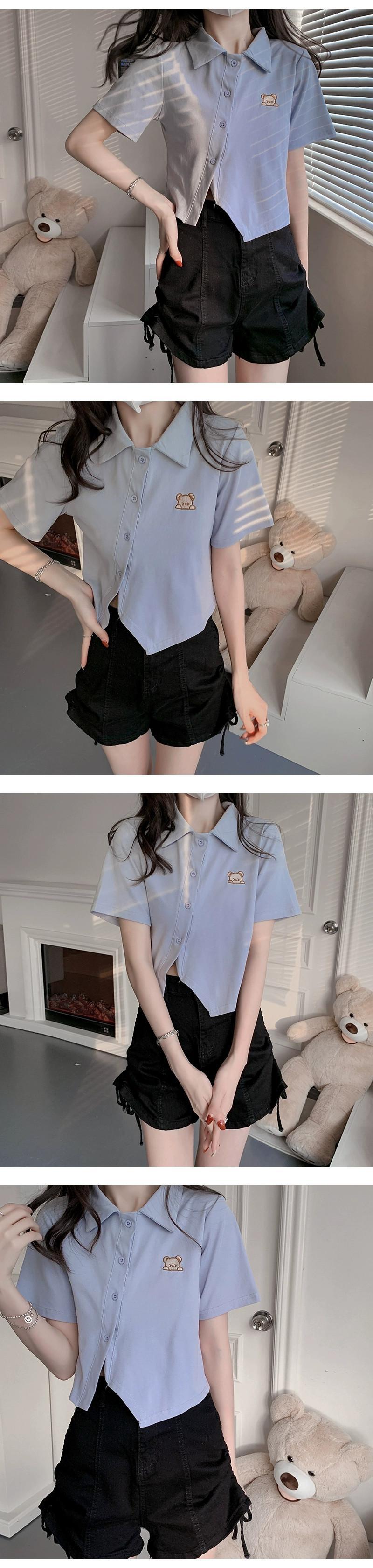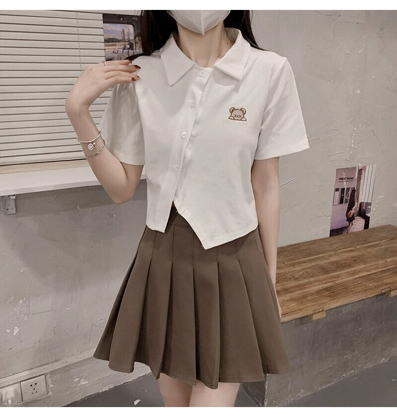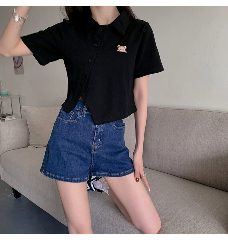変則半袖Tシャツレディース夏甘デザインセンスゆったりオールマッチハイウエストショート刺繍ポロカラートップス ハイウェスト 大人ガーリー スウィート キュート カジュアル サマー 夏物 7460034862302964 | framboise21