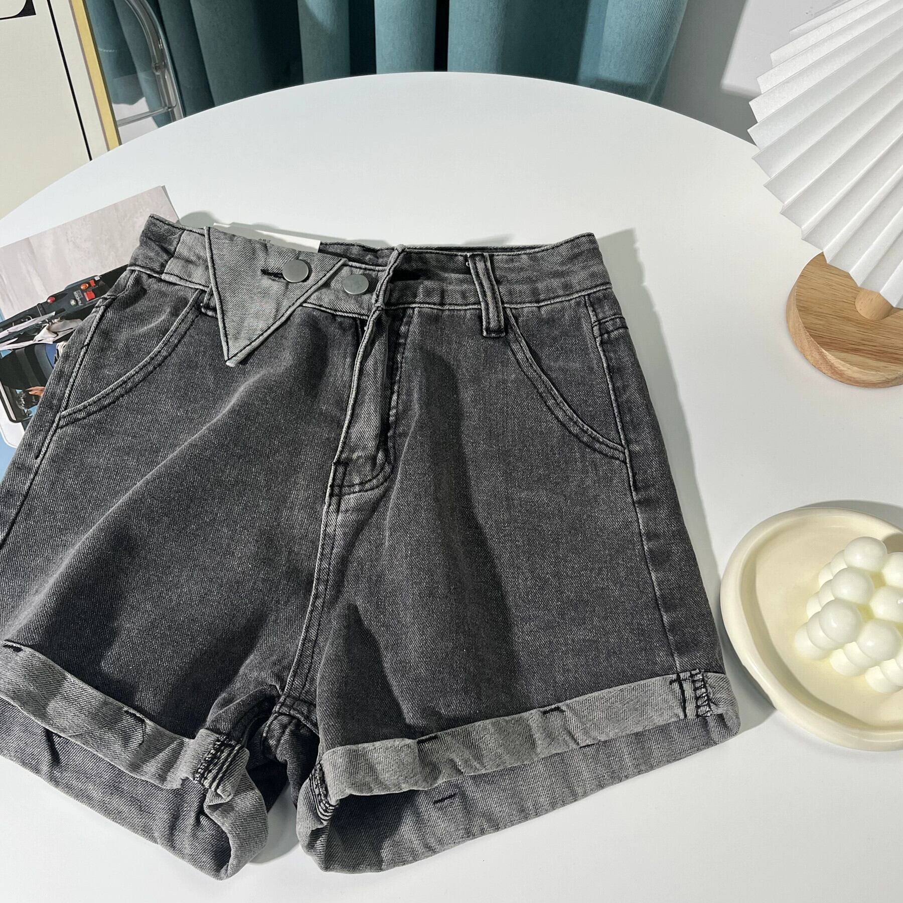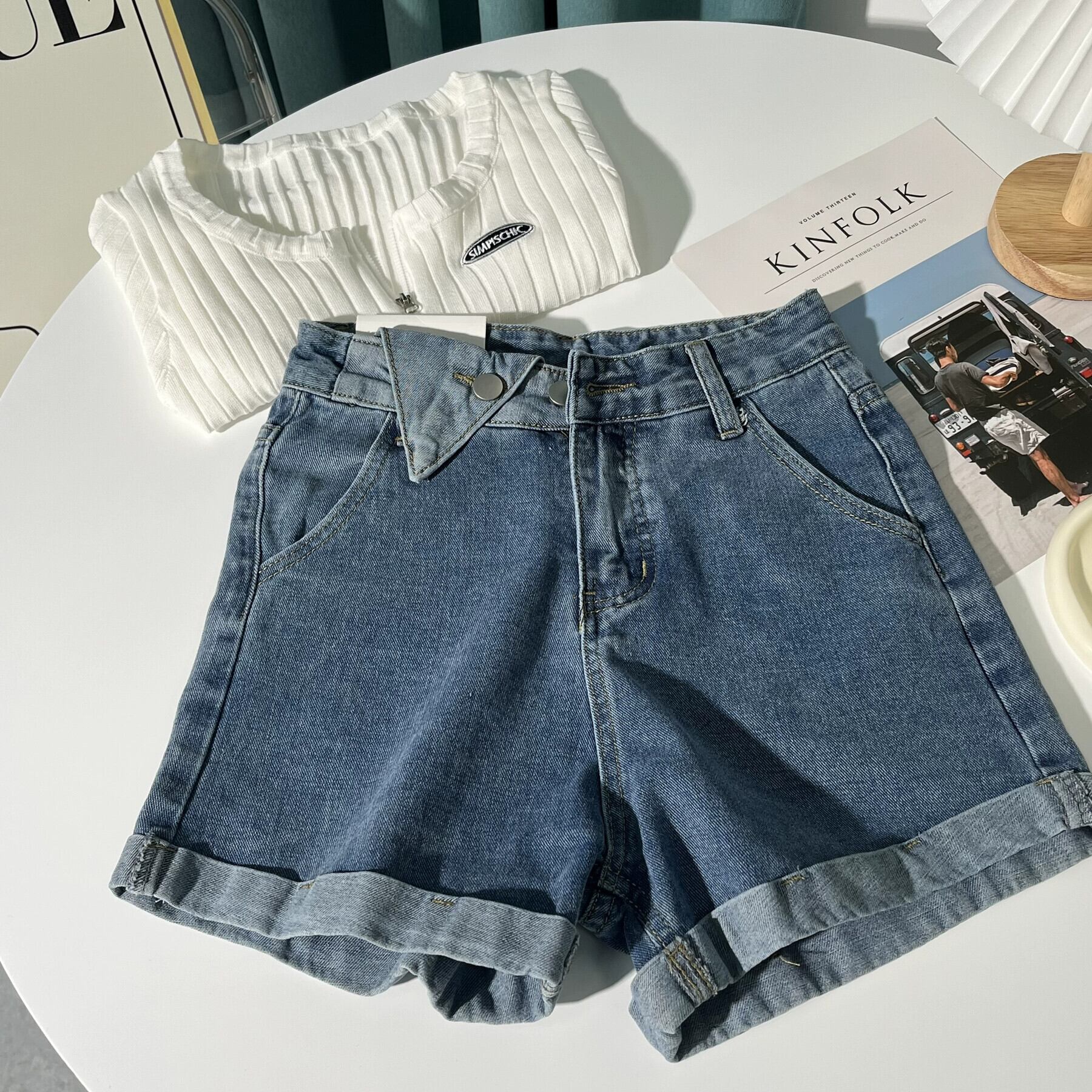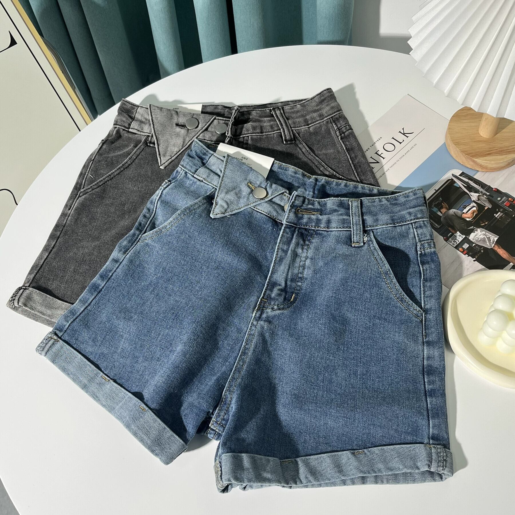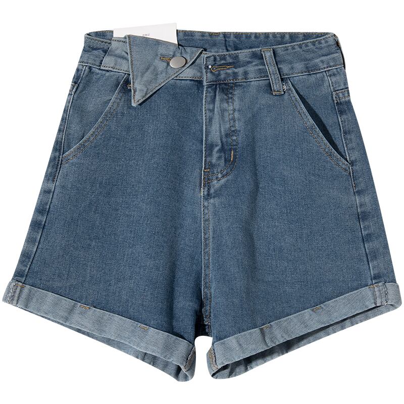 ウエストロールエッジデニムショートパンツレディース夏アメリカンレトロルーズオールマッチ薄肉パンツワイドレッグパンツトレンディ サマー 夏物 ショーツ ブルマー ワイドパンツ 7460034716005649 | framboise21