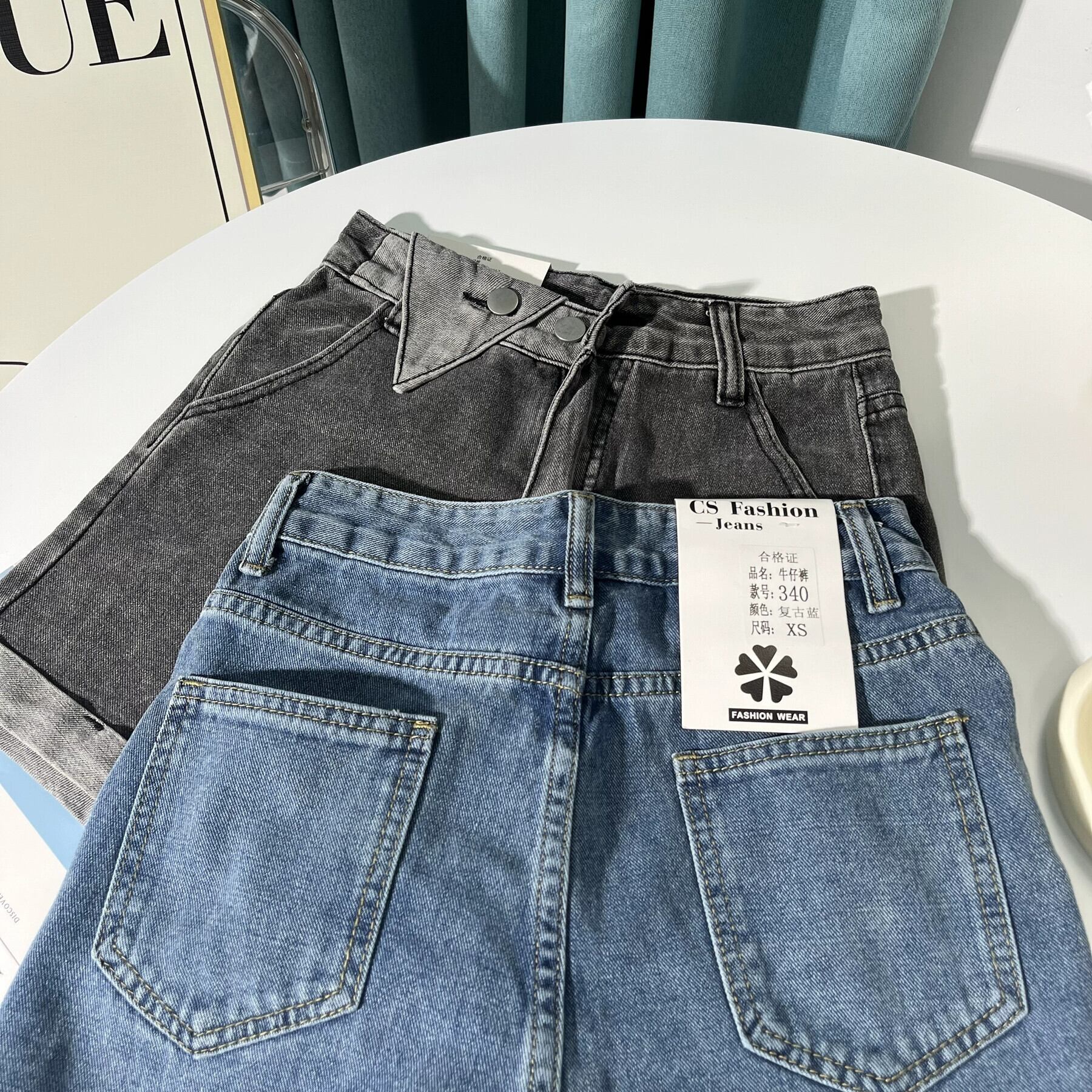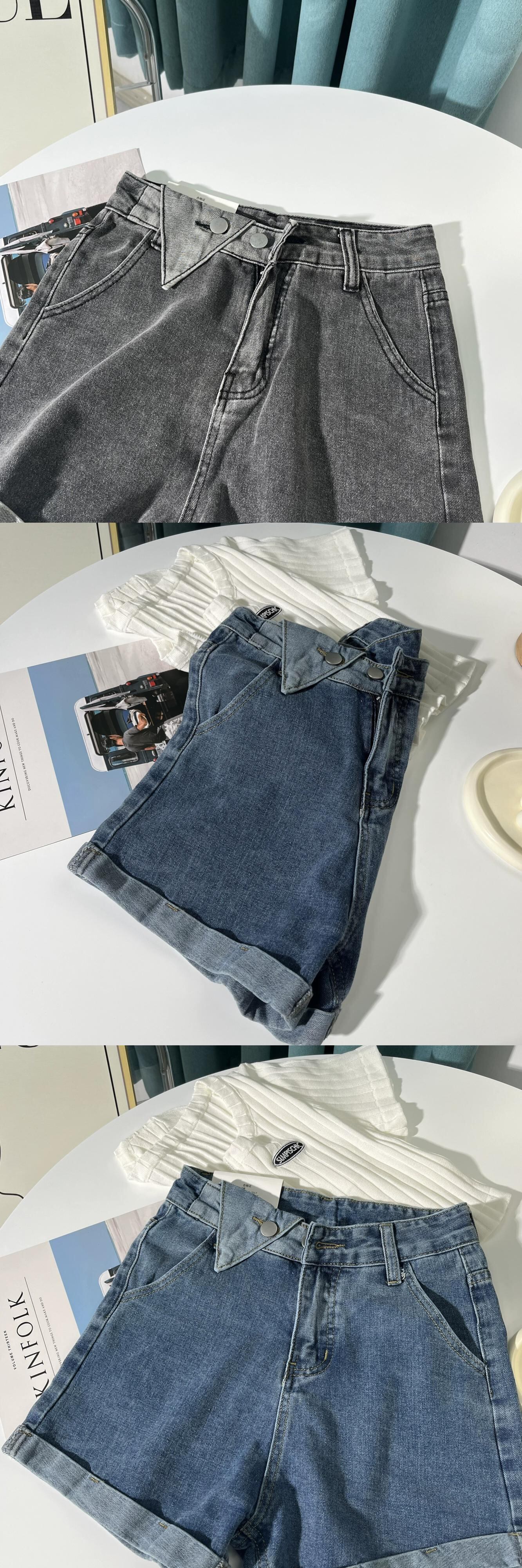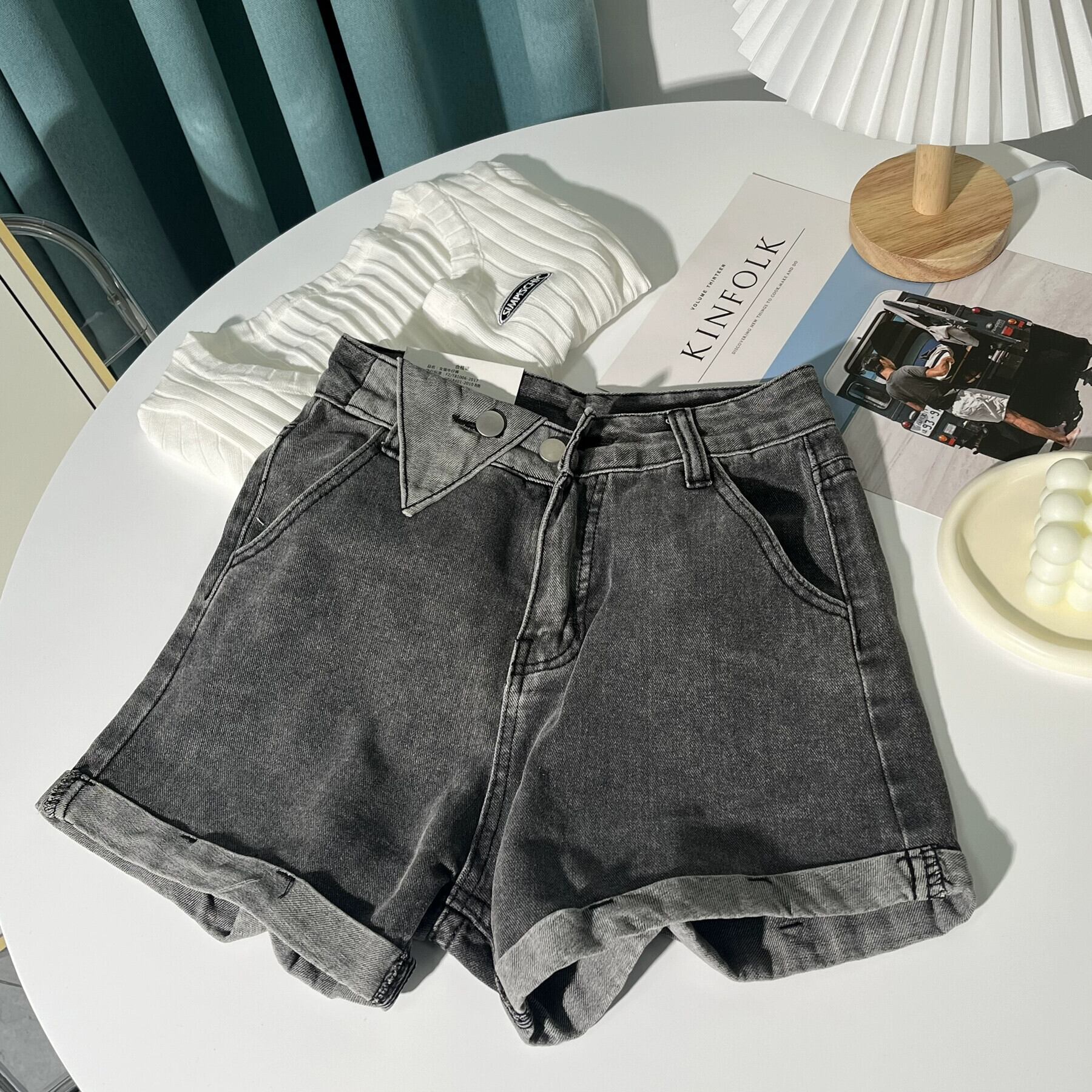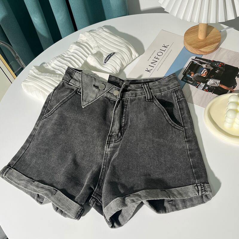 ウエストロールエッジデニムショートパンツレディース夏アメリカンレトロルーズオールマッチ薄肉パンツワイドレッグパンツトレンディ サマー 夏物 ショーツ ブルマー ワイドパンツ 7460034716005649 | framboise21