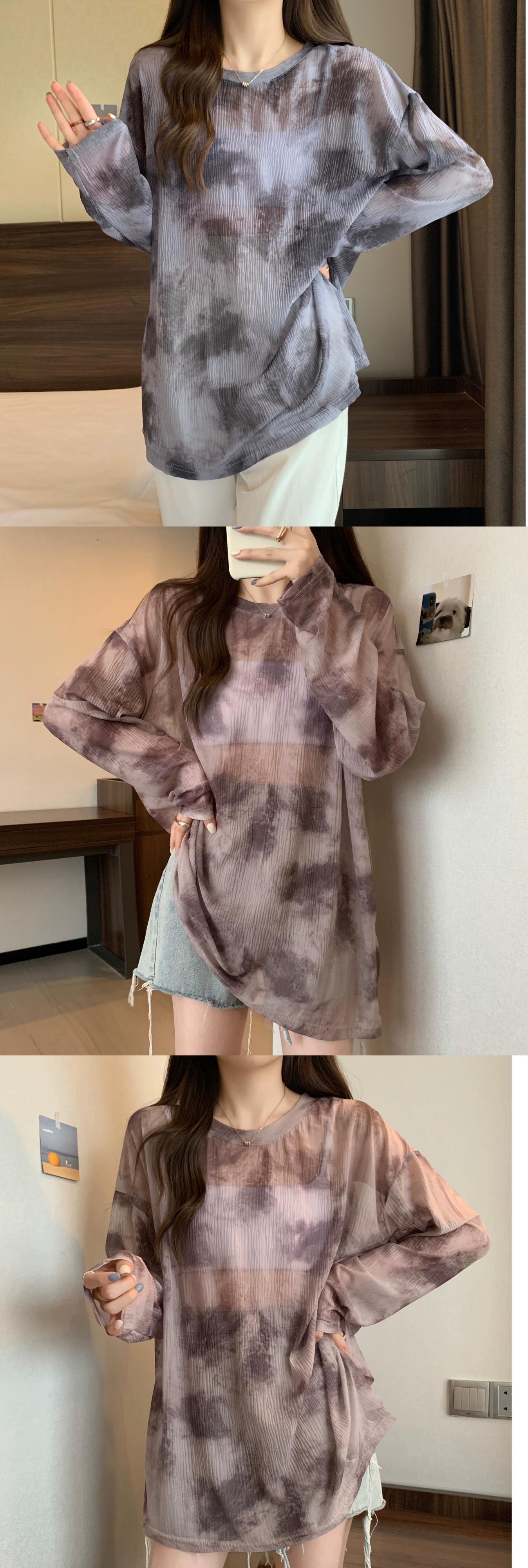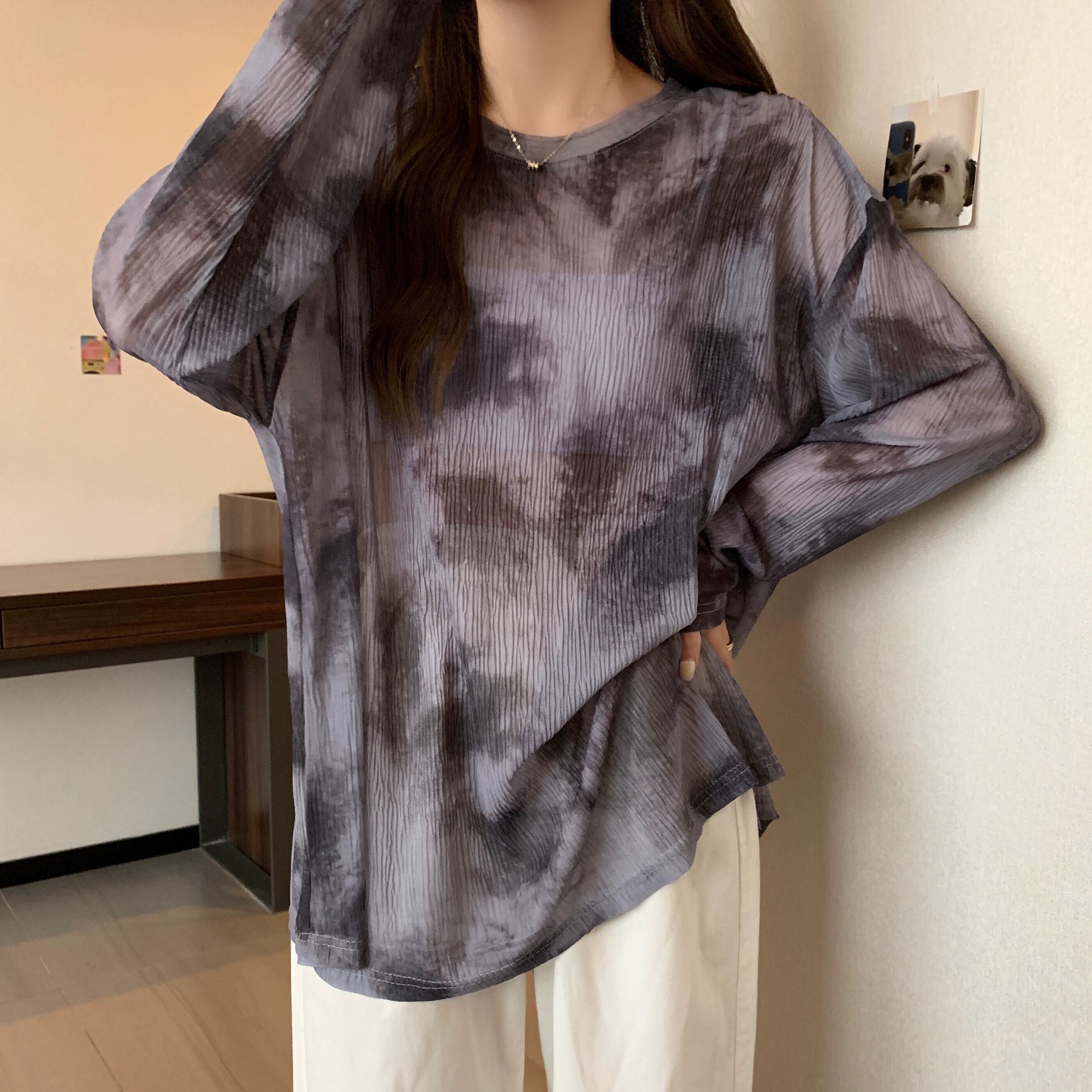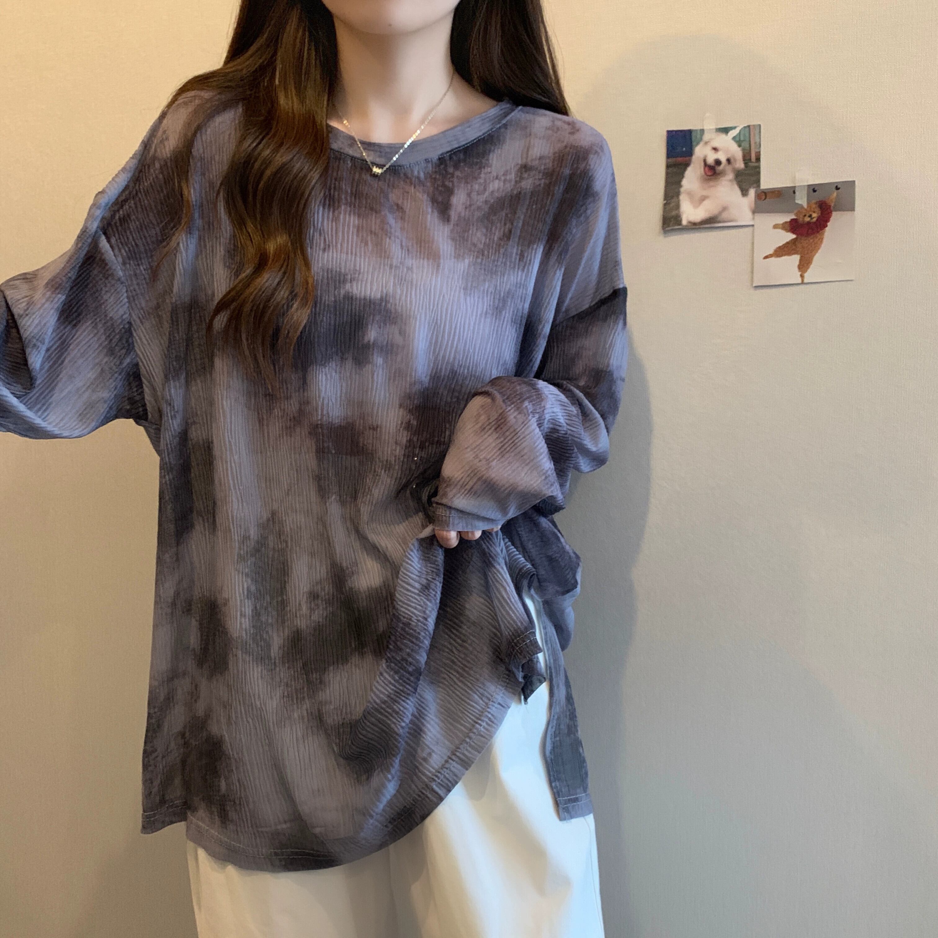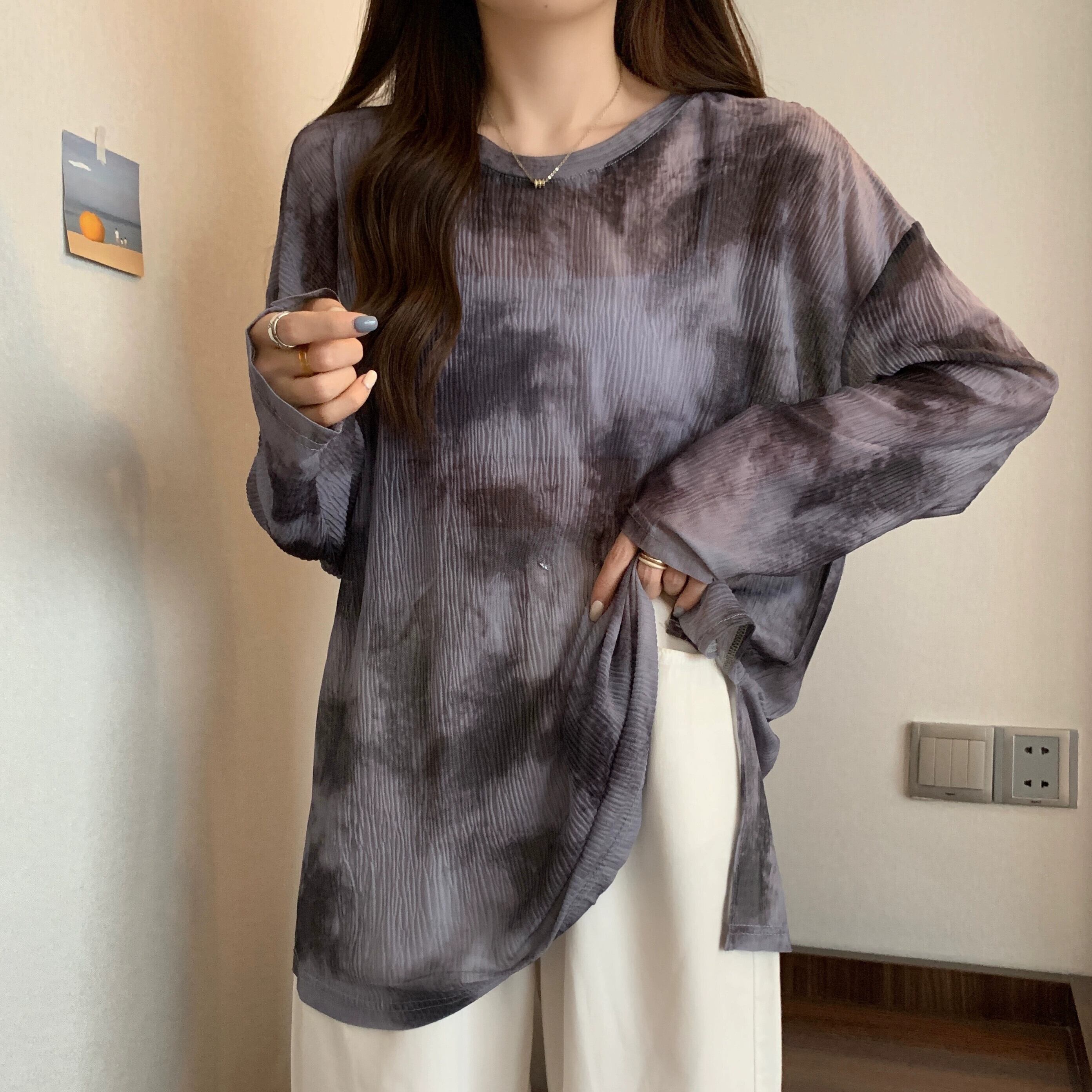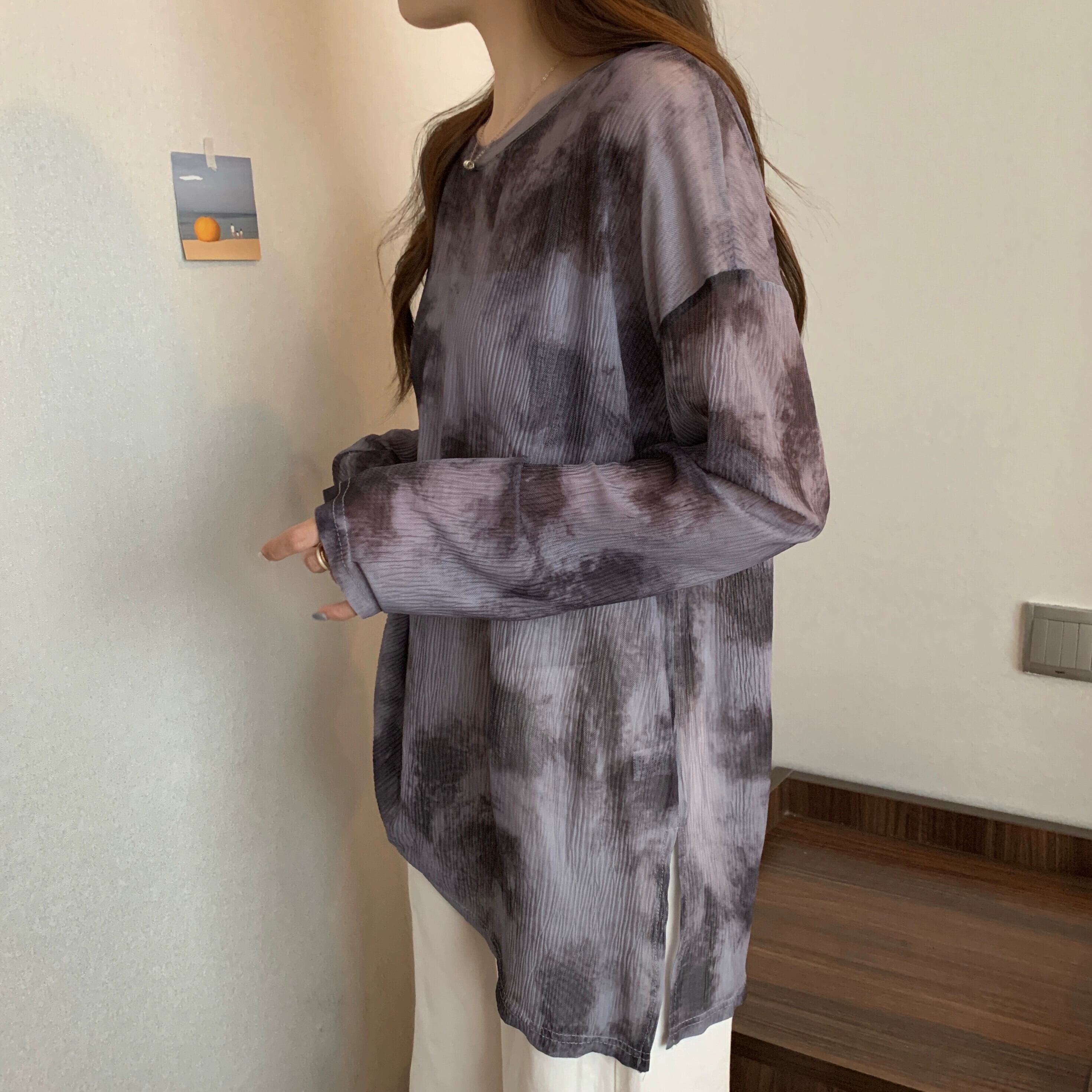 タイダイ日焼け止め長袖 T シャツ女性の夏の薄いセクション日焼け止めルーズ スリングとプルオーバー パーカー チュール トップ ロング サマー 夏物 Tシャツ 7460022496056108 | framboise21