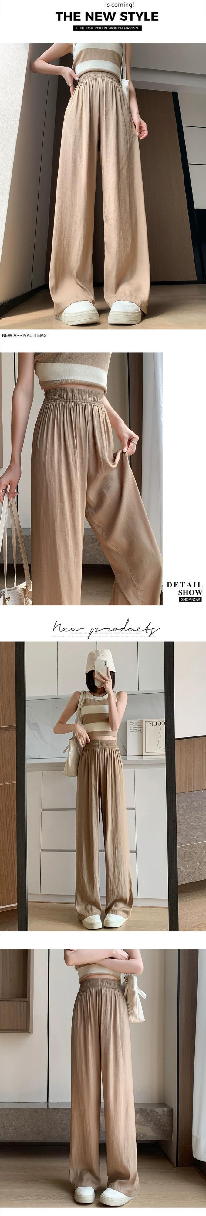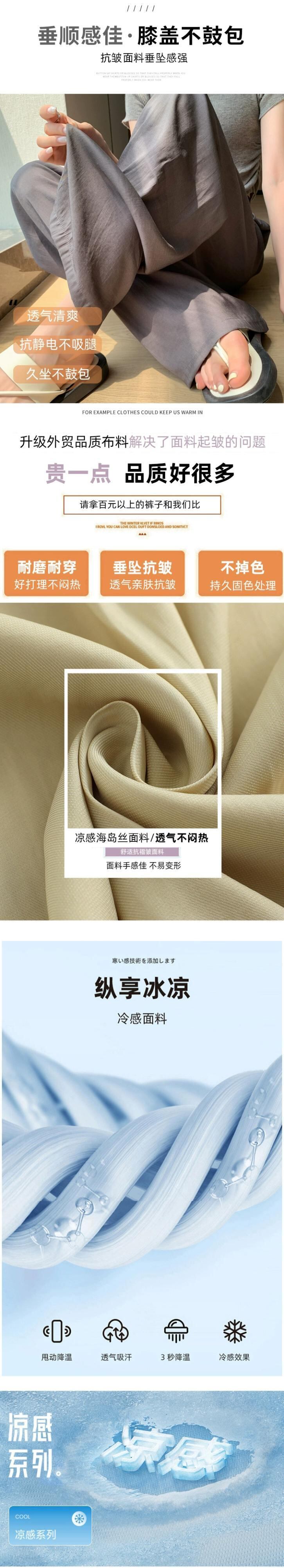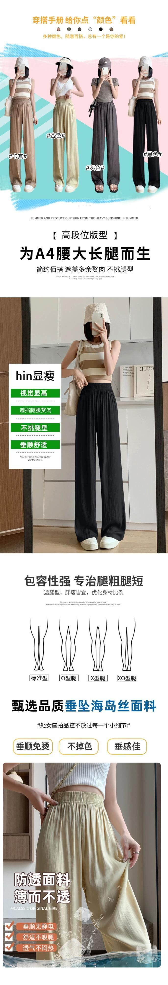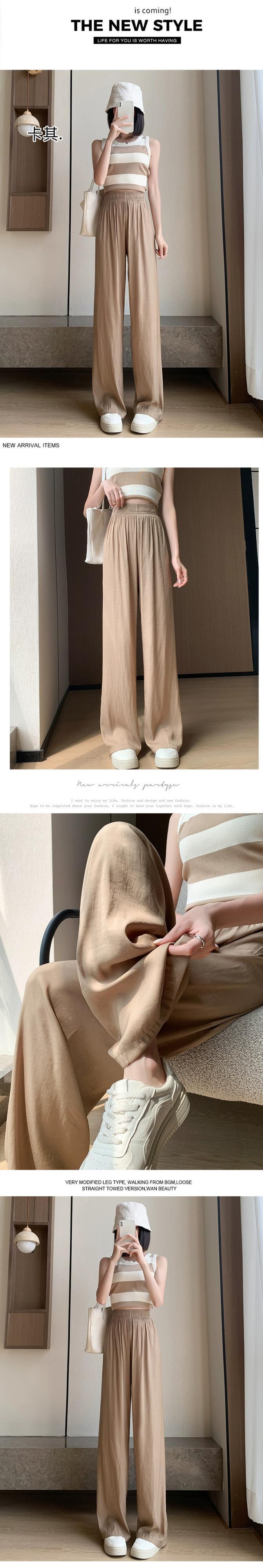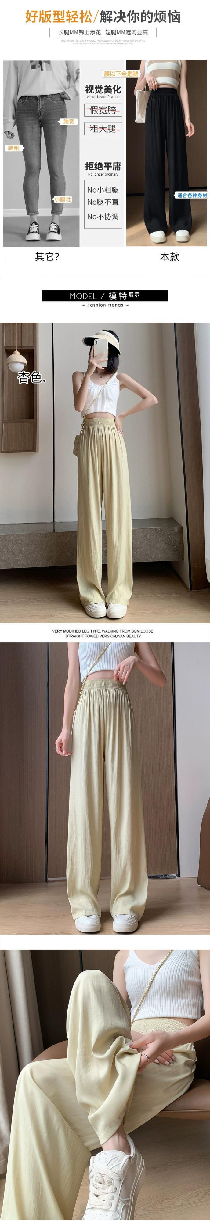 アイスシルクのナローバージョンワイドレッグパンツレディース夏薄セクションハイウエストドレープパンツルーズオールマッチストレートクールカジュアルレディースパンツ ハイウェスト サマー 夏物 7460061319801467 | framboise21