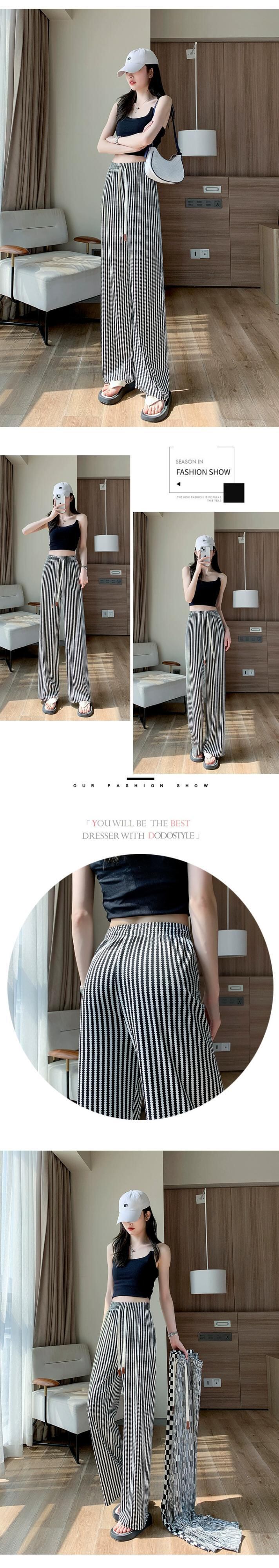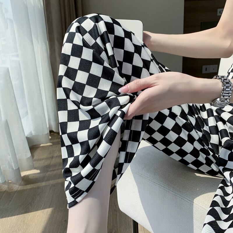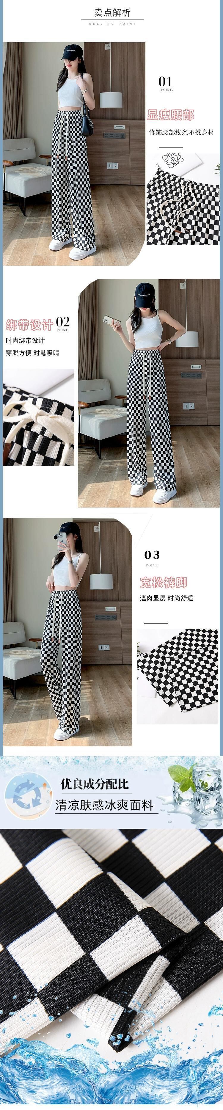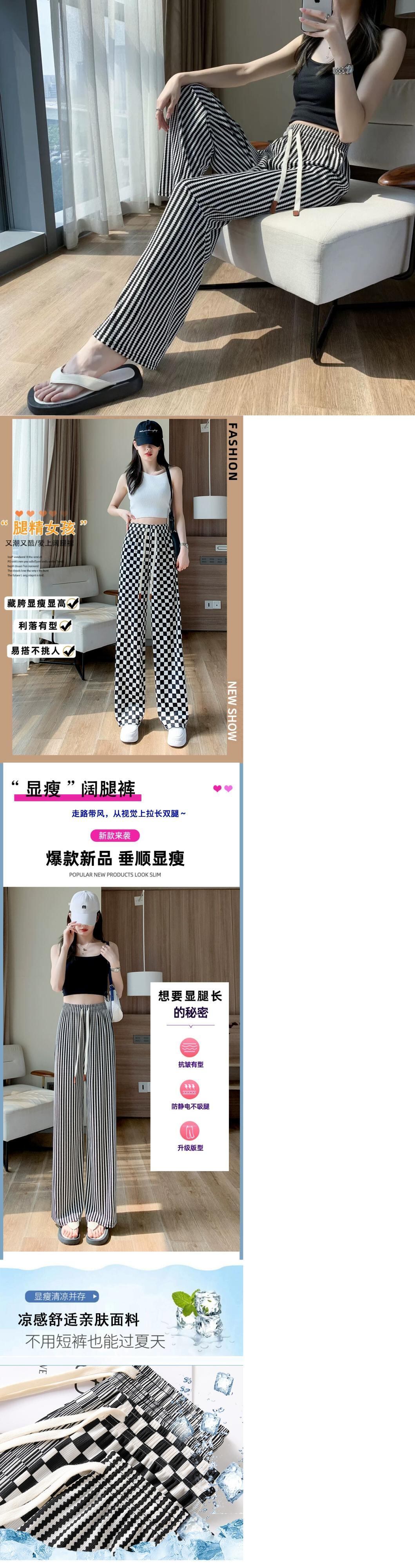 アイスシルクドレープワイドレッグパンツ女性の薄いセクション黒と白の市松パンツルーズスリムハイウエストカジュアル日焼け止めクールパンツ ハイウェスト ホワイト ブラック 7460056743030728 | framboise21