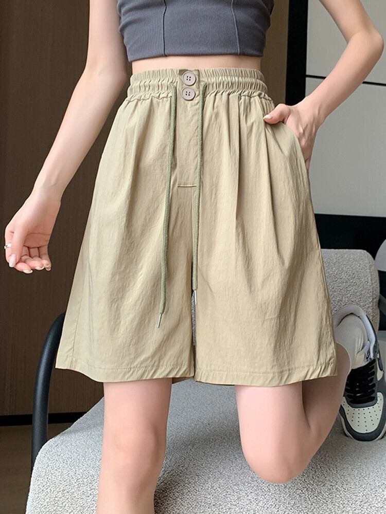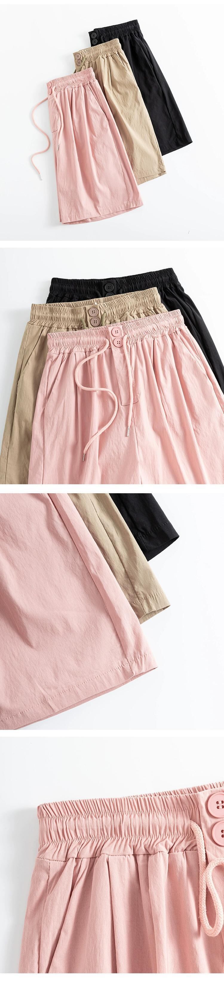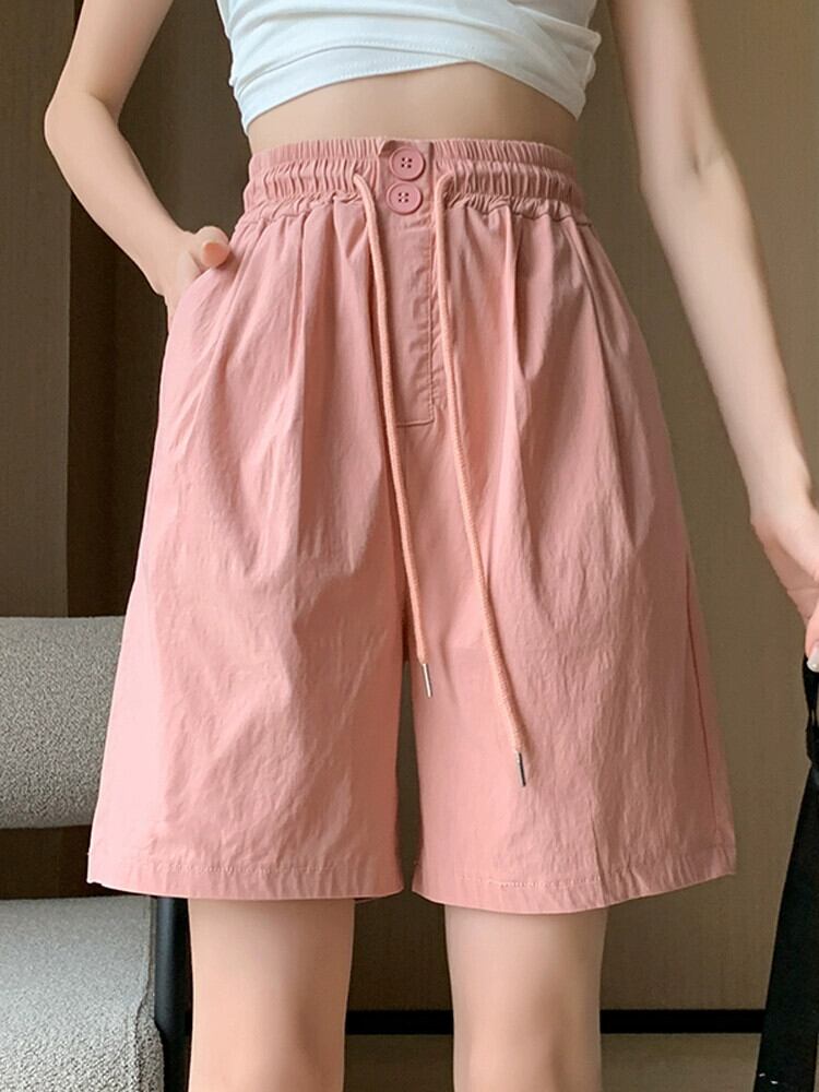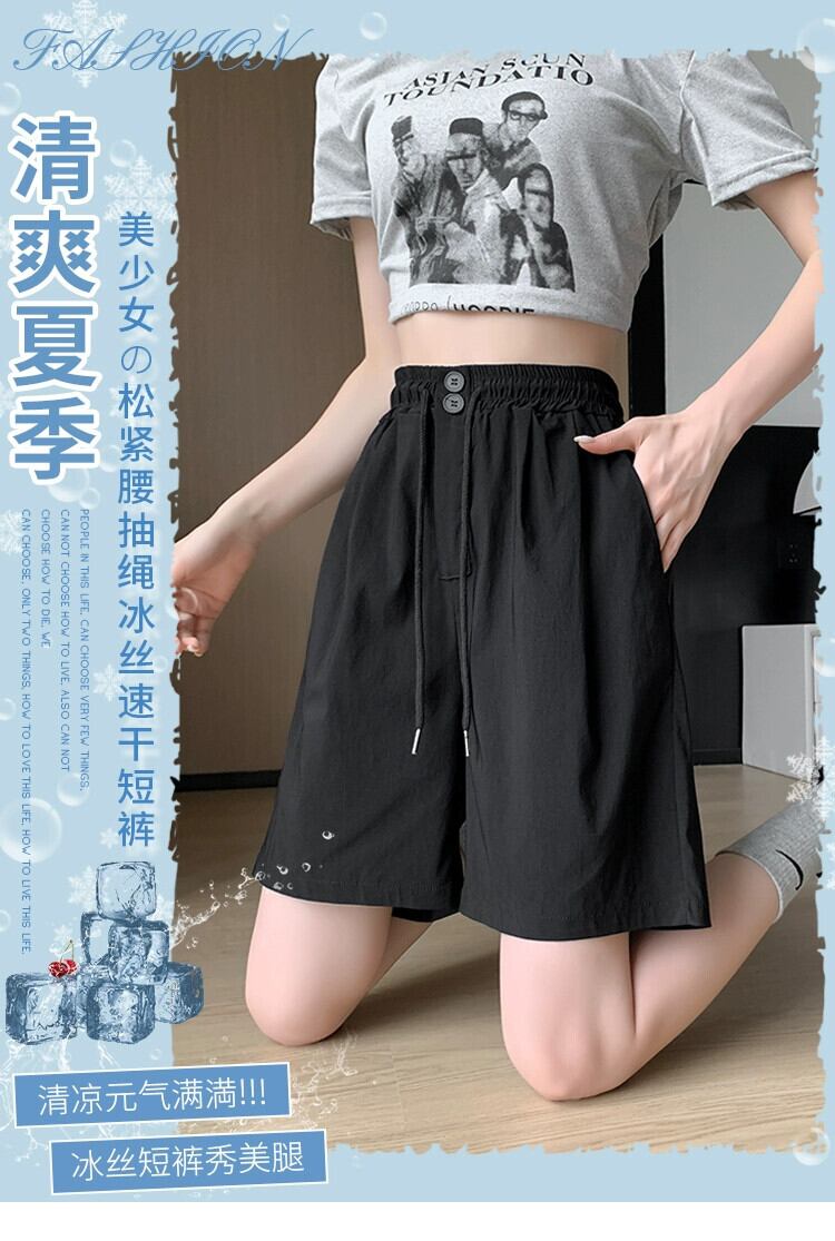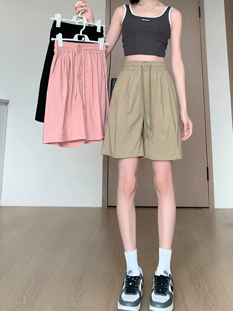 アメリカンスタイルのピンクのアイスシルクオーバーオールショーツ女性の夏のアウタールーズスリムハイウエストストレートチューブ薄肉速乾性スウェットパンツ ハイウェスト サマー 夏物 ブルマー 746009081485867 | framboise21