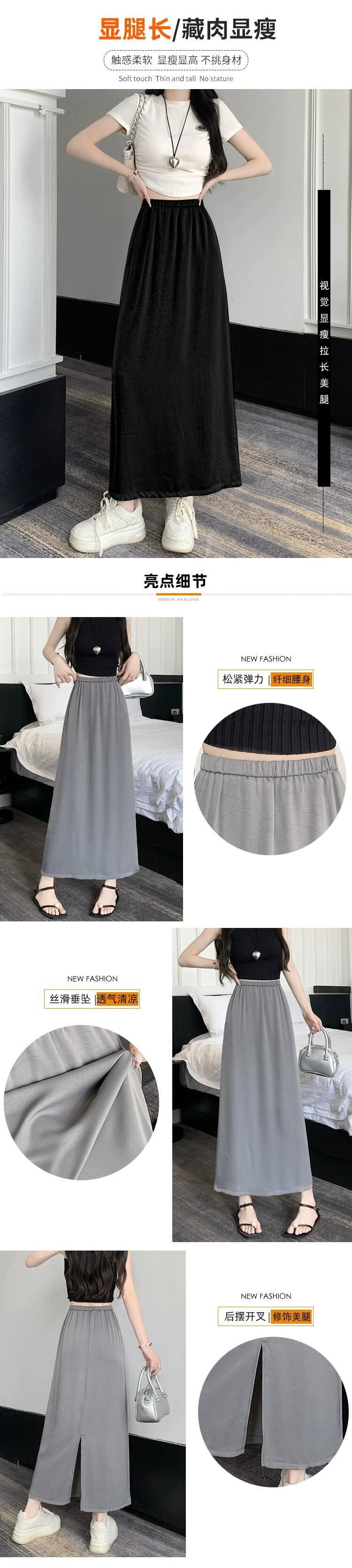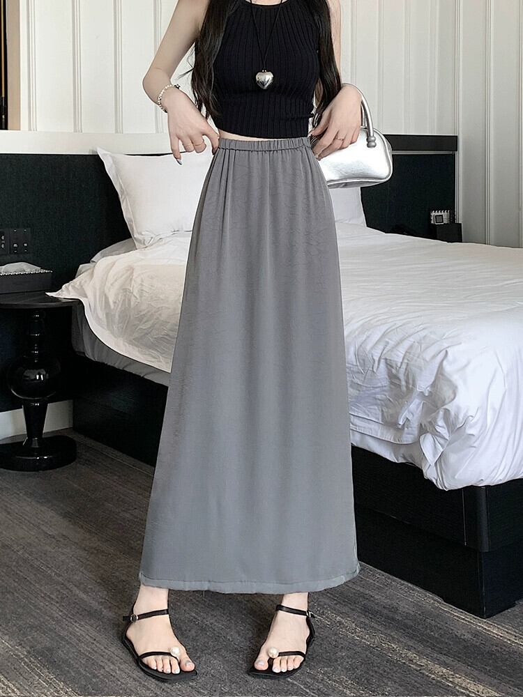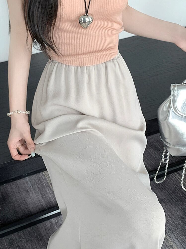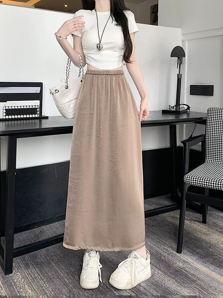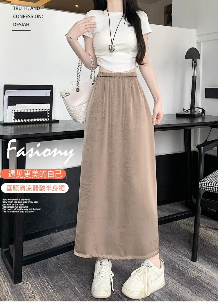 アセテートサテンスカート レディース 2023年夏新作 高級感 細身 ハイウエスト Aライン 細身 後ろスリット ロングスカート ハイウェスト サマー 夏物 7460075751355856 | framboise21