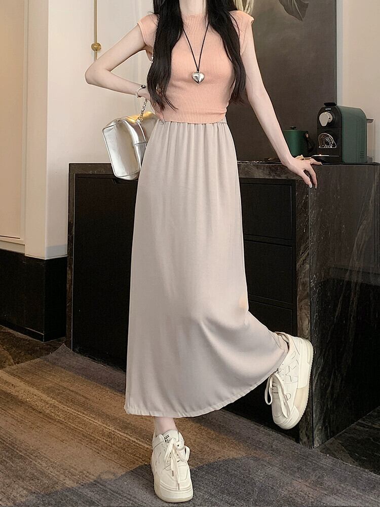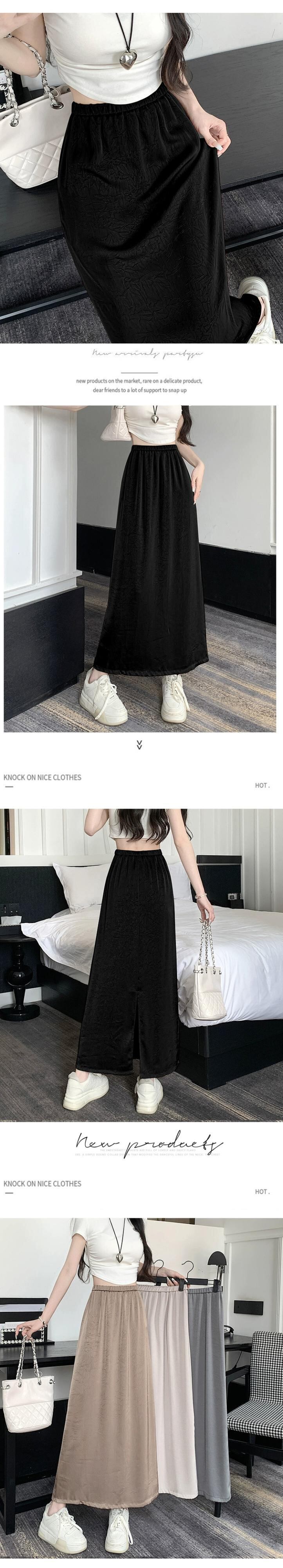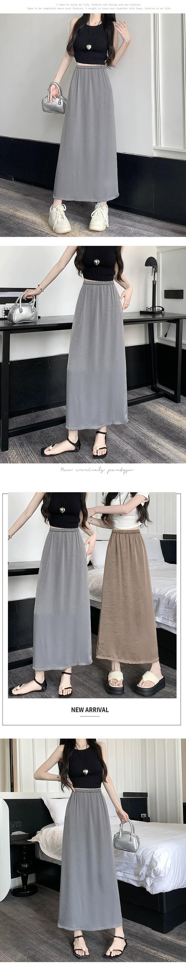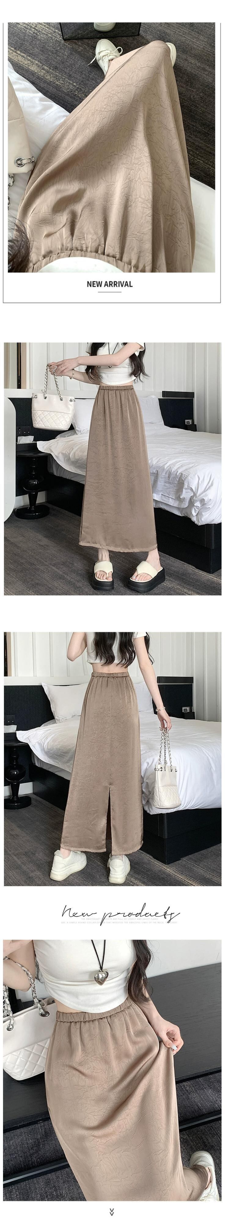 アセテートサテンスカート レディース 2023年夏新作 高級感 細身 ハイウエスト Aライン 細身 後ろスリット ロングスカート ハイウェスト サマー 夏物 7460075751355856 | framboise21