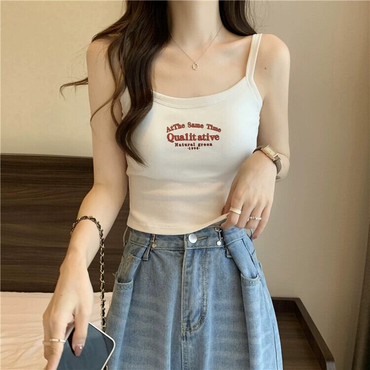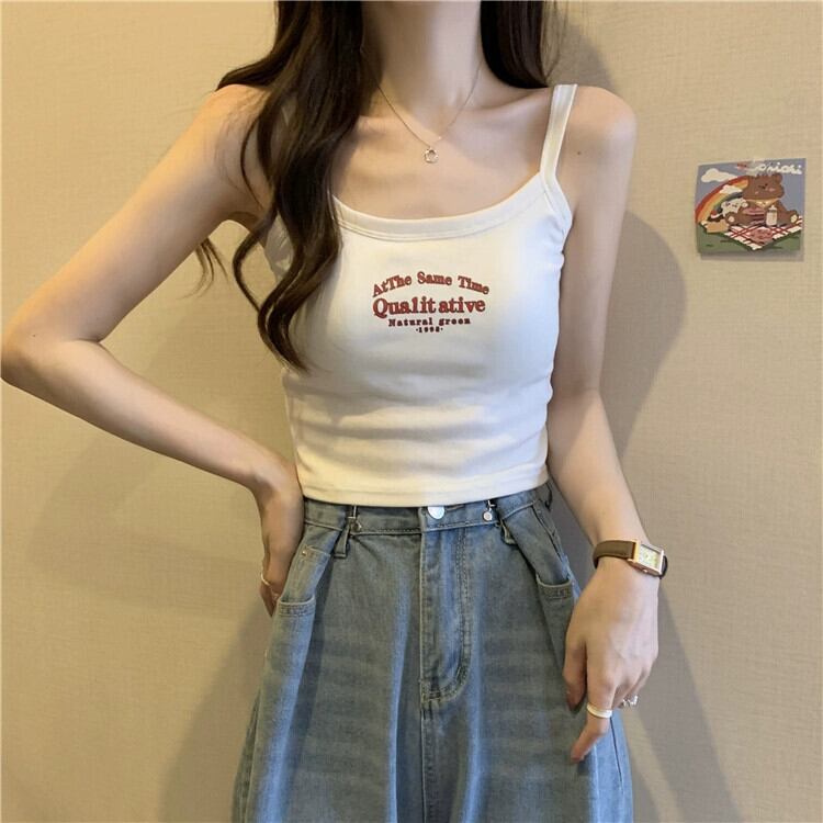 白いブラジャー一体型キャミソール レディース 夏 フランスのデザインセンスが外側と内側に着用する胸パッド付きトップ ホワイト サマー 夏物 7460068577396305 | framboise21
