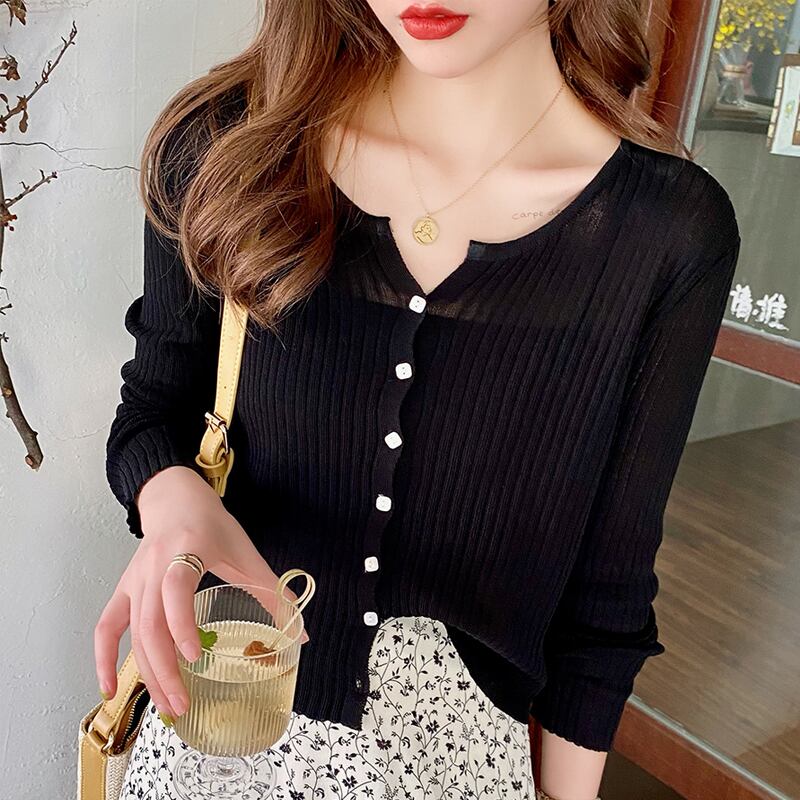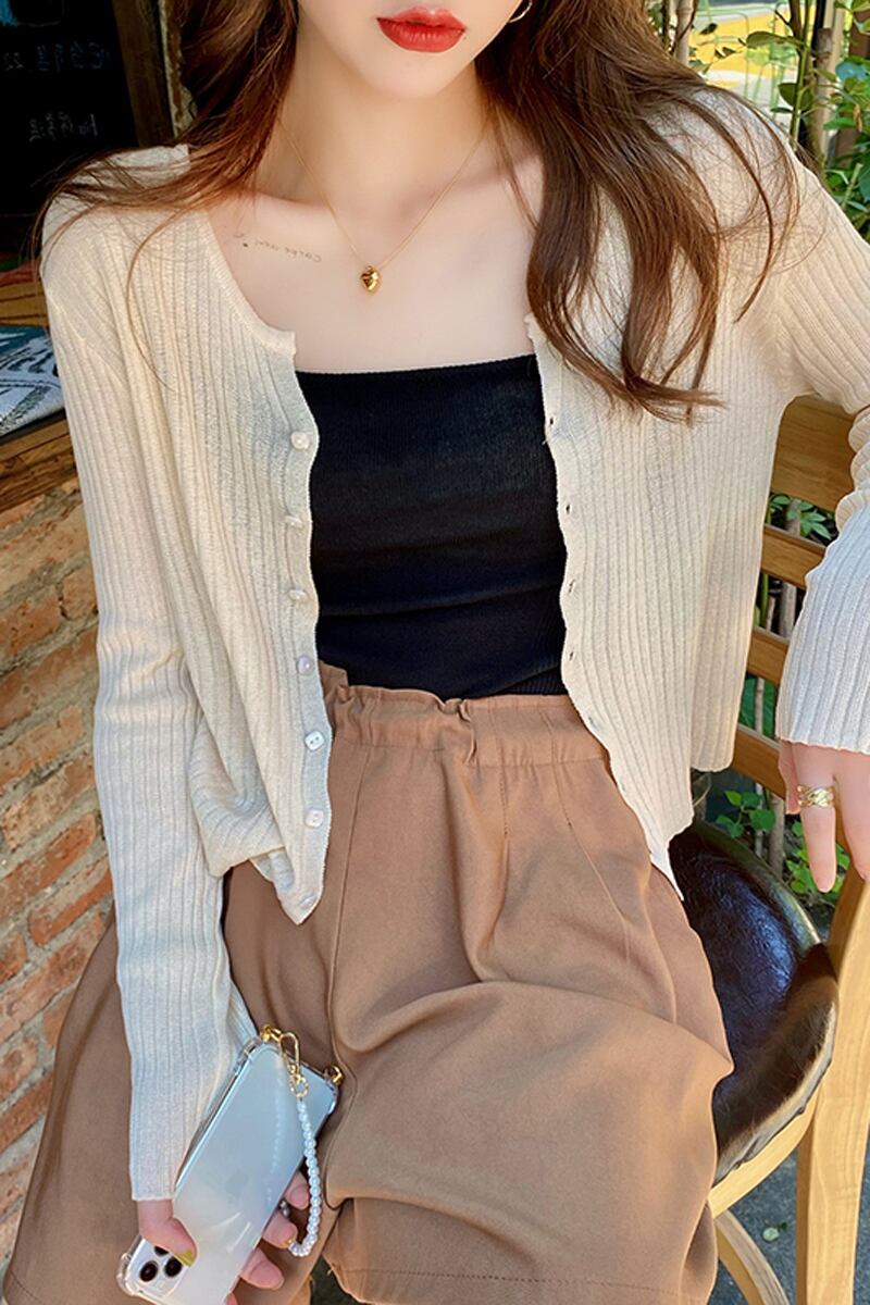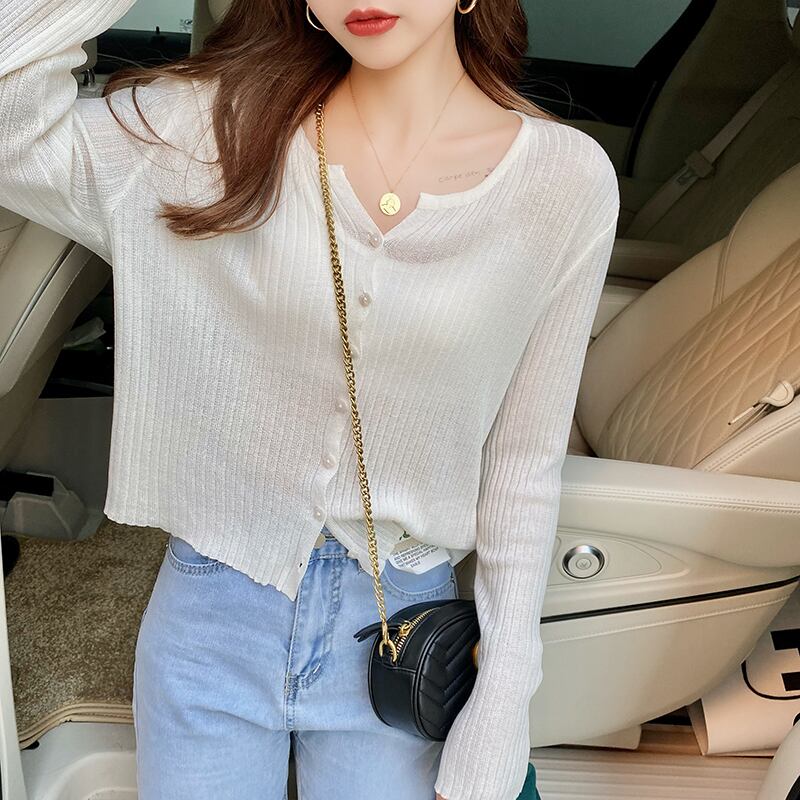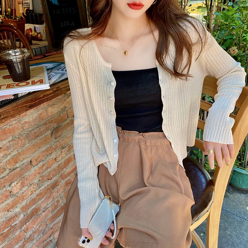 夏のアイスシルクニット日焼け止めカーディガン女性、薄いセクションの小さなチョッキブラウスショート白衣とサスペンダースカート ホワイト サマー 夏物 7460072550432947 | framboise21