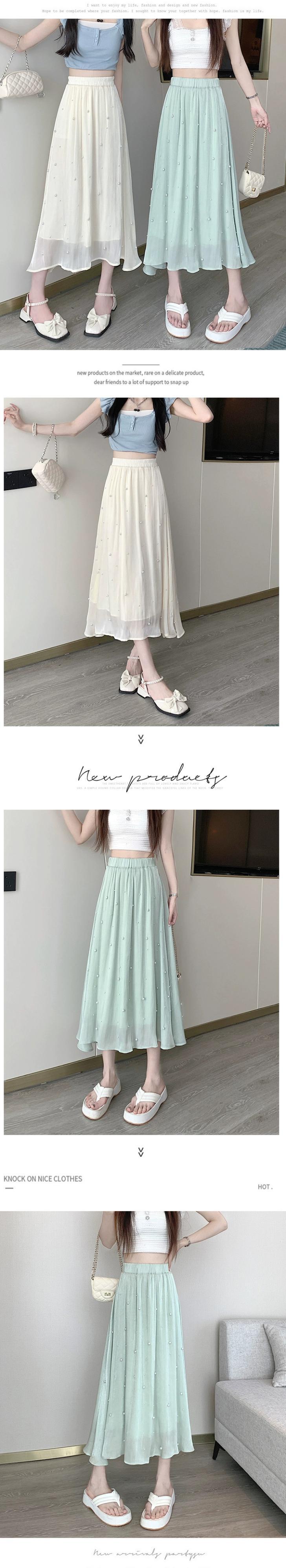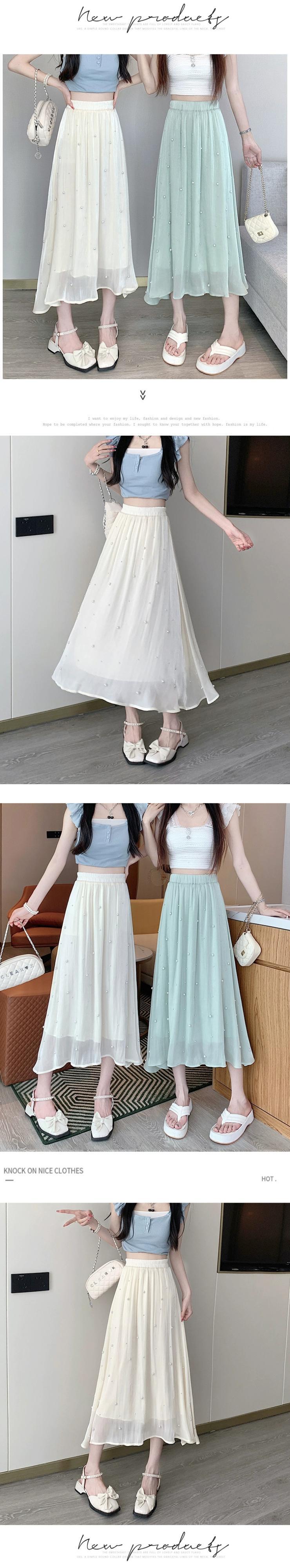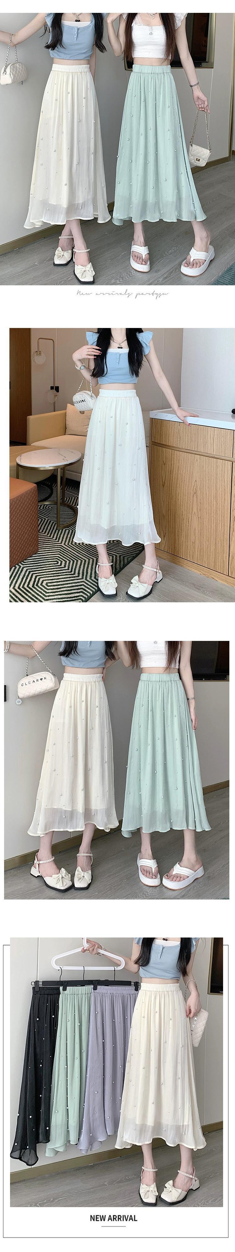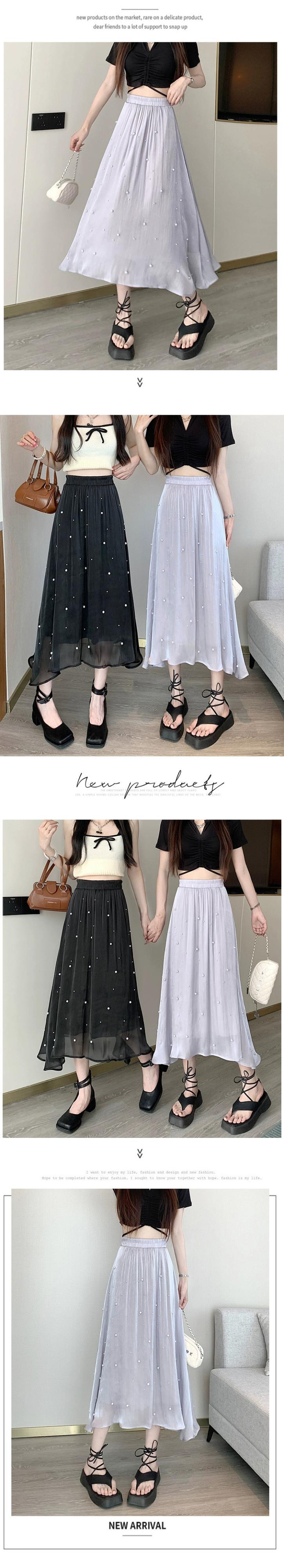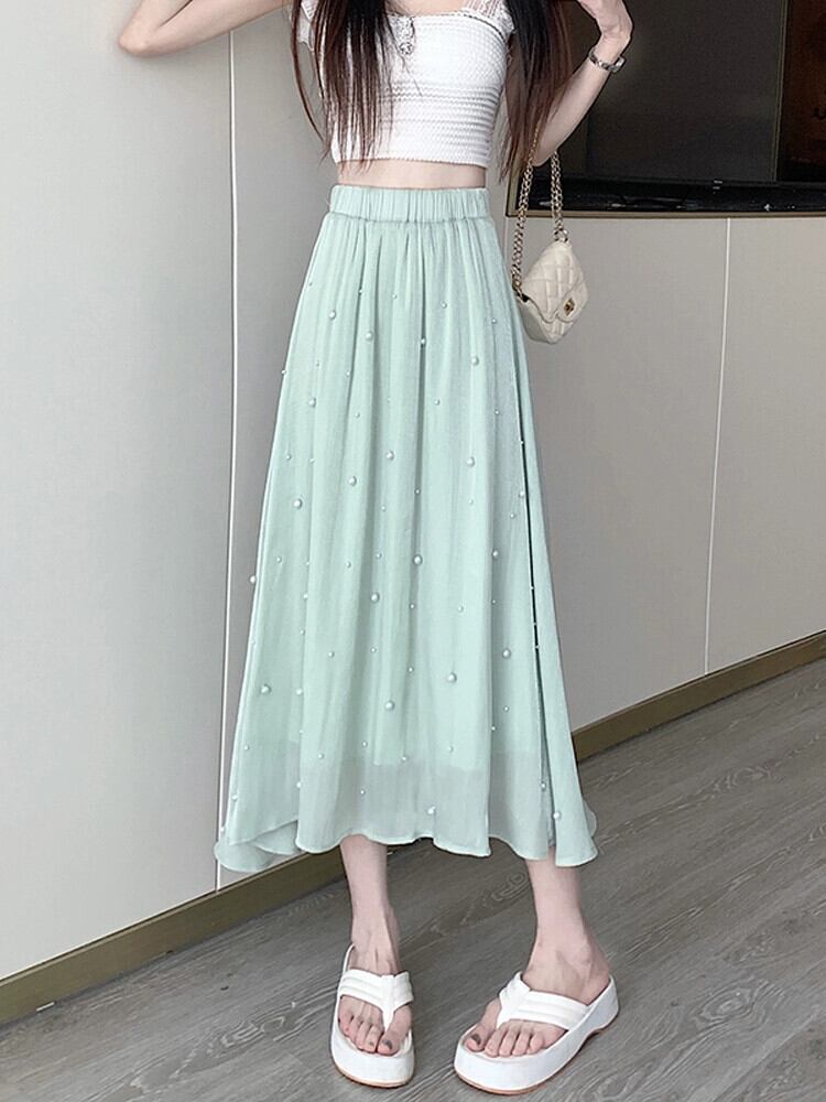 ブラックメッシュスカートレディース夏のハイエンドデザインビーズガーゼスカートハイウエストスリムミドル丈Aラインスカート ハイウェスト サマー 夏物 7460023090646050 | framboise21