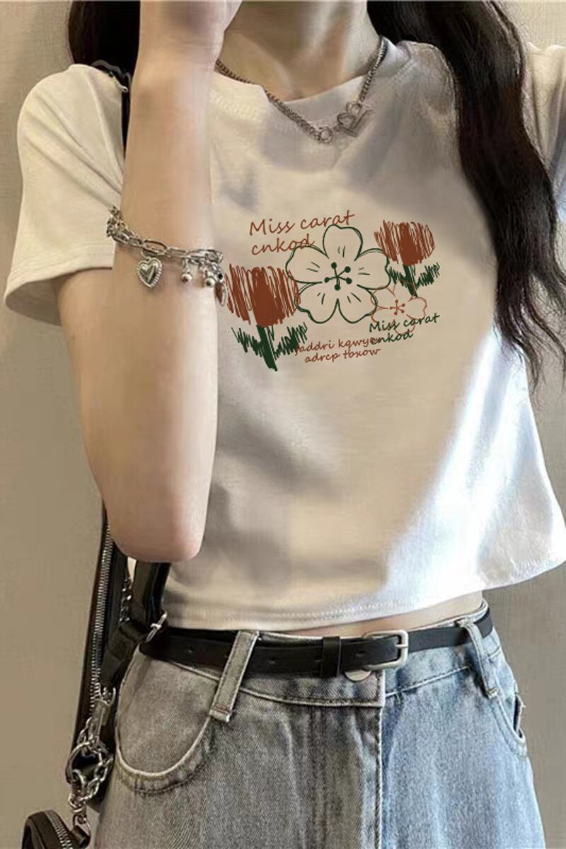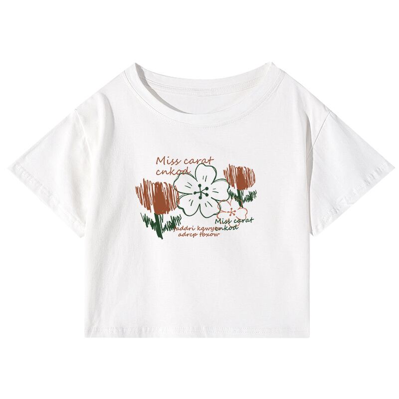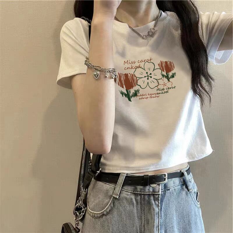 学生純綿ラウンドネック半袖 tシャツ女性の夏 bm デザインセンス自己修養へそショートショルダートップイン コットン サマー 夏物 Oネック ピュア 7460075560588868 | framboise21