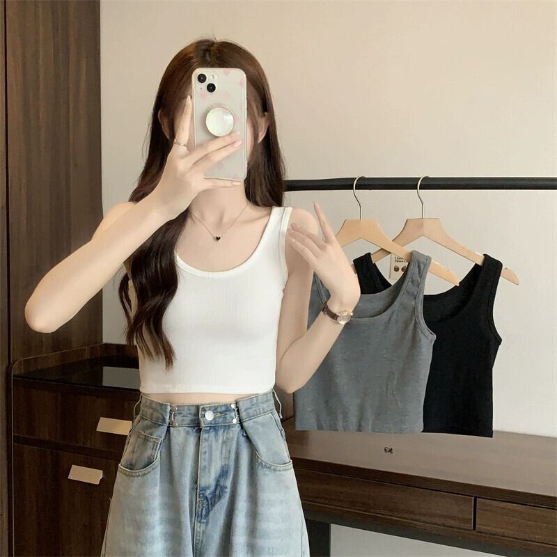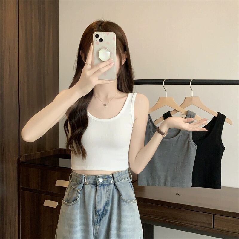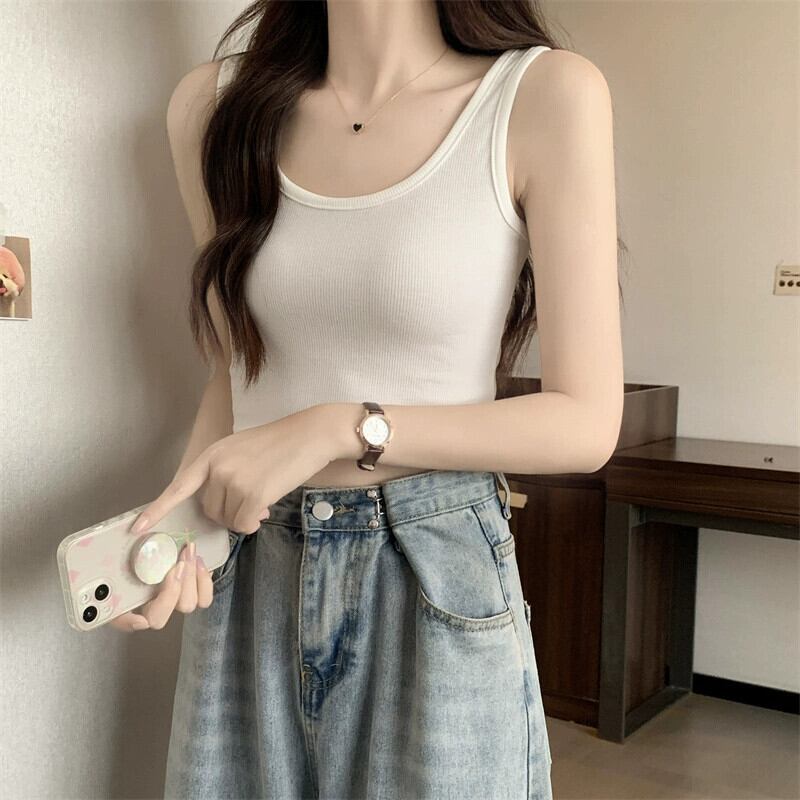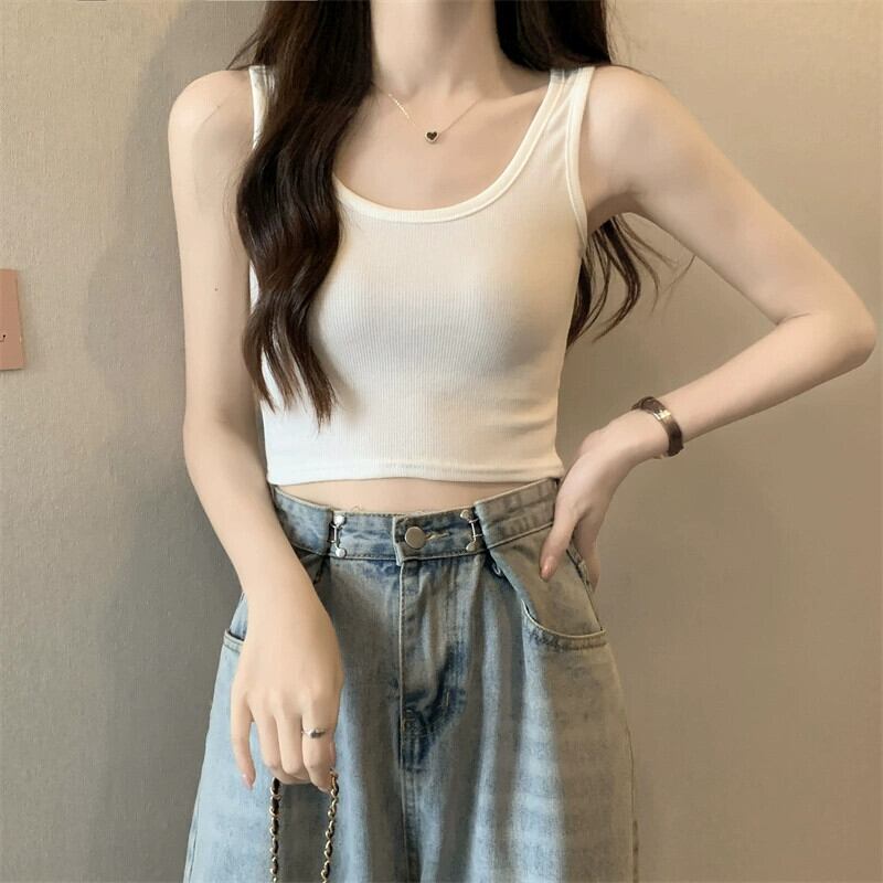 白糸スポーツキャミソールベスト女性の夏スリムフィット内側と外側の摩耗ショートノースリーブボトムトップ ホワイト 半袖 ハーフスリーブ サマー 夏物 746009871874019 | framboise21