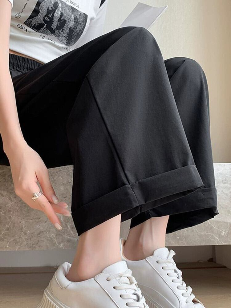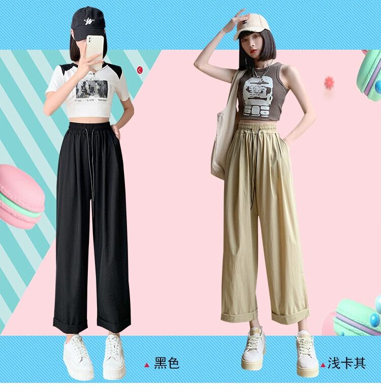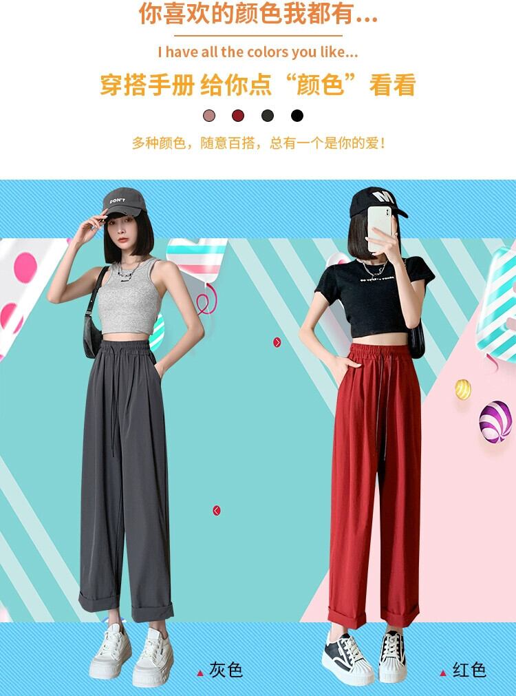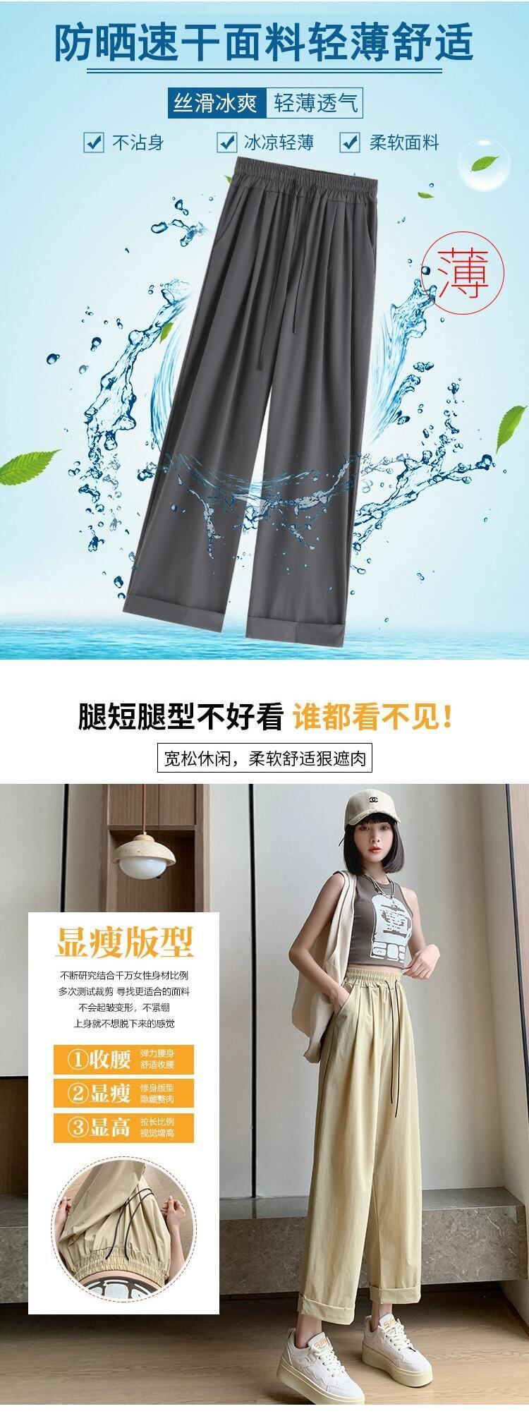 アイスシルク 9 ポイント ワイドレッグ パンツ レディース 夏 薄手 ストレートレッグ パンツ 小さい ルーズ オールマッチ 速乾性 ハイウエスト カジュアル パンツ サマー 夏物 7460096870709715 | framboise21