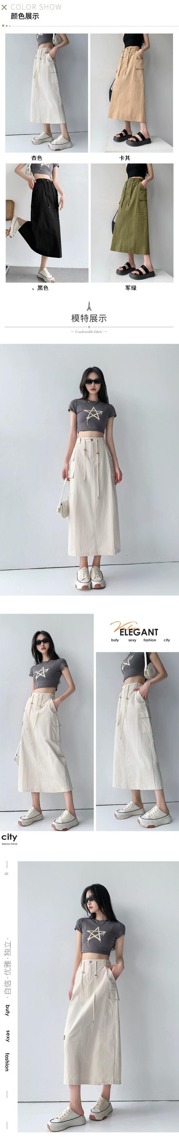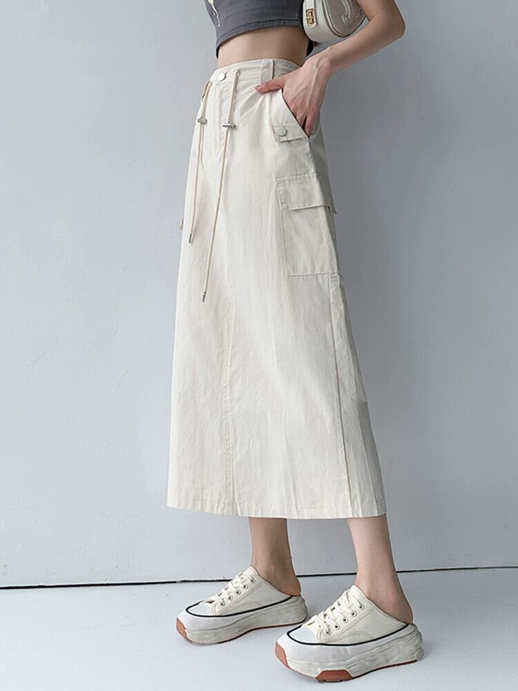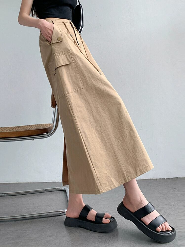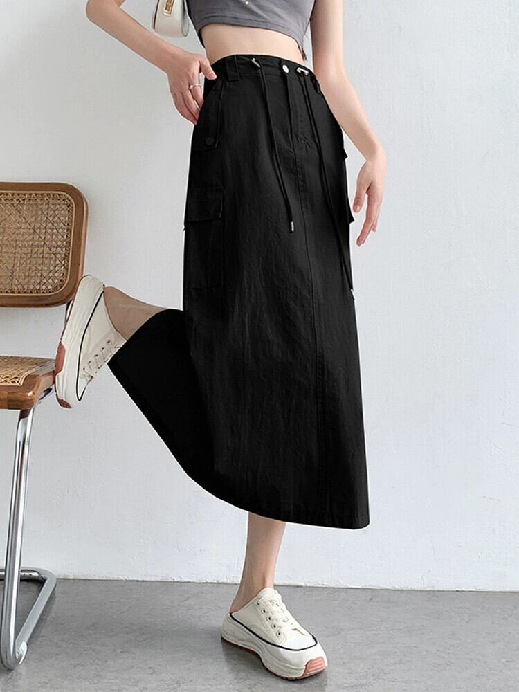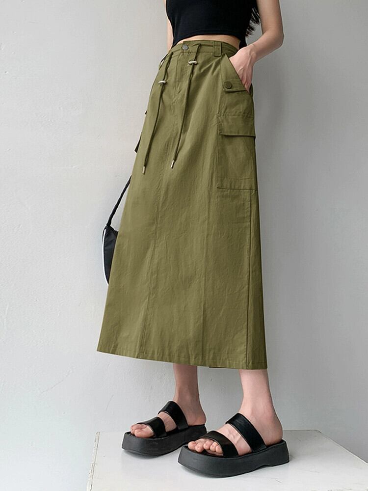 アメリカン ツーリング スカート レディース 夏 レトロ 小柄な男性が細くてオールマッチ アーミー グリーン ドローストリング ハイウエスト A ライン ロング スカート ハイウェスト サマー 夏物 Aライン 7460028793435459 | framboise21