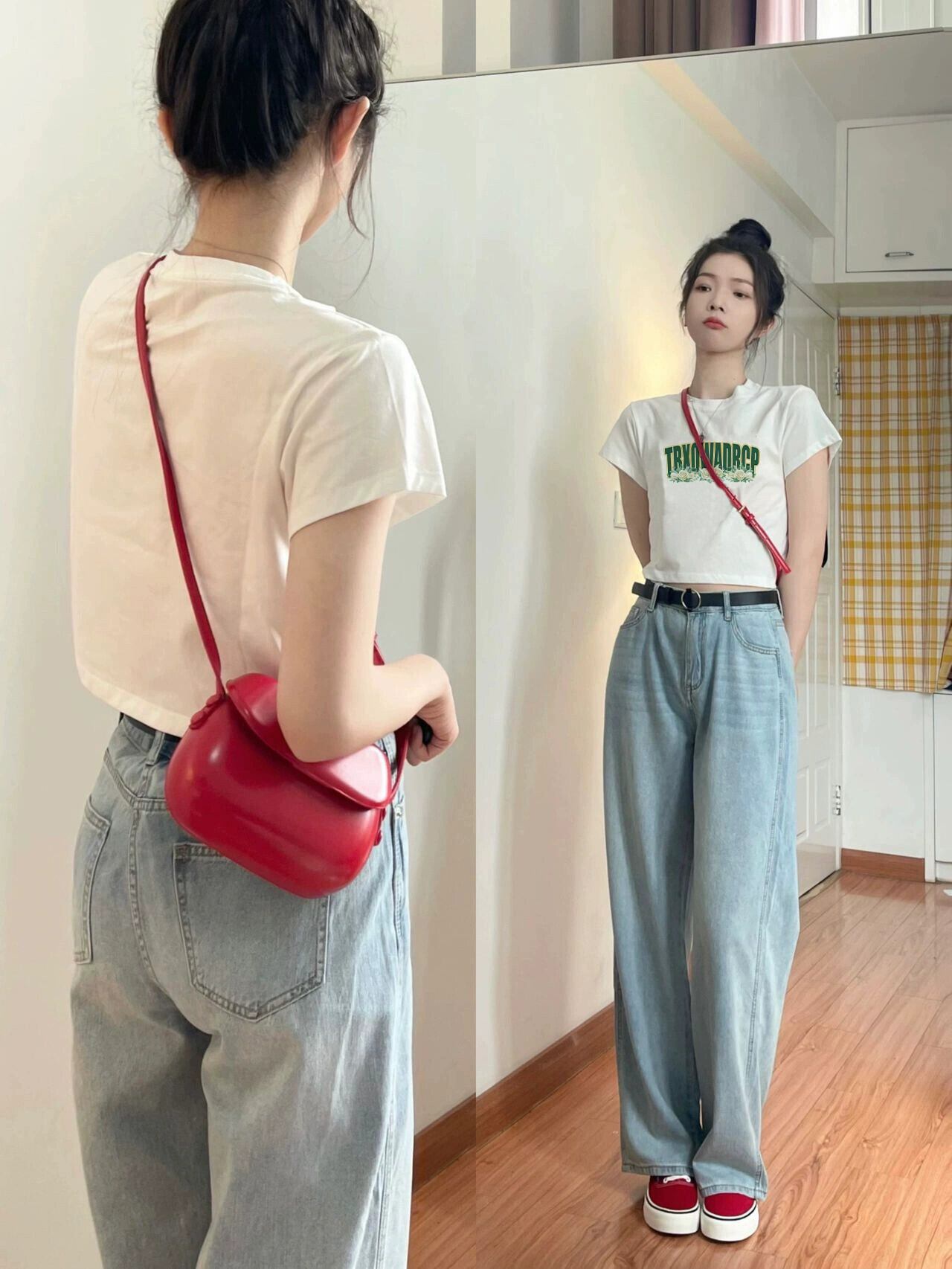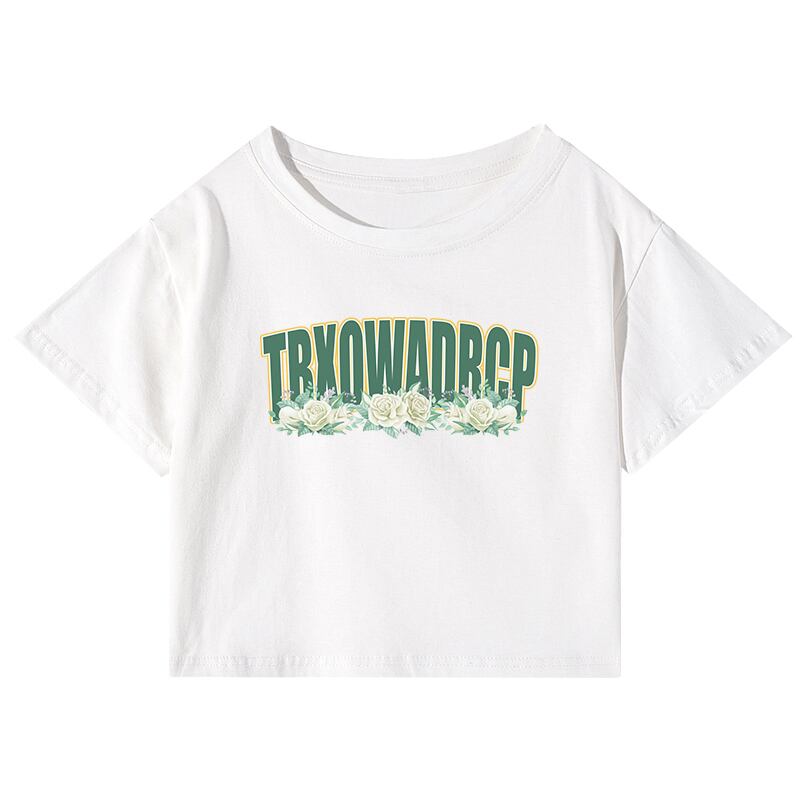 白いフロントショルダーハイウエスト半袖Tシャツの女性の夏のデザイン自己修養の感覚オールマッチレタープリントショートコットントップ ハイウェスト ホワイト サマー 夏物 7460032902064283 | framboise21