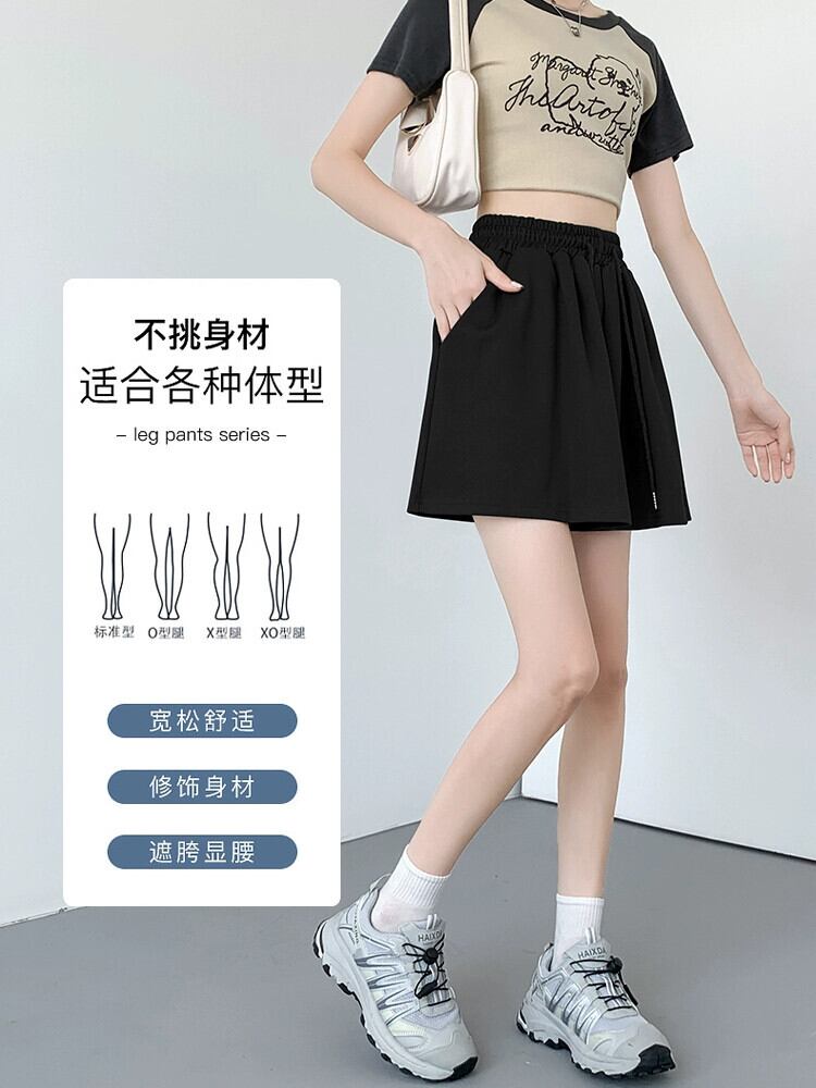 スポーツカジュアルショートパンツレディース夏黒ワイドレッグバレエスタイルキュロットゆったり薄手Aラインハイウエストパンツ ブラック サマー 夏物 ショーツ ブルマー 7460048088897775 | framboise21