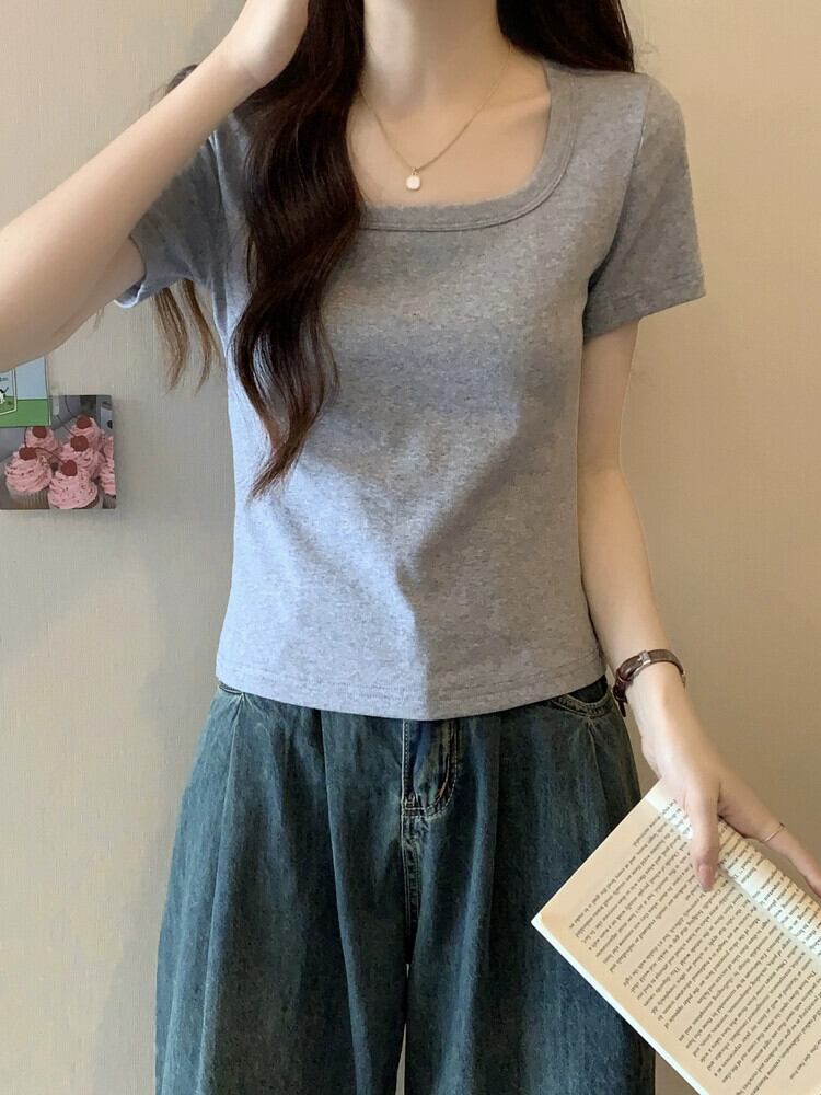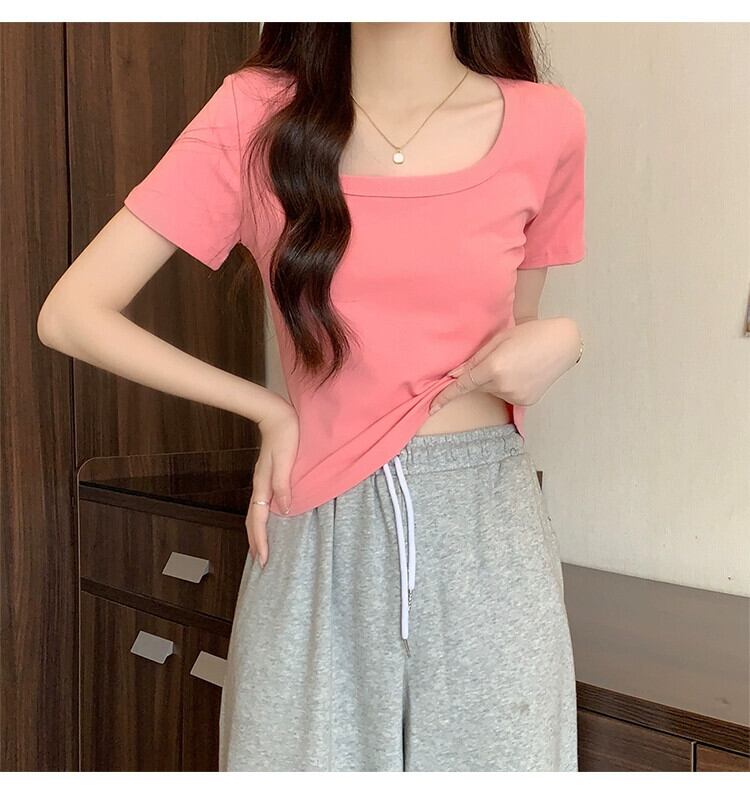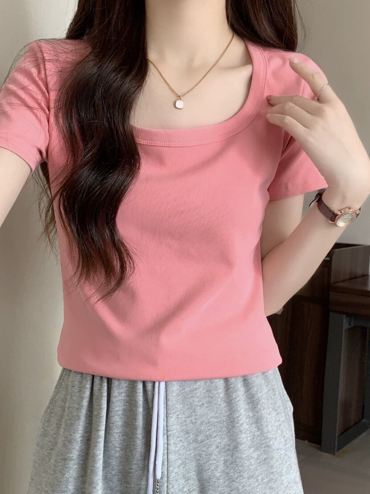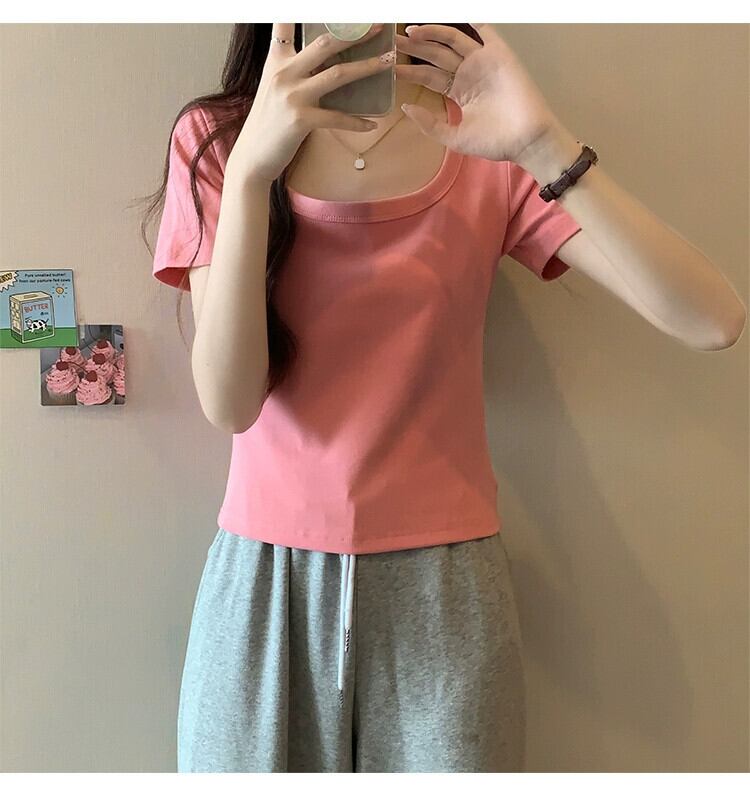 ホワイトコットン半袖Tシャツレディース2023年新作夏ニッチデザイン自己修養の感覚と薄いショートスクエアカラートップ サマー 夏物 スクウェア 7460059207642263 | framboise21