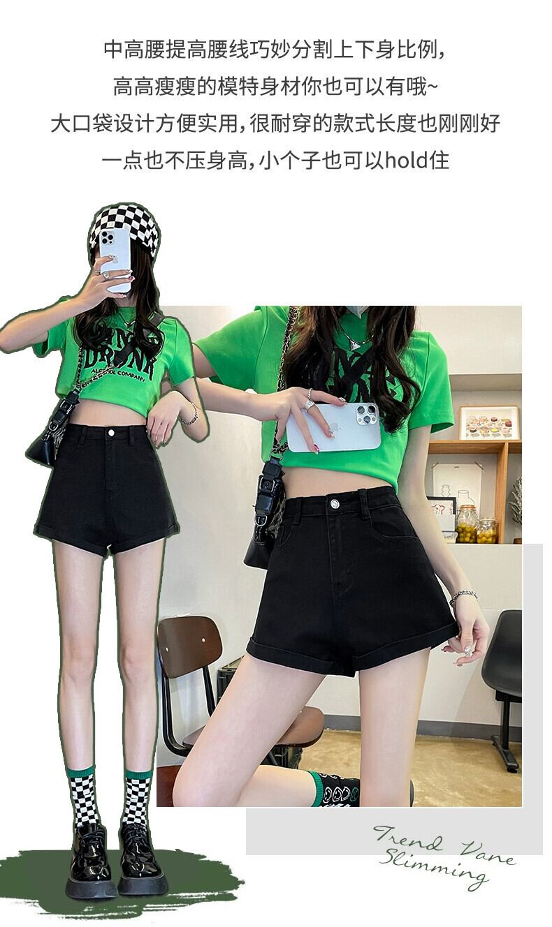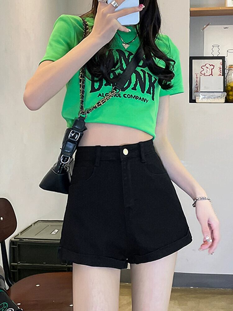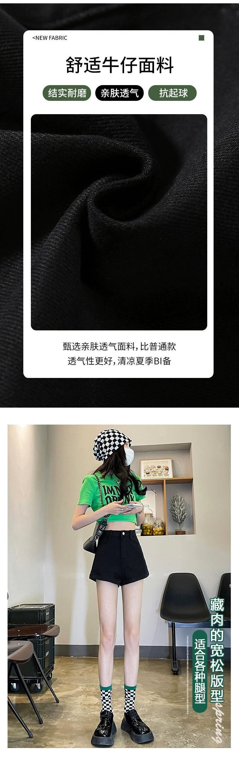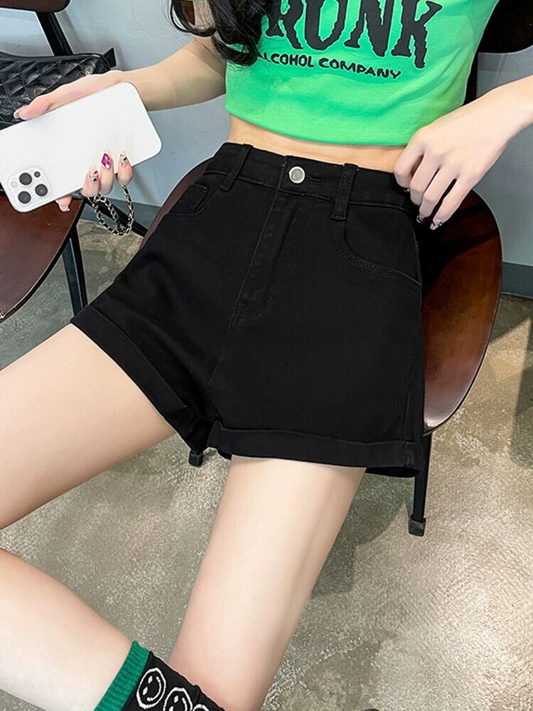 黒のAラインデニムショートパンツレディース夏アウターハイウエストパンツ細く見え脚見せロングゆったり薄手ワイドパンツ ブラック サマー 夏物 ショーツ ブルマー 7460026694203265 | framboise21