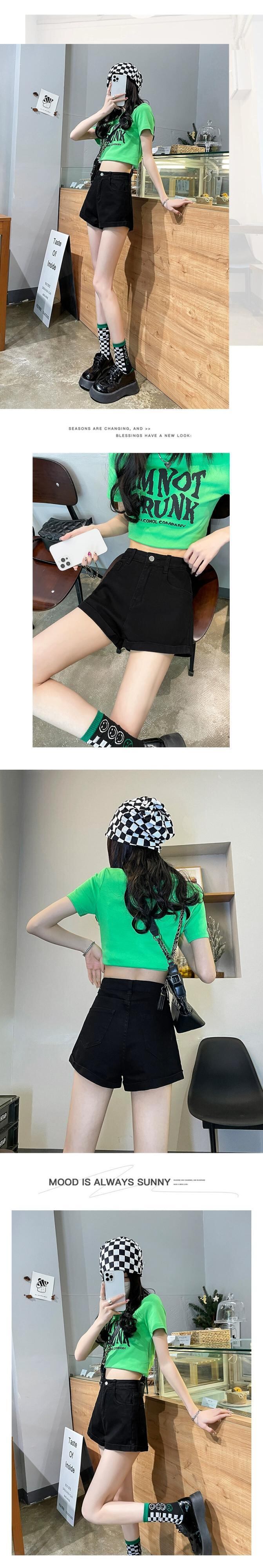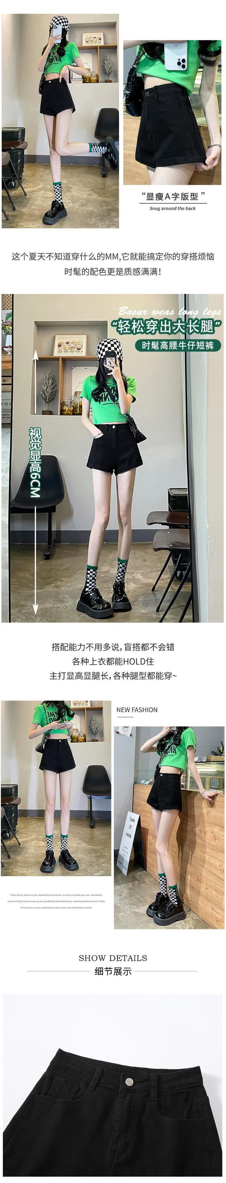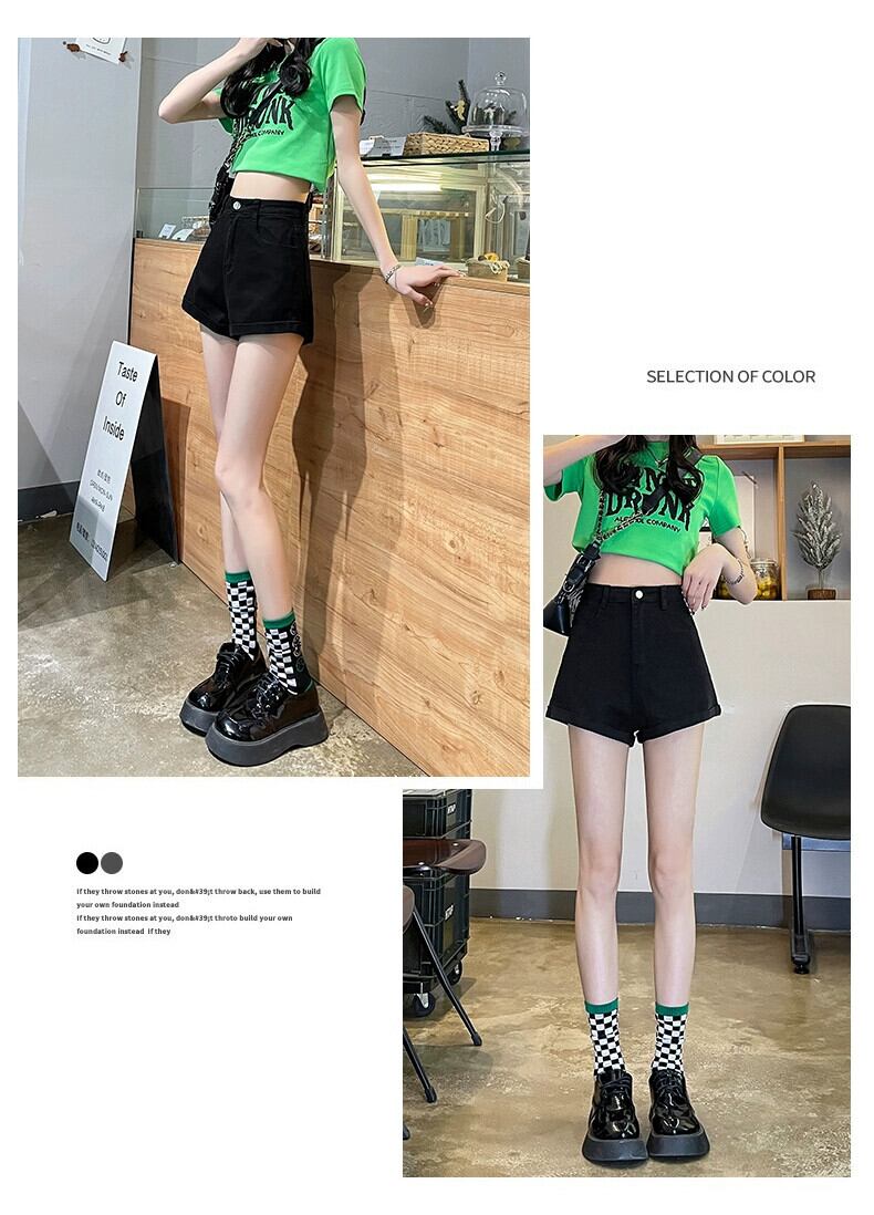 黒のAラインデニムショートパンツレディース夏アウターハイウエストパンツ細く見え脚見せロングゆったり薄手ワイドパンツ ブラック サマー 夏物 ショーツ ブルマー 7460026694203265 | framboise21