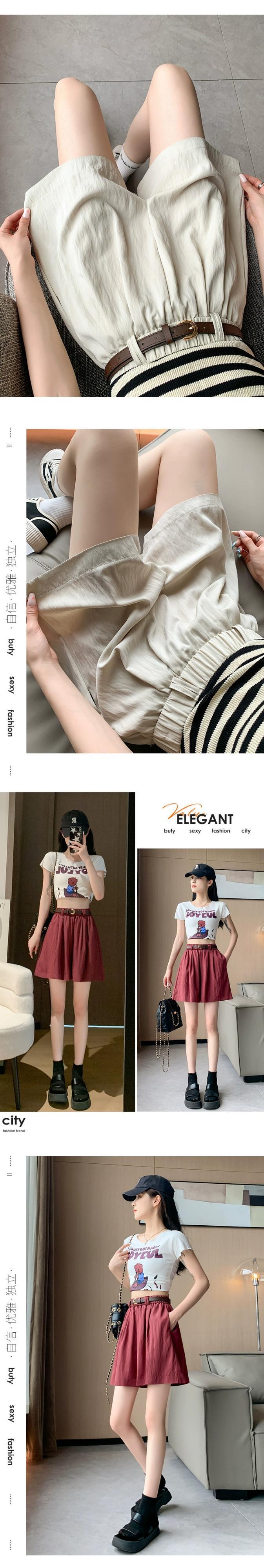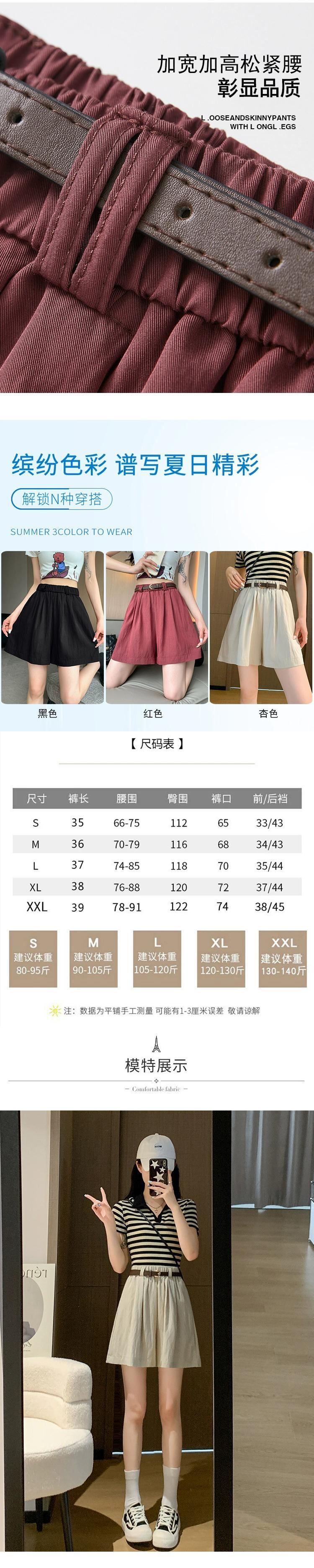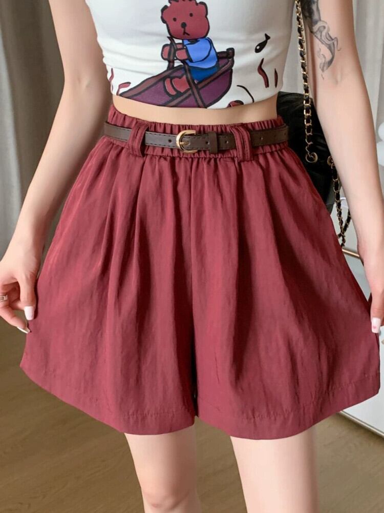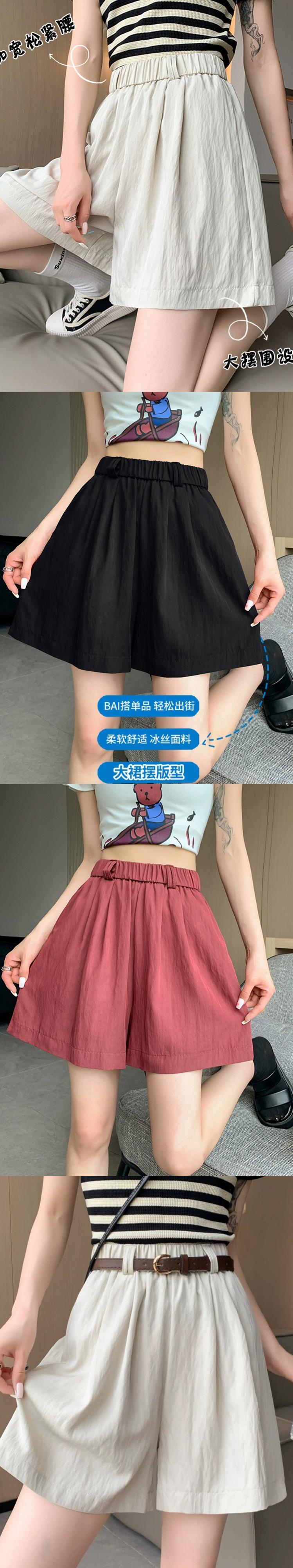 夏のプリーツの薄いアイスシルクカジュアルショートパンツ、小さくてルーズで薄い、ワイドレッグAラインハイウエストパンツ サマー 夏物 ショーツ ブルマー 7460079640051981 | framboise21