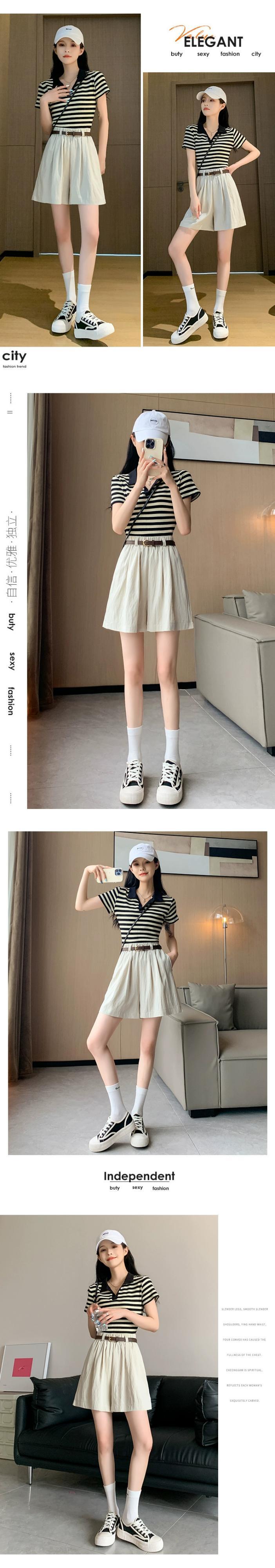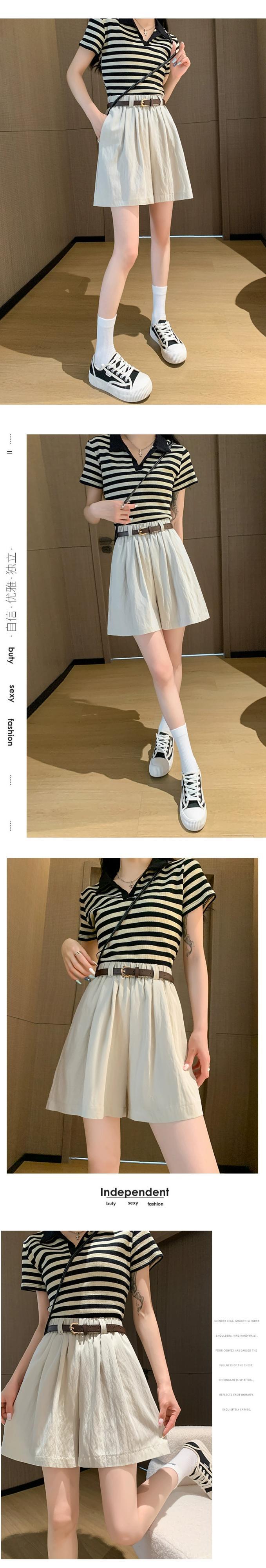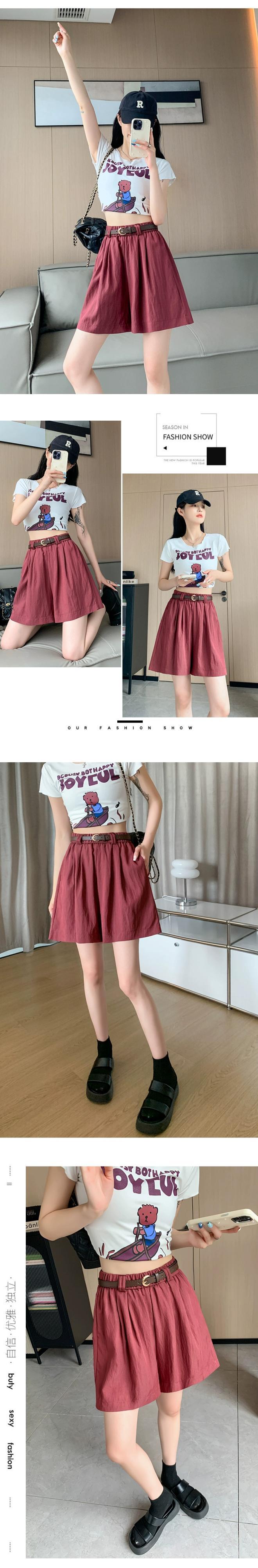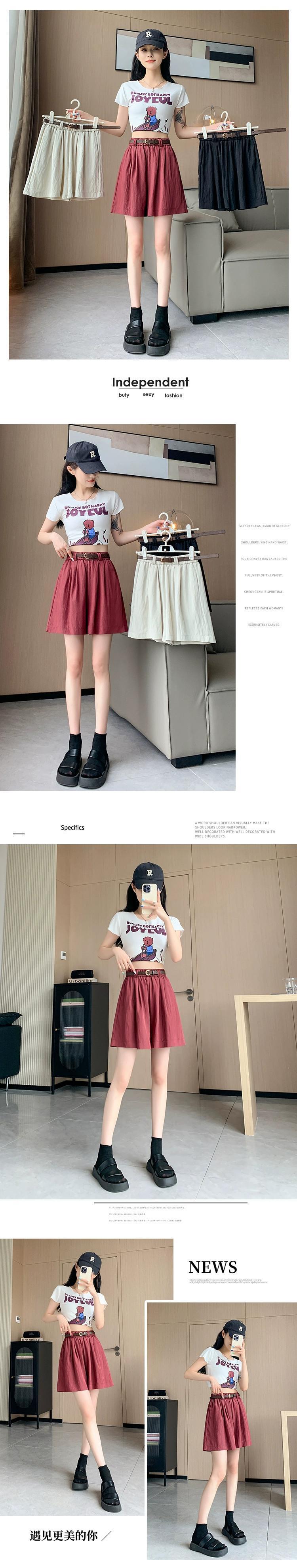 夏のプリーツの薄いアイスシルクカジュアルショートパンツ、小さくてルーズで薄い、ワイドレッグAラインハイウエストパンツ サマー 夏物 ショーツ ブルマー 7460079640051981 | framboise21