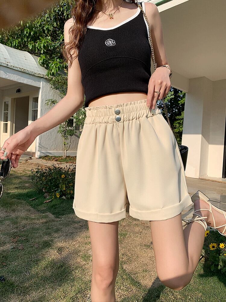 カーキ Aライン スーツ ショートパンツ レディース 夏 薄手 ゆったり ワイドパンツ アウター カジュアル スリム ハイウエスト パンツ サマー 夏物 ショーツ ブルマー 7460039977498808 | framboise21