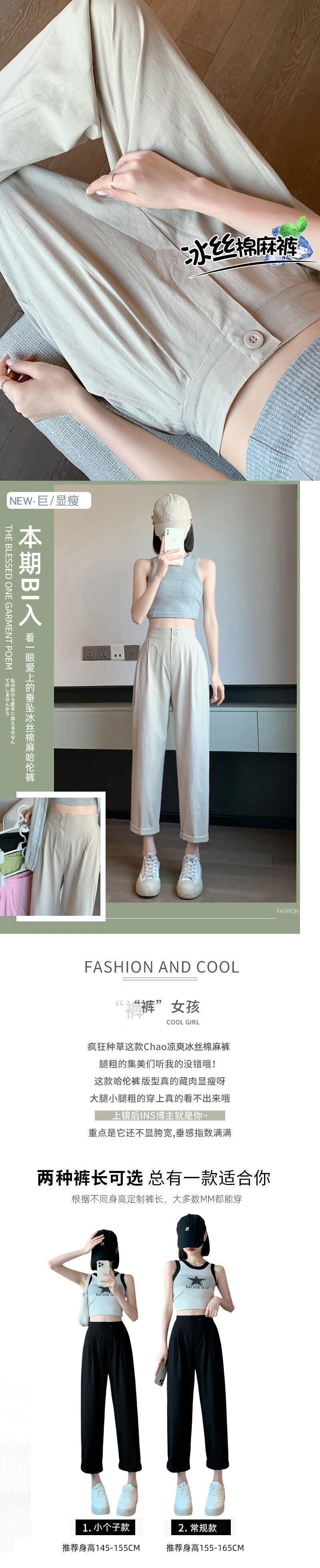 アイスシルクコットンとリネンのワイドレッグパンツ女性の夏薄い9点パンツ小さなルーズスリムハイウエストカジュアルパンツ ハイウェスト サマー 夏物 7460021845838966 | framboise21