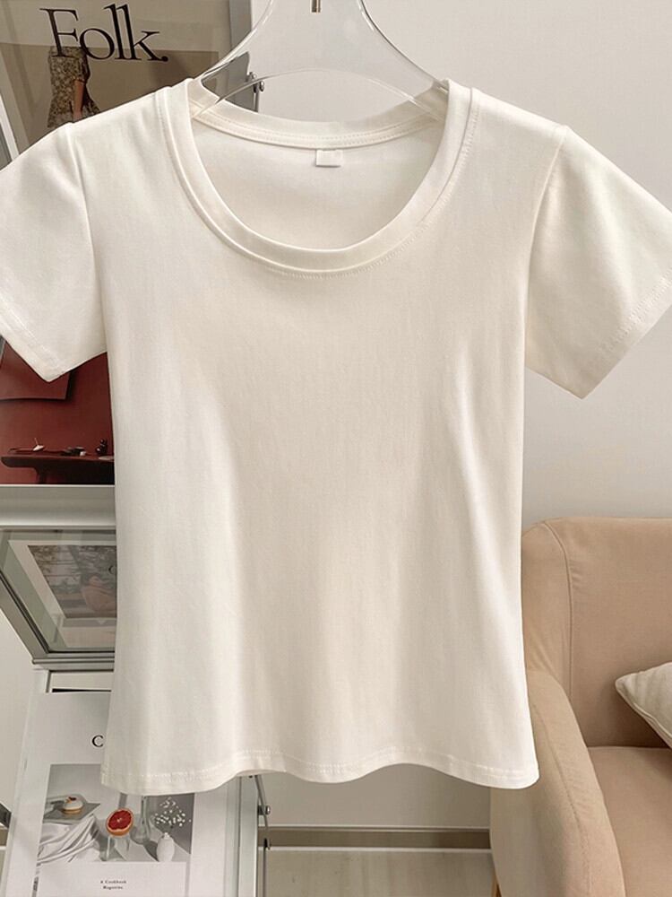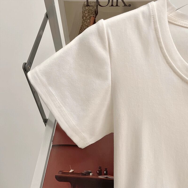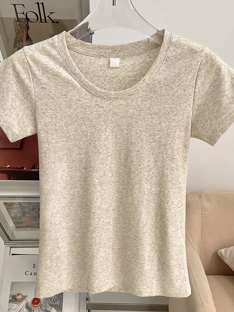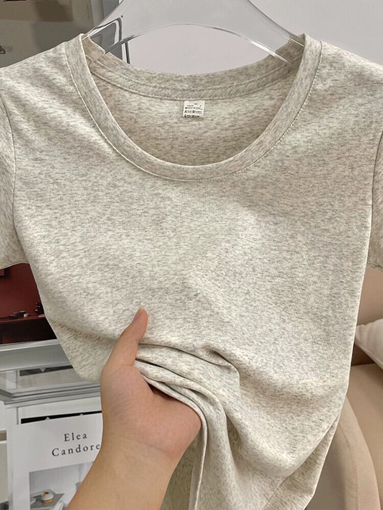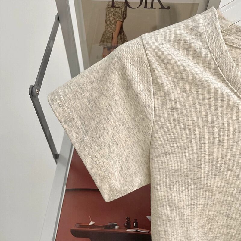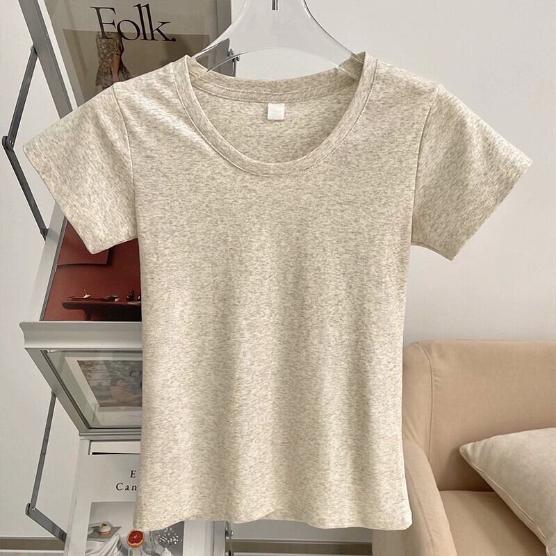 グレーコットンラウンドネック半袖Tシャツレディース夏ルーズオールマッチバージョンの肩は薄くて小さいショートトップス サマー 夏物 Oネック 7460073191230198 | framboise21
