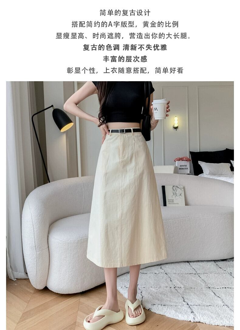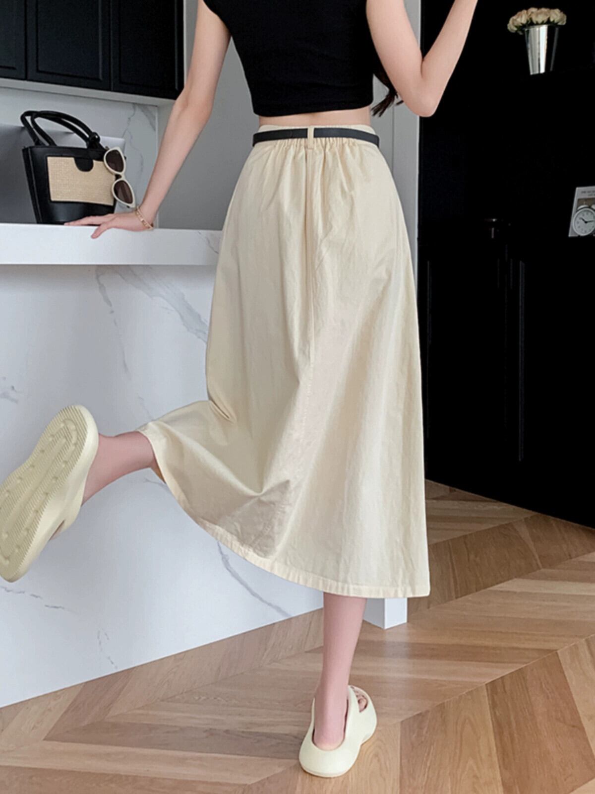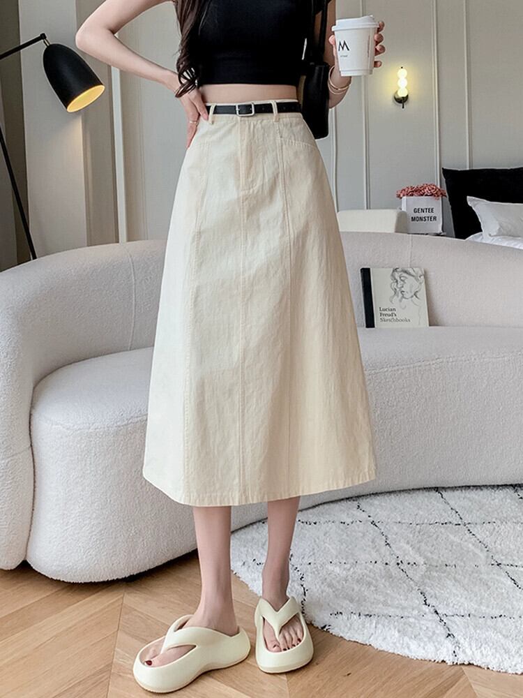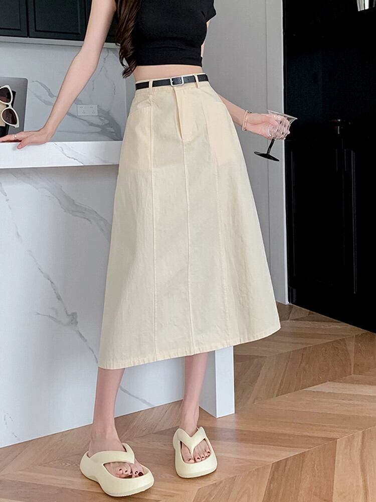 アプリコットコットンとリネンスカートの女性の 2023 夏の新作ルーズカジュアルミドル丈スカートハイウエスト痩身 A ラインスカート ハイウェスト サマー 夏物 Aライン 7460052375737408 | framboise21