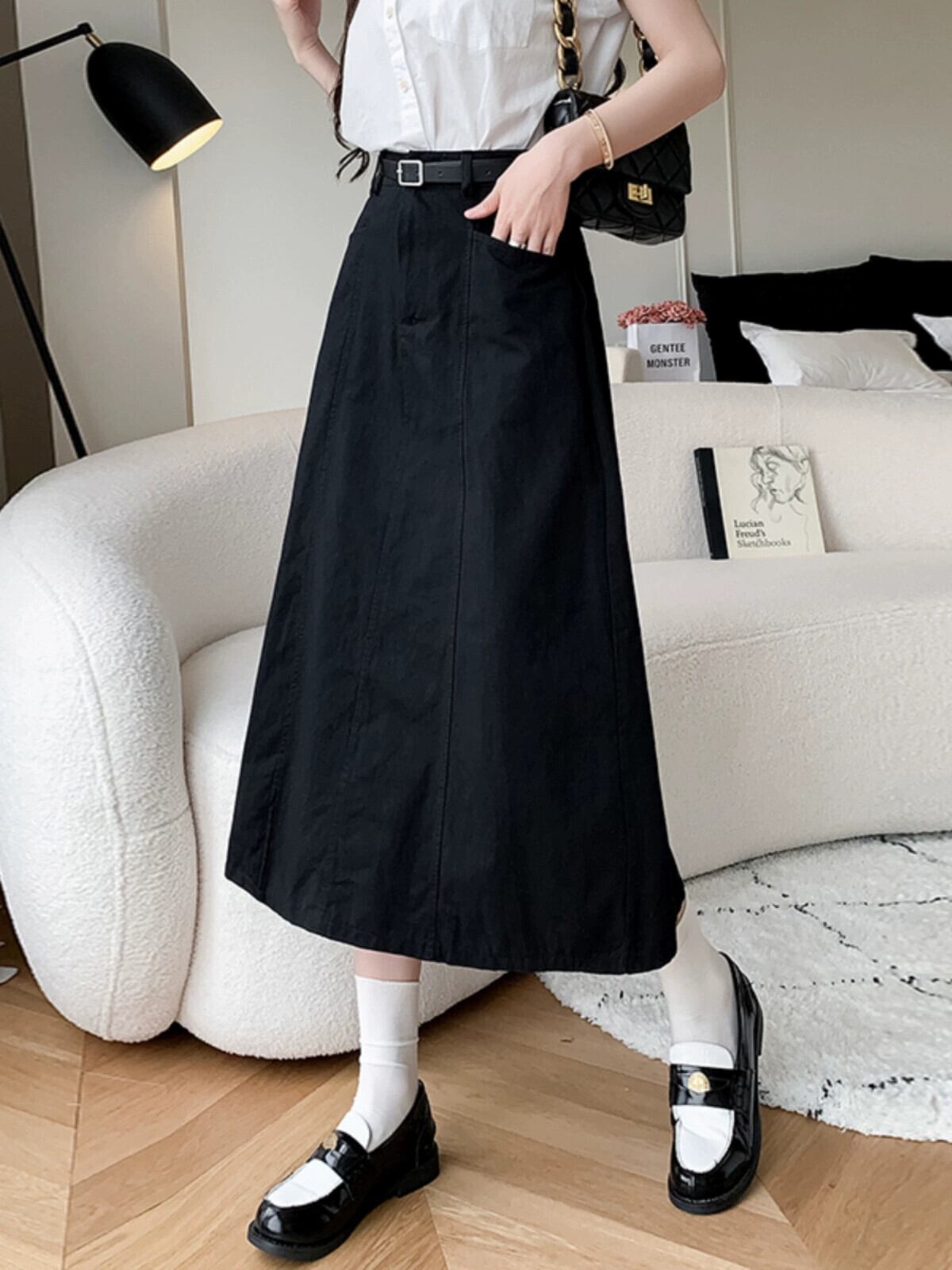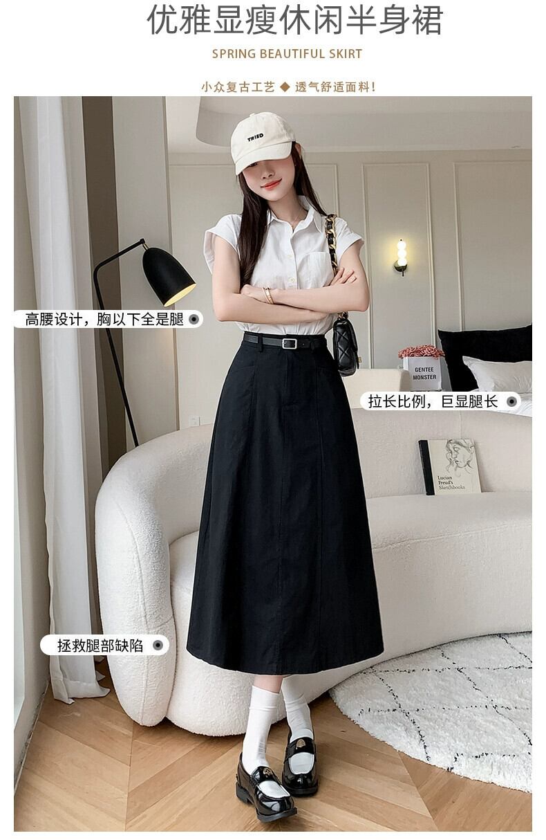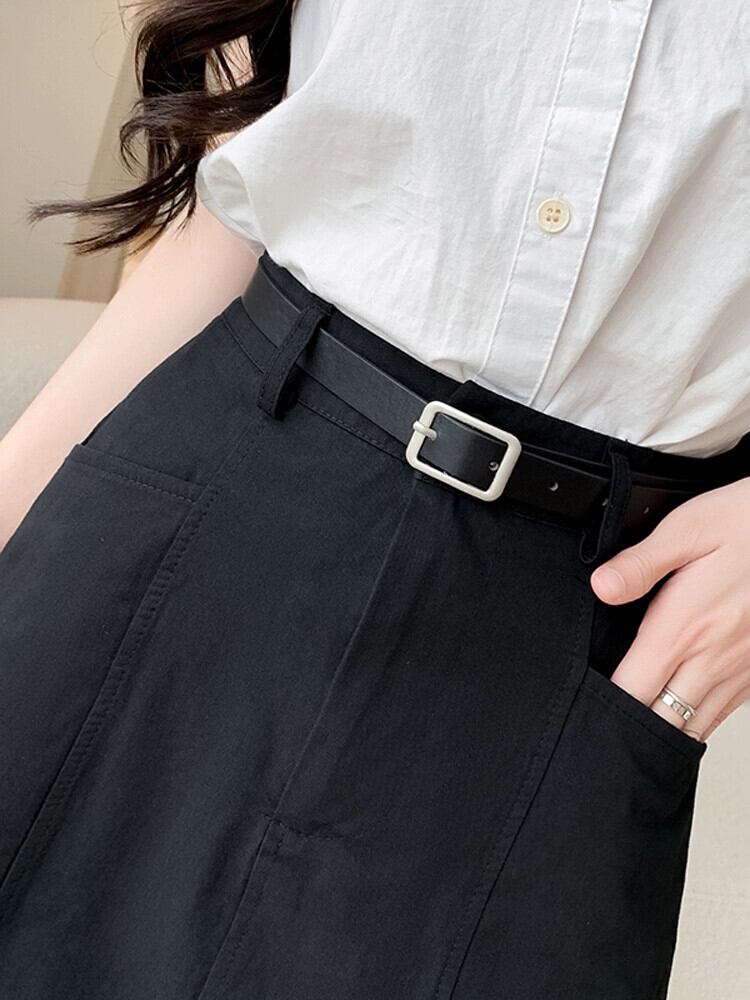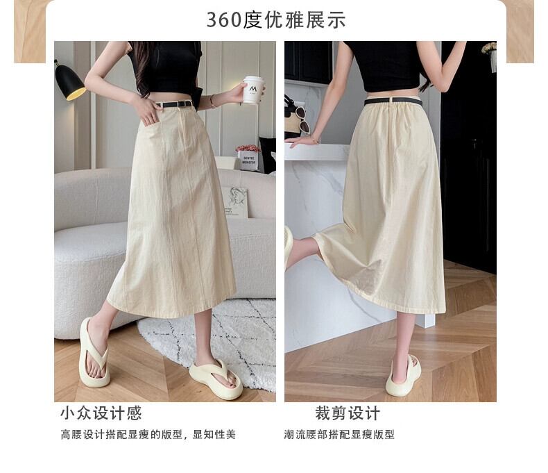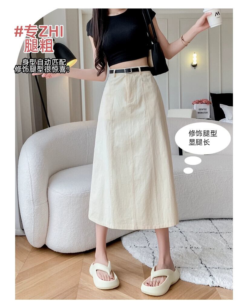 アプリコットコットンとリネンスカートの女性の 2023 夏の新作ルーズカジュアルミドル丈スカートハイウエスト痩身 A ラインスカート ハイウェスト サマー 夏物 Aライン 7460052375737408 | framboise21