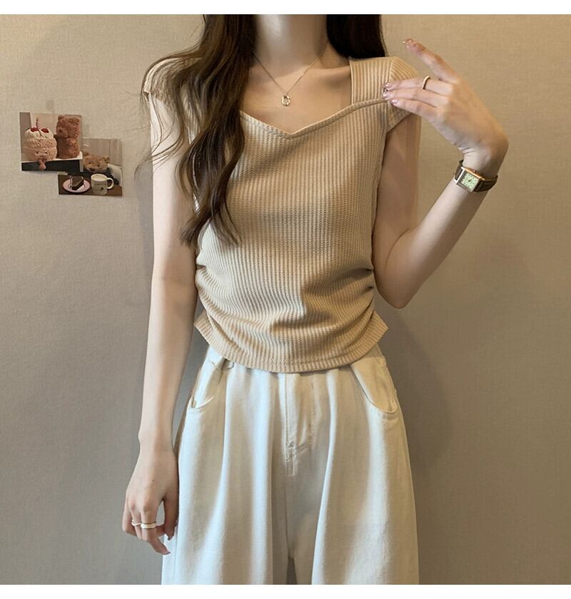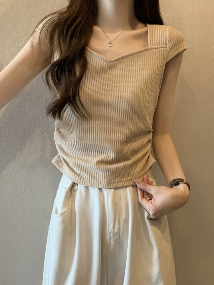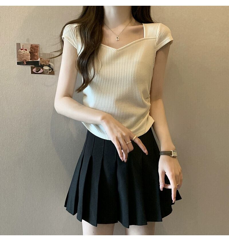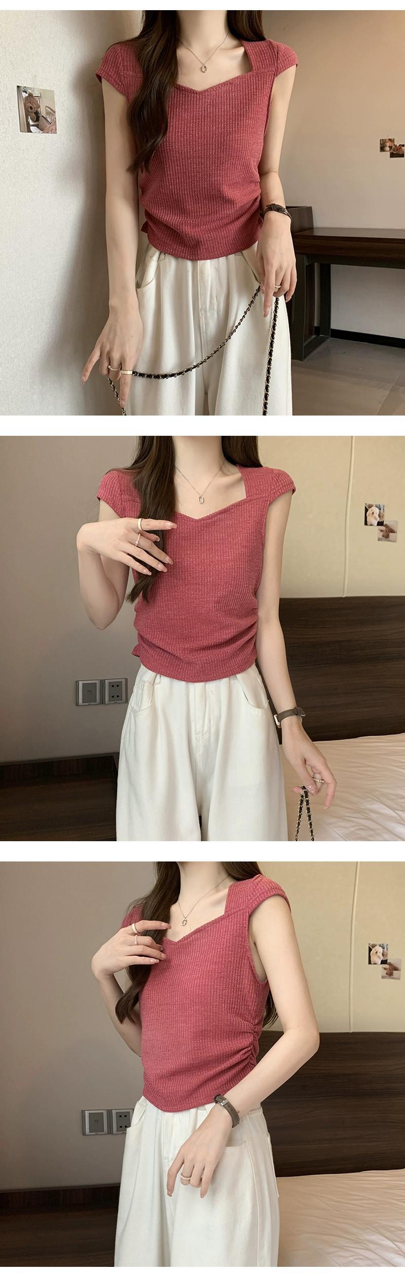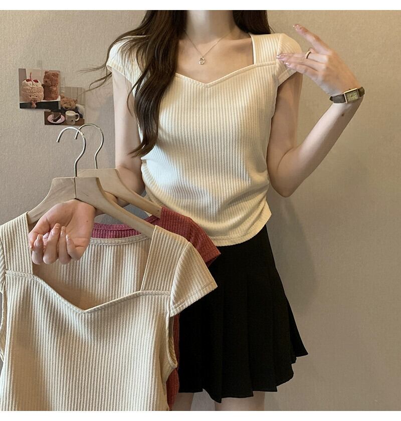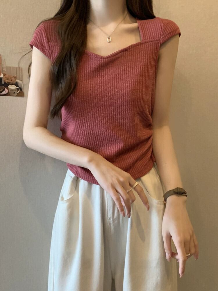 フロントショルダー半袖Tシャツレディース夏フレンチショートセクション自己修養Eignスタイルデザインセンス不規則スリムシックVネックトップ サマー 夏物 7460031926438872 | framboise21