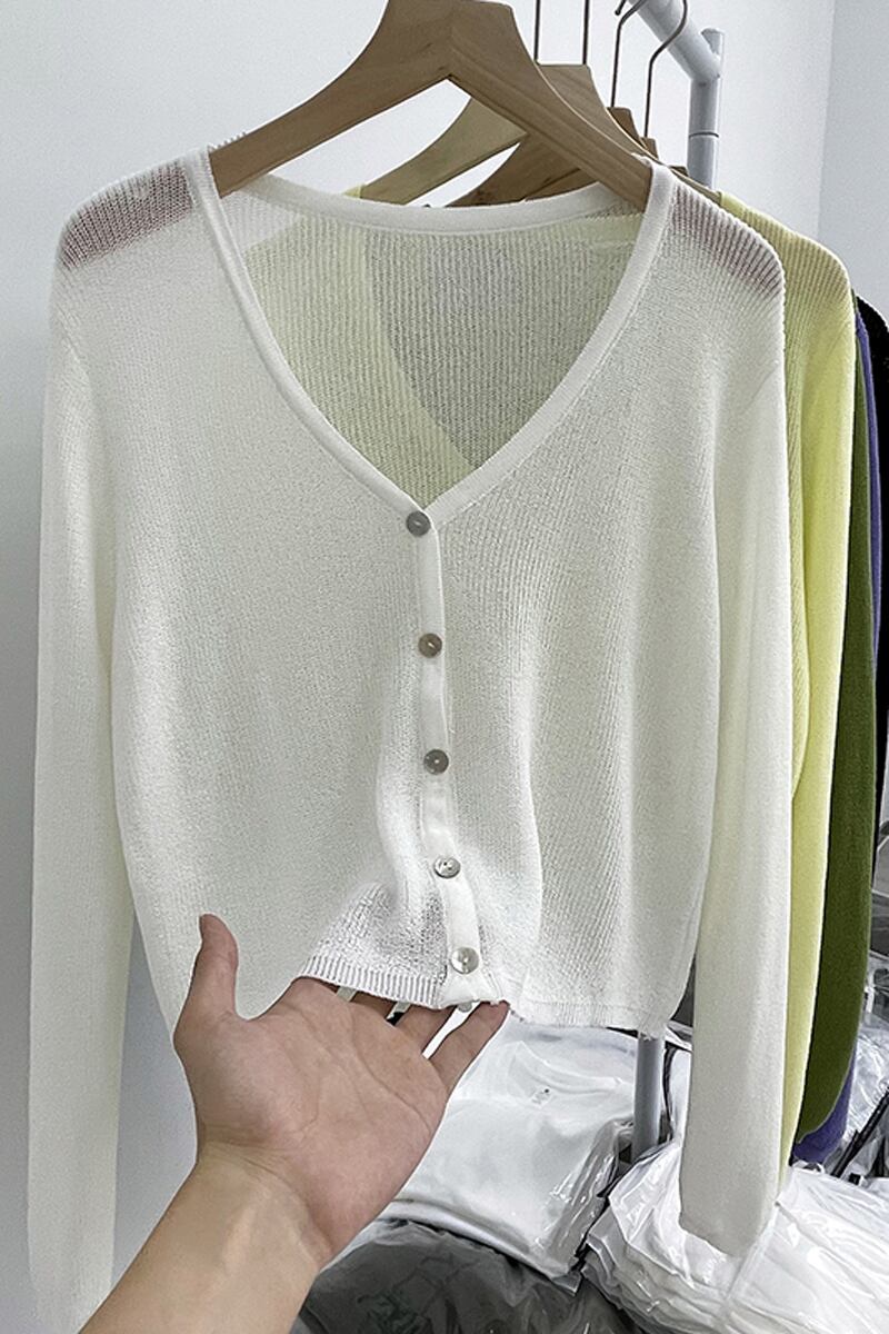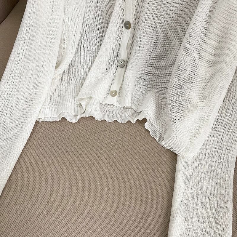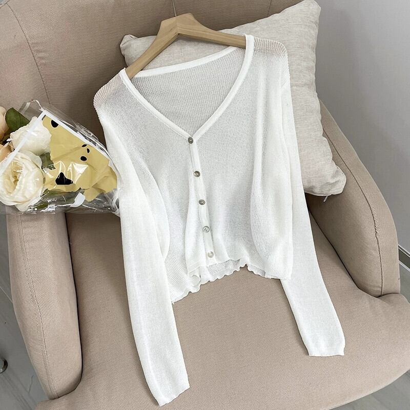 アイスシルクカーディガン薄い女性の夏のスカートショールアウターウエスタンスタイルルーズニットセーターショート空調シャツ白 ホワイト サマー 夏物 7460020852031549 | framboise21