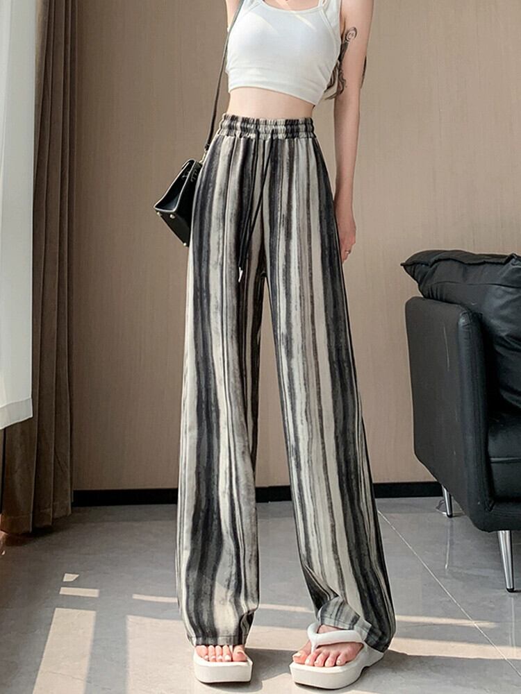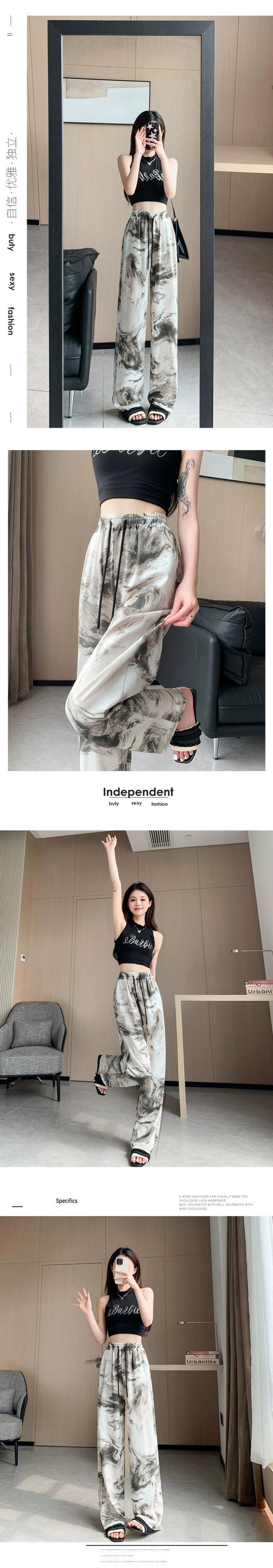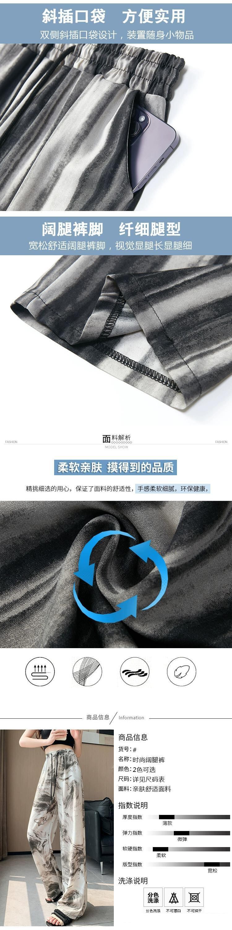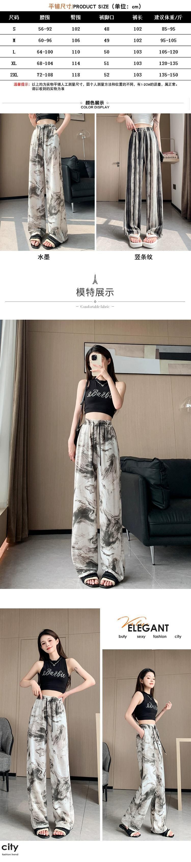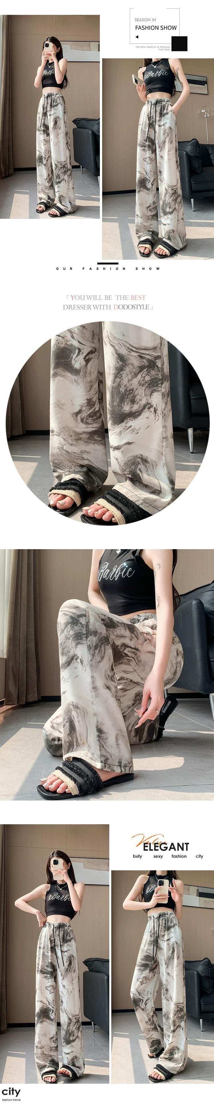 インクアイスシルクワイドレッグパンツ女性の夏薄い新しい中国風国民風パンツハイウエストドレープストレートシフォンカジュアルパンツ ハイウェスト サマー 夏物 7460081944843249 | framboise21